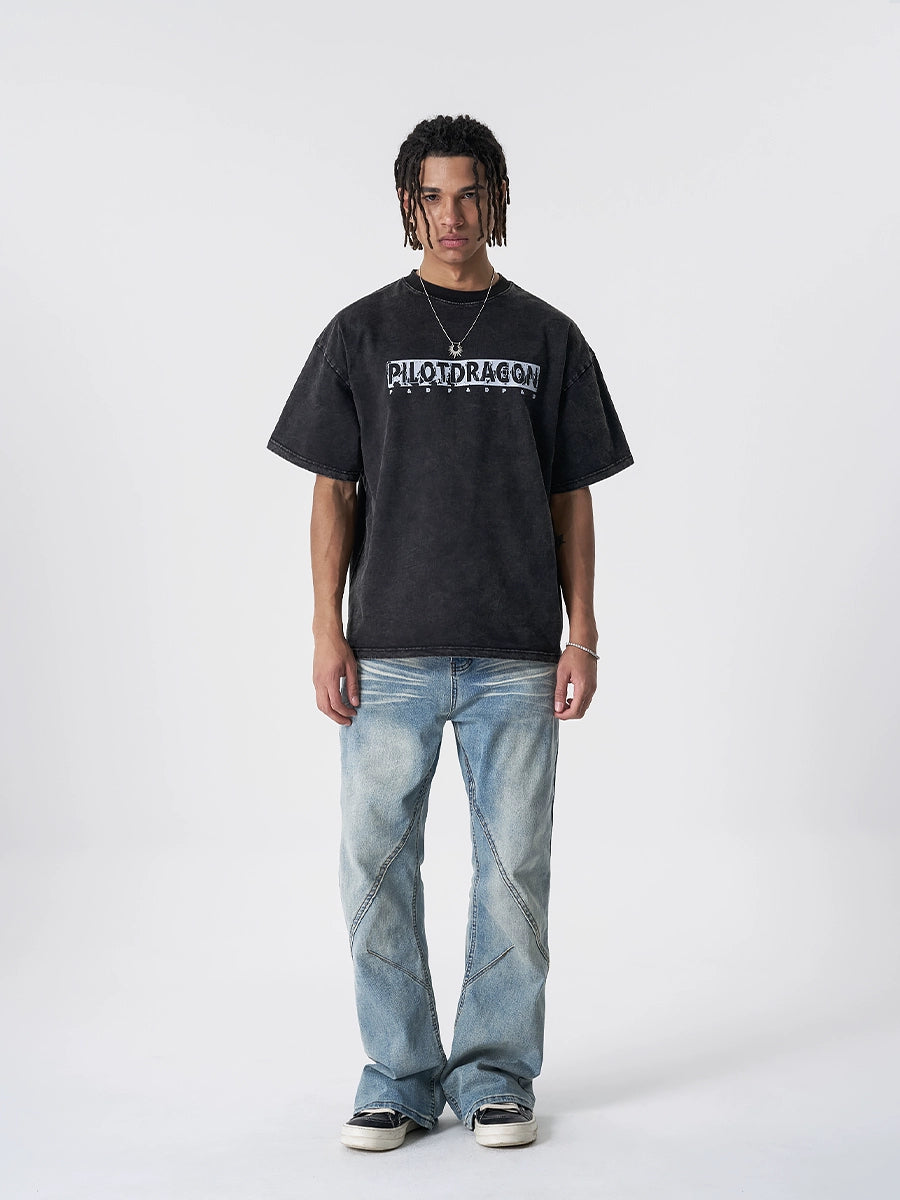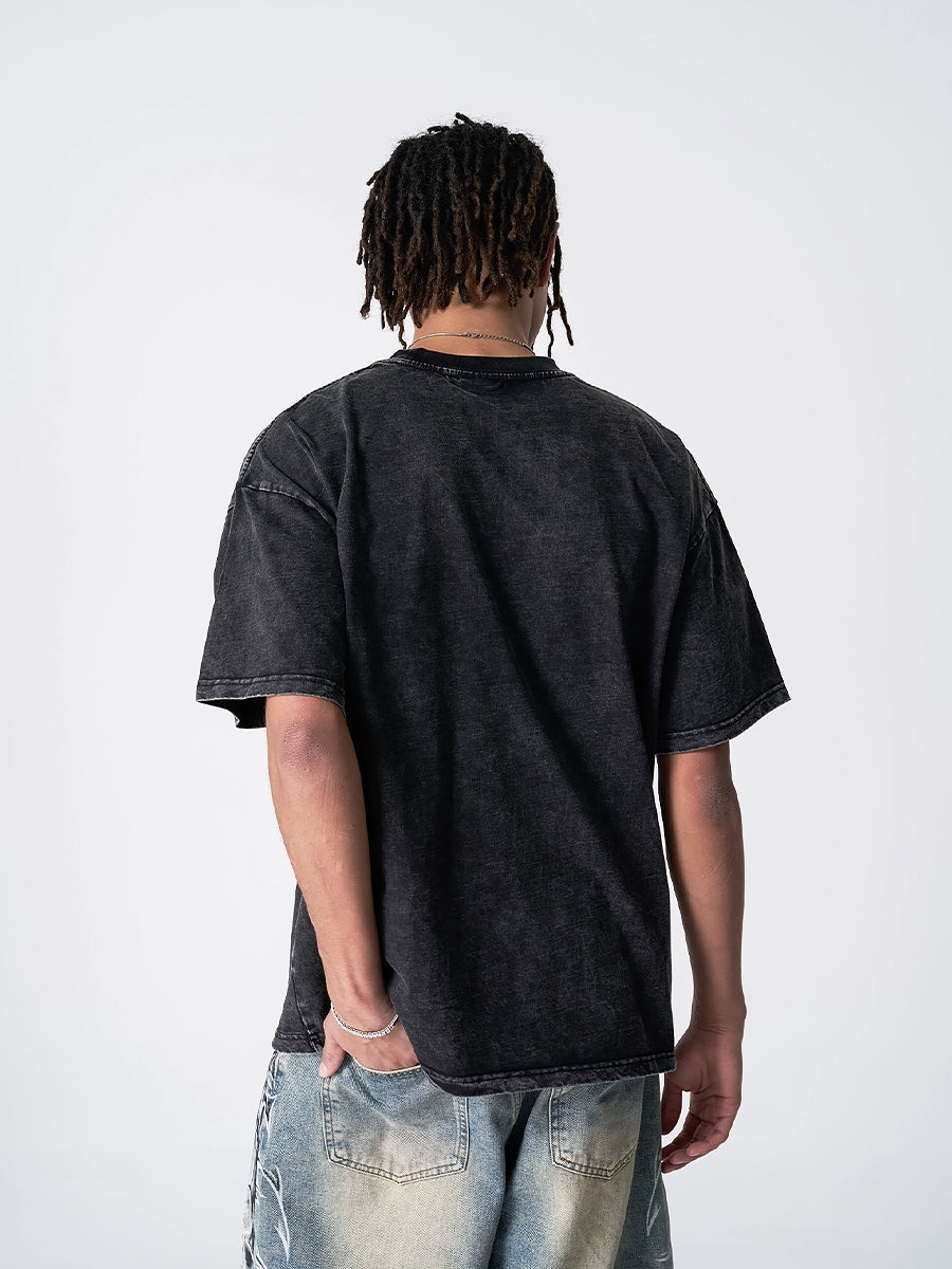 Washed Logo Letter Print Heavyweight Short Sleeve T-Shirt WN17528