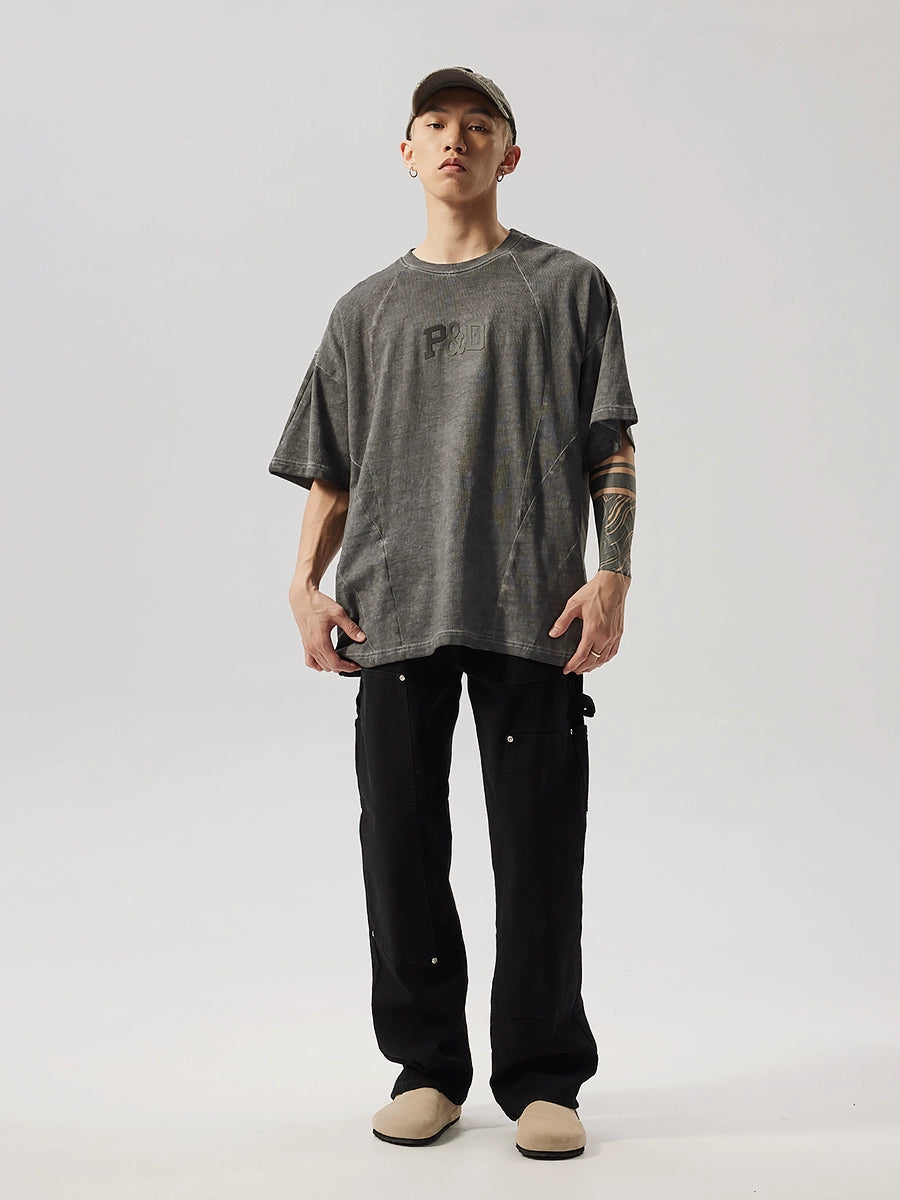 Patchwork Design Washed Wide Leg Denim Jeans WN17583