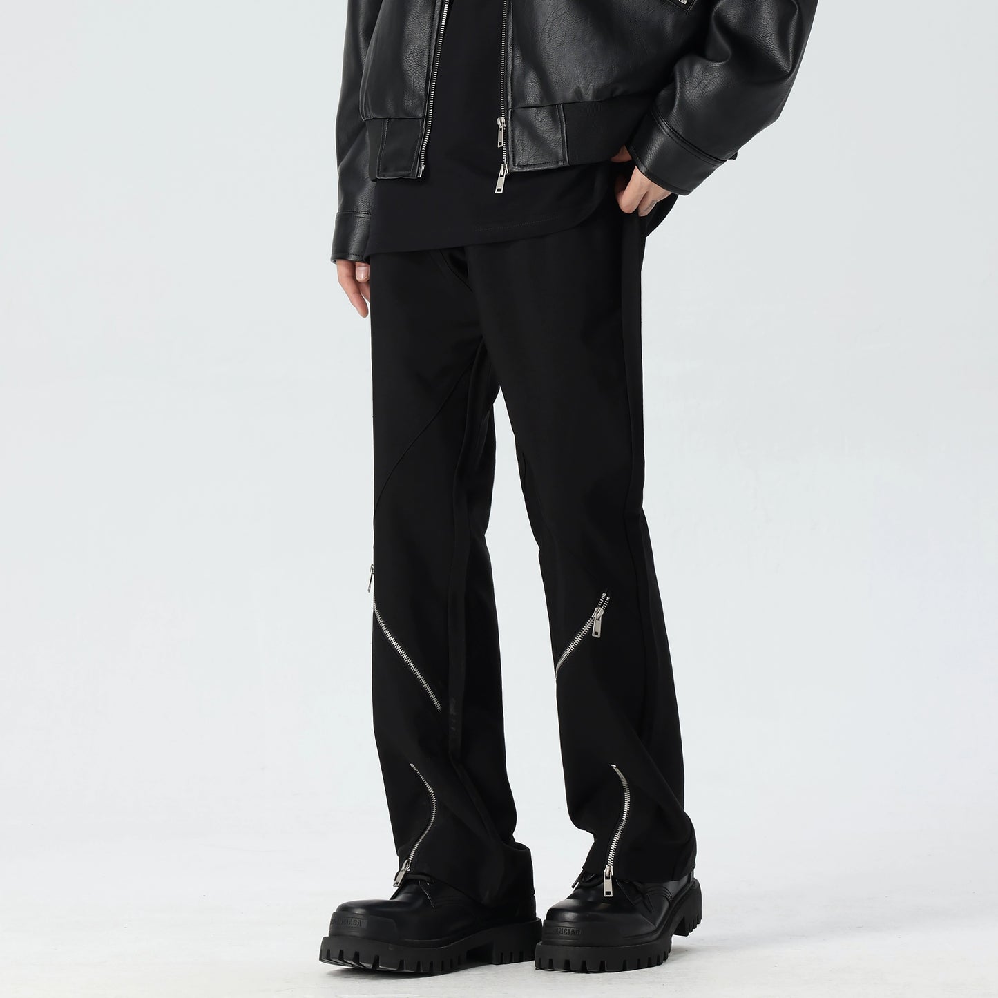 Zipper Hem Wide-Leg Straight Pants WN17616