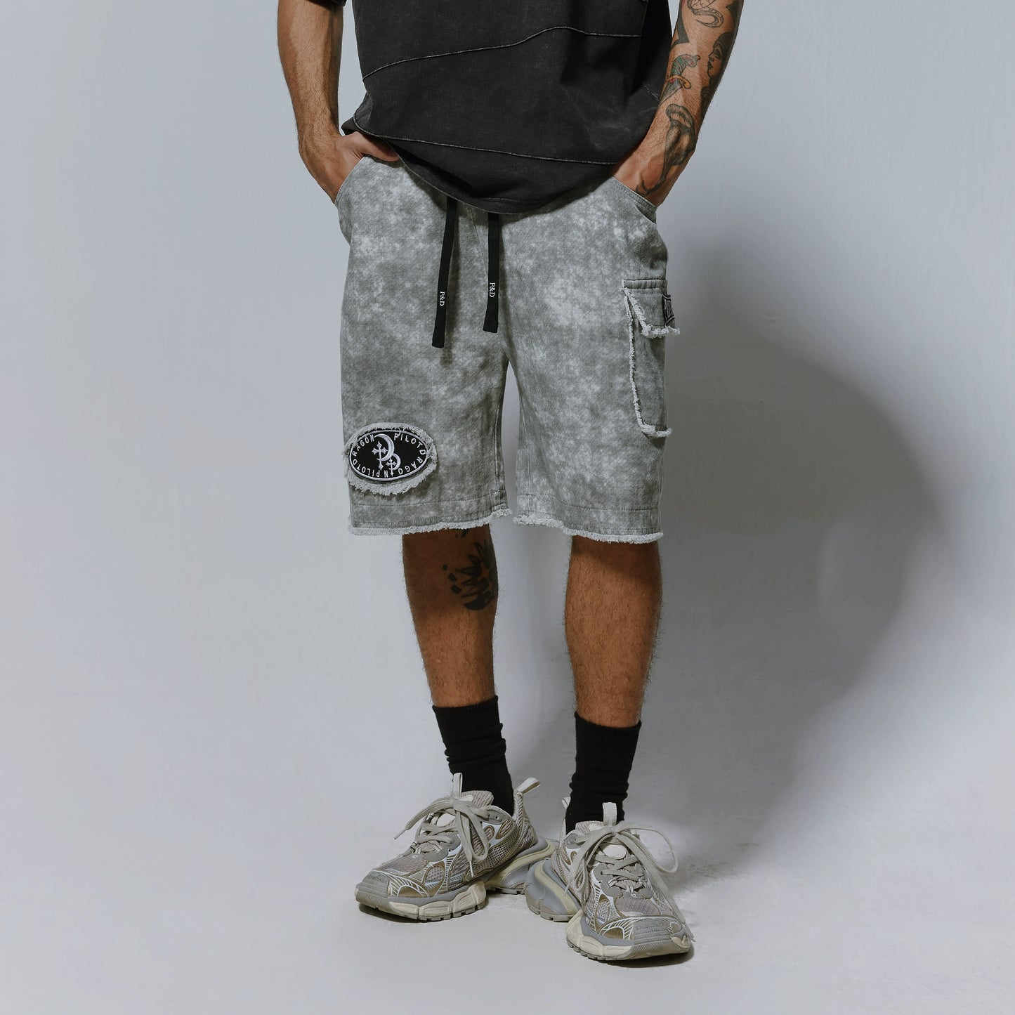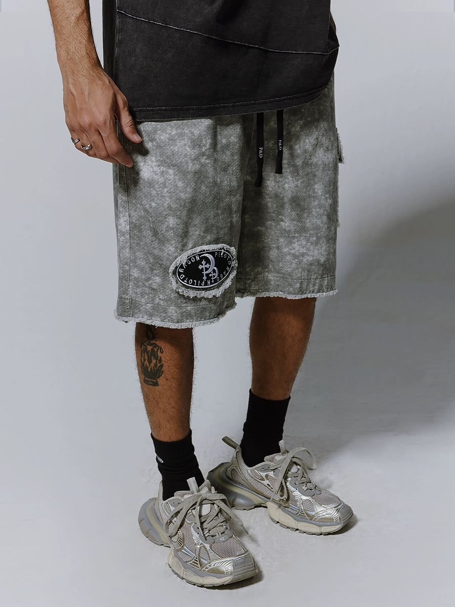 Embroidery Patch Wide Leg Cargo Half Pants WN17619