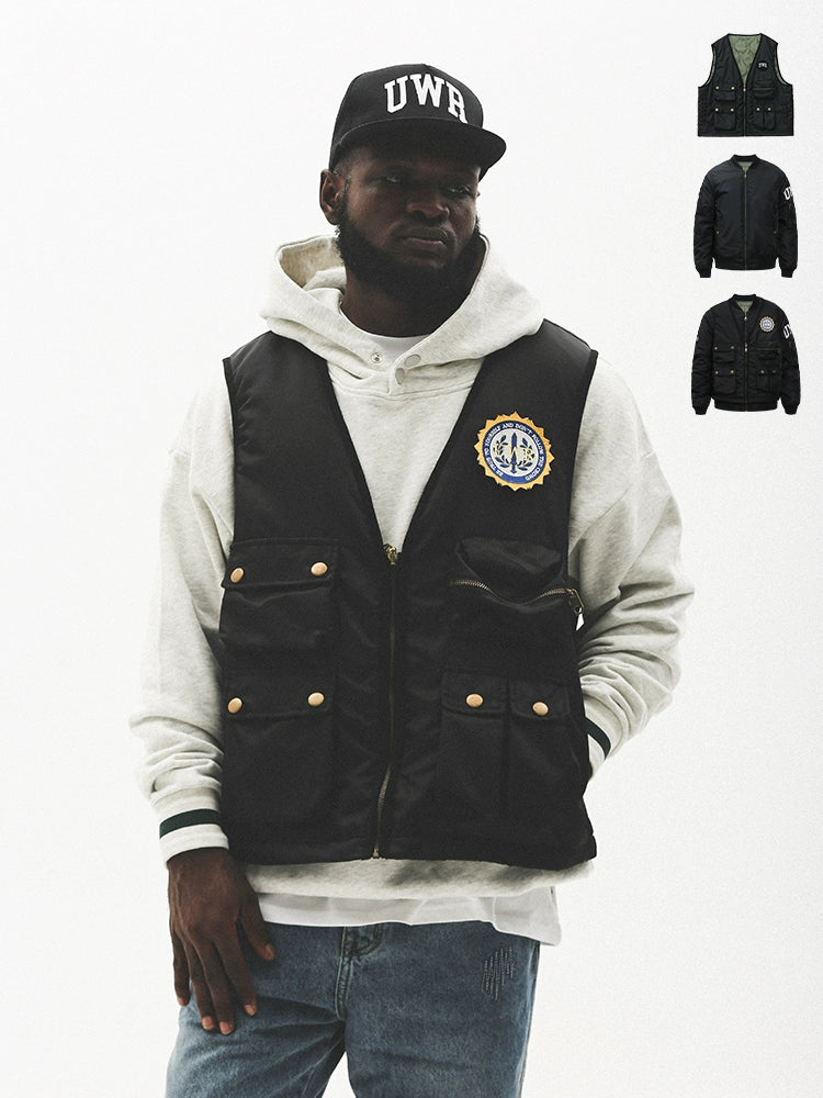 Baseball Jacket & Embroidery Multi Pocket Vest WN17735
