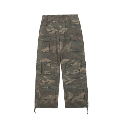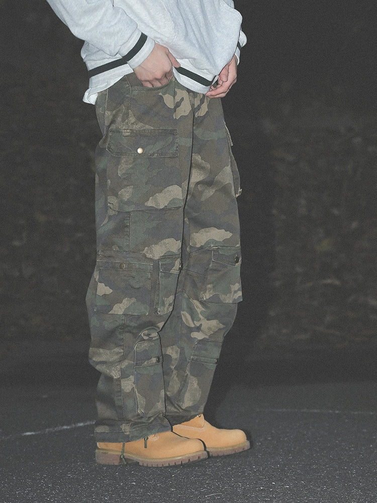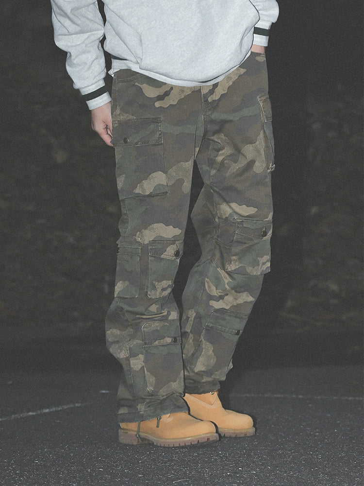 Washed Camo Cargo Multi Pocket Straight Pants WN17762
