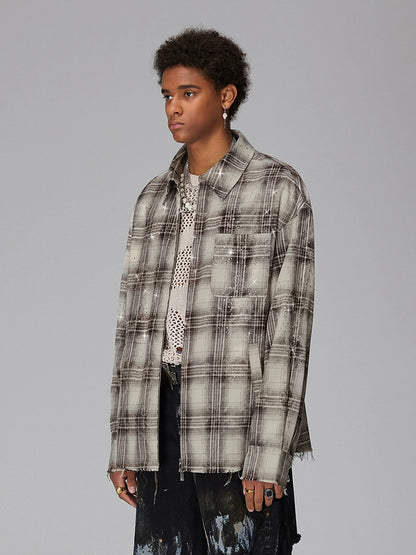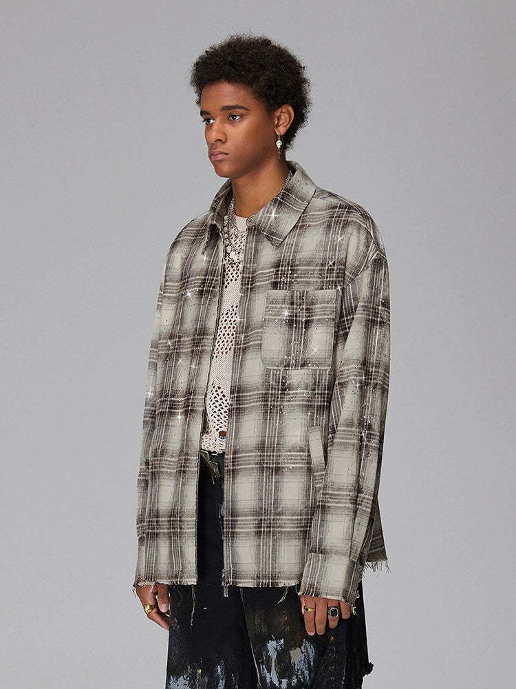 Rhinestone Plaid Drop Shoulder Zipper Jacket WN17799