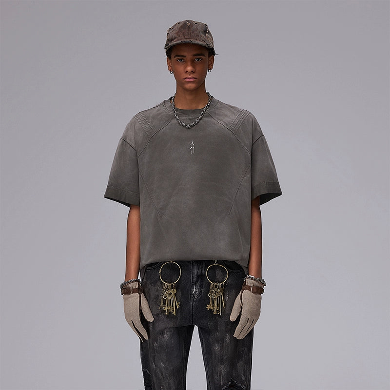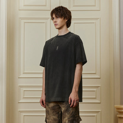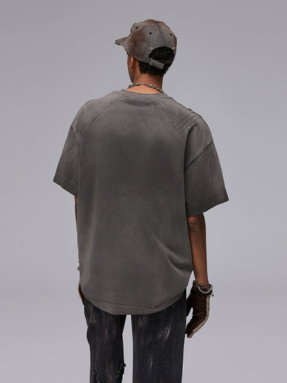 Washed Patchwork Design Short Sleeve T-Shirt WN17802