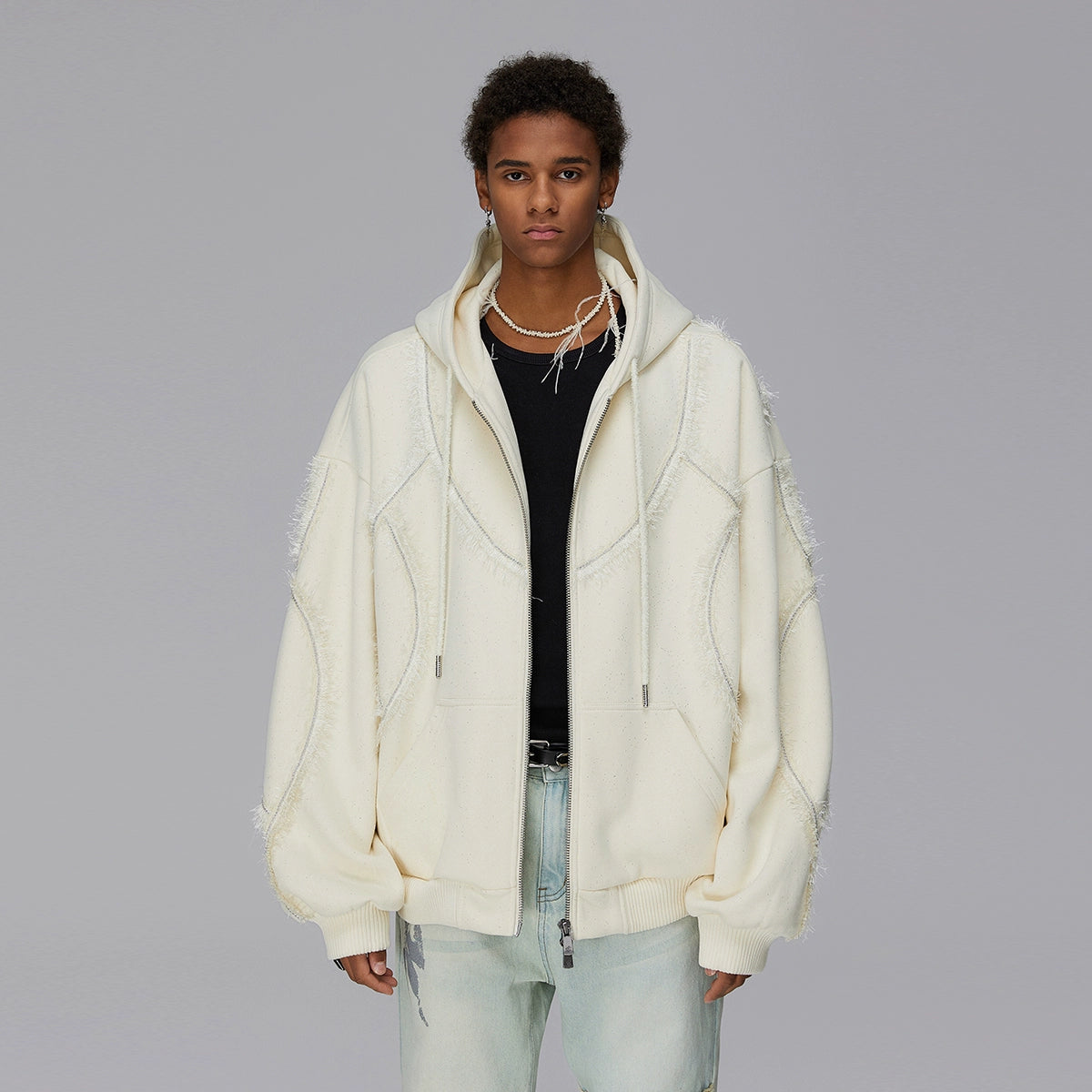 Star Glitter Tassel Design Zipper Hoodie WN17811