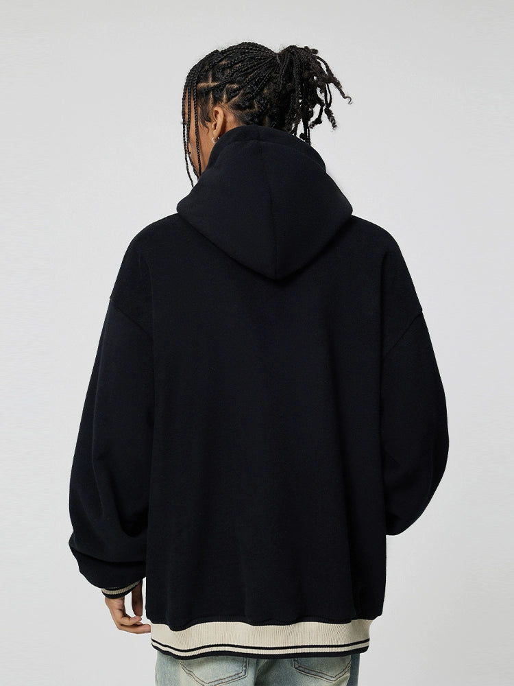 Wave Embroidery Oversize Drop Shoulder Color Block Hoodie WN17827