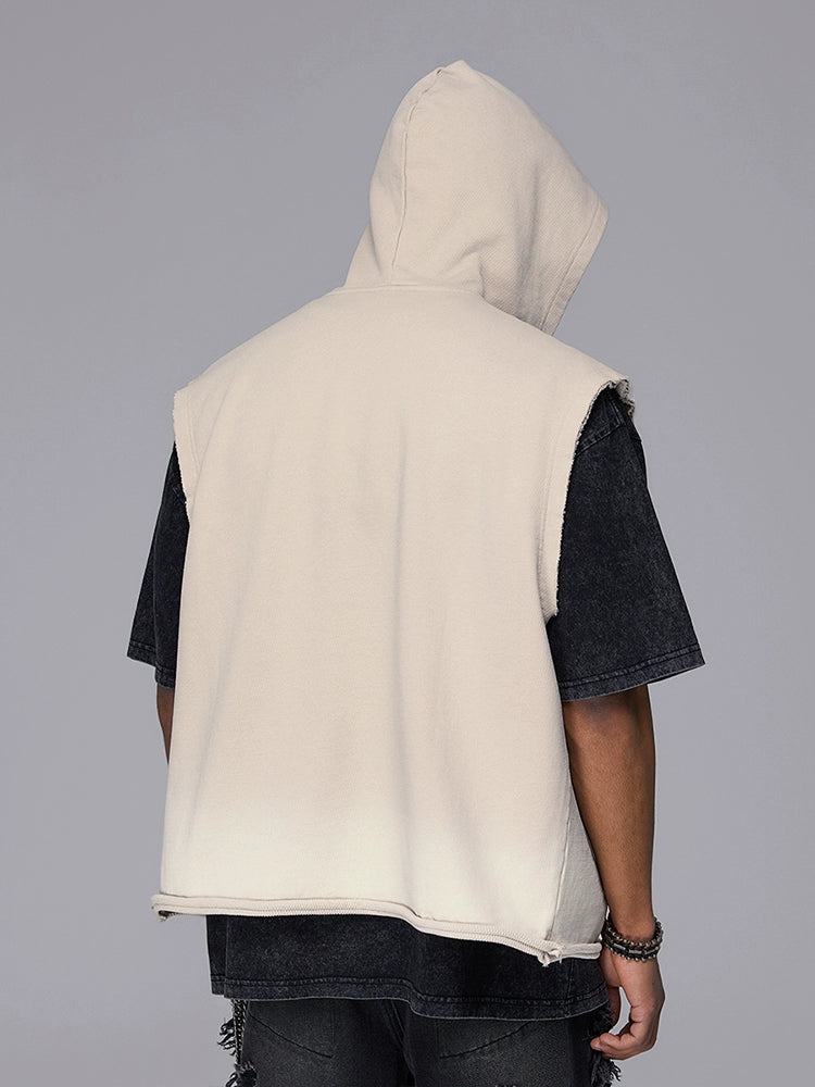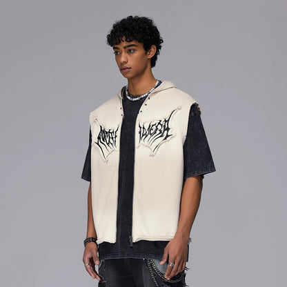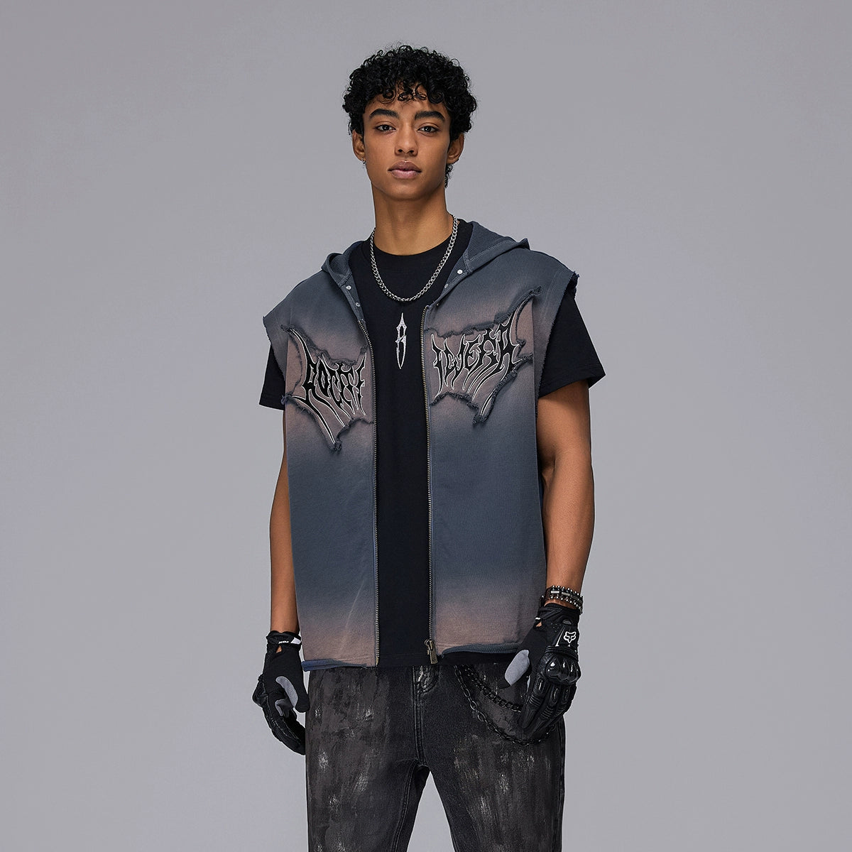 Patch Embroidery Studded Zipper Sleeveless Hoodie WN17832
