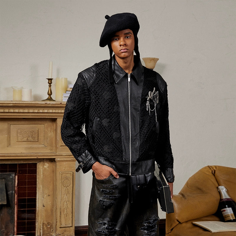 Double Layered Patchwork Mesh Turn-Down Collar Jacket WN17844