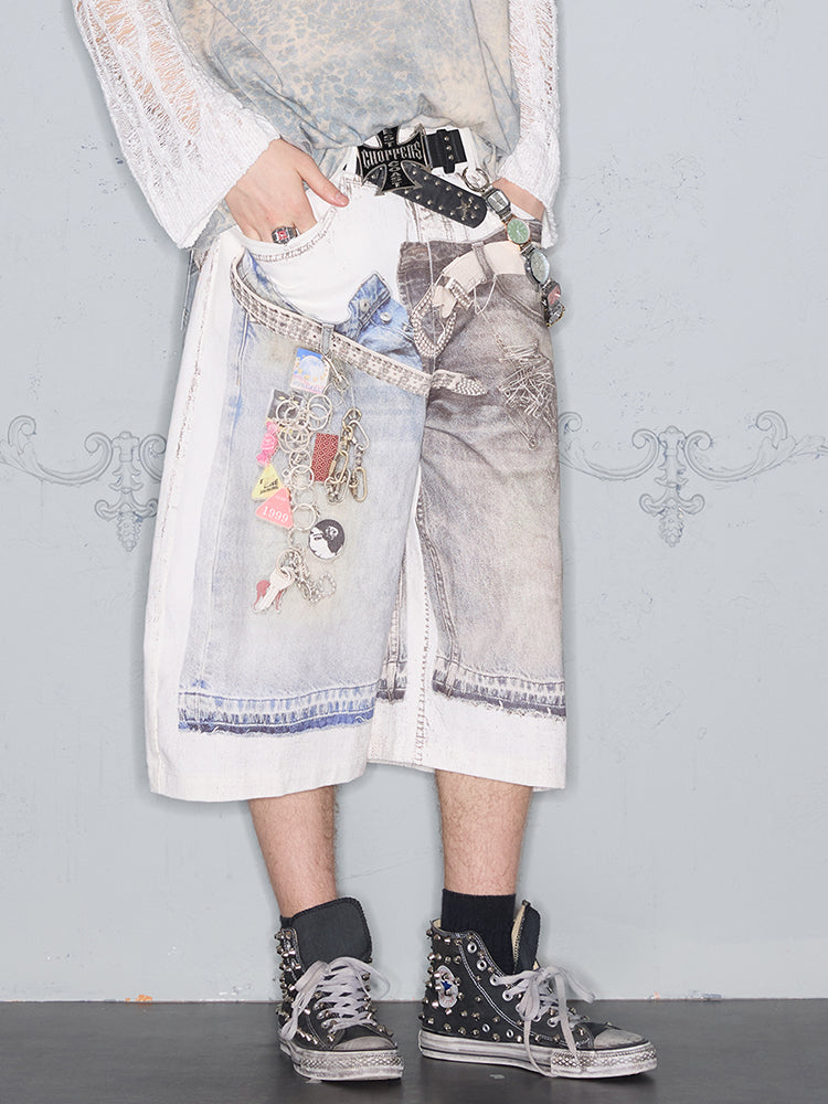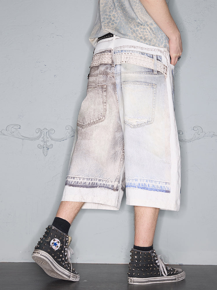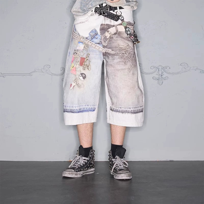 3D Print Graphic Design Block Badge Denim Half Jeans WN17859