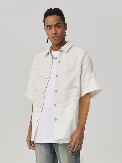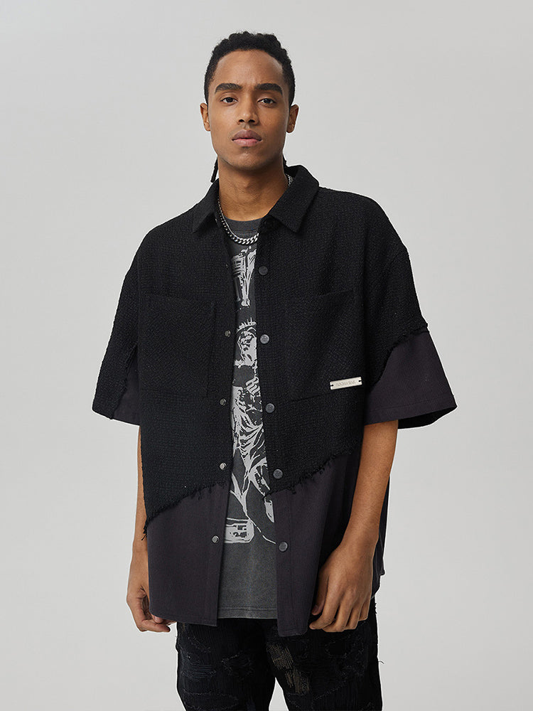 Tweed Style Patchwork Oversize Short Sleeve Shirt WN18004