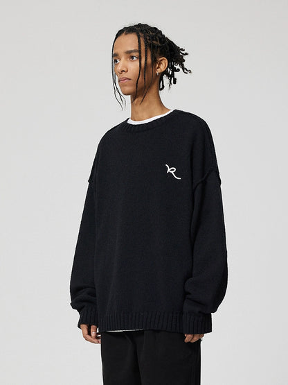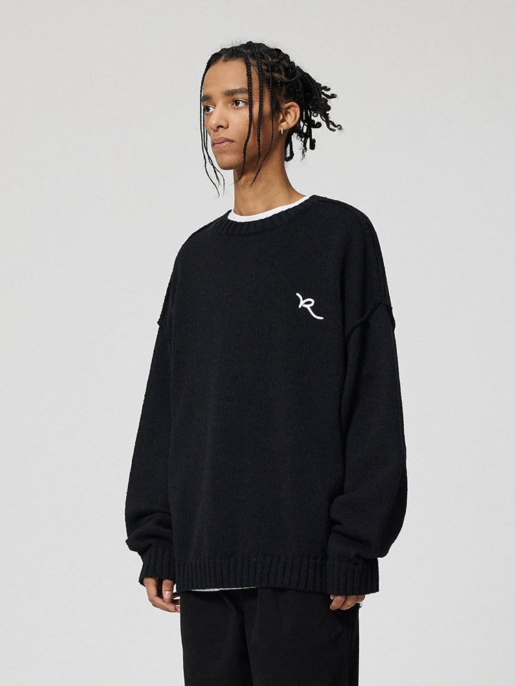 Embroidery Design Oversize Knit Sweater WN18034