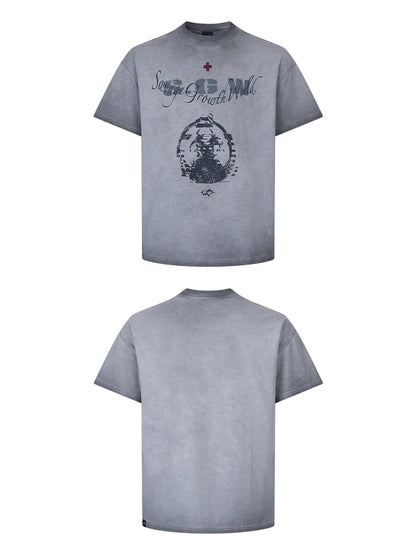 Washed Graphic Letter Print Short Sleeve T-Shirt WN18045