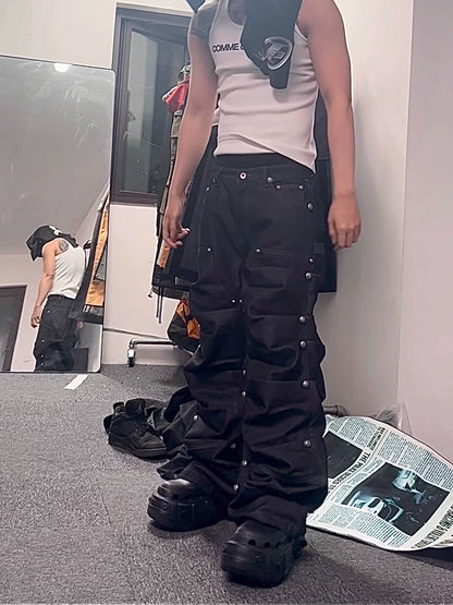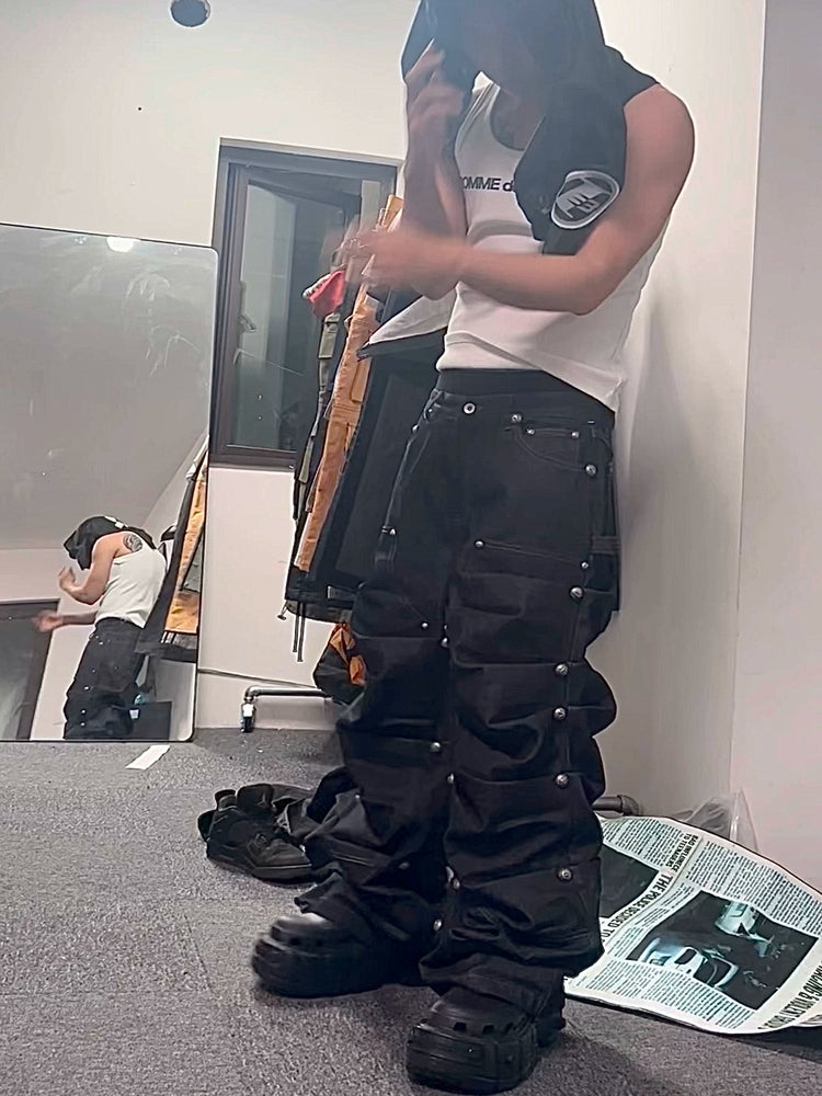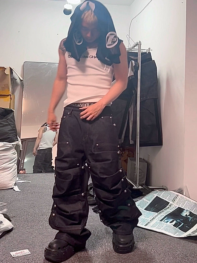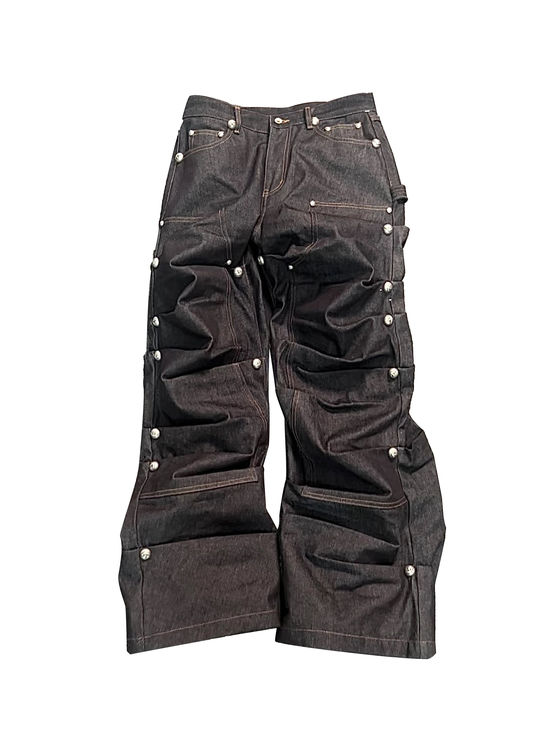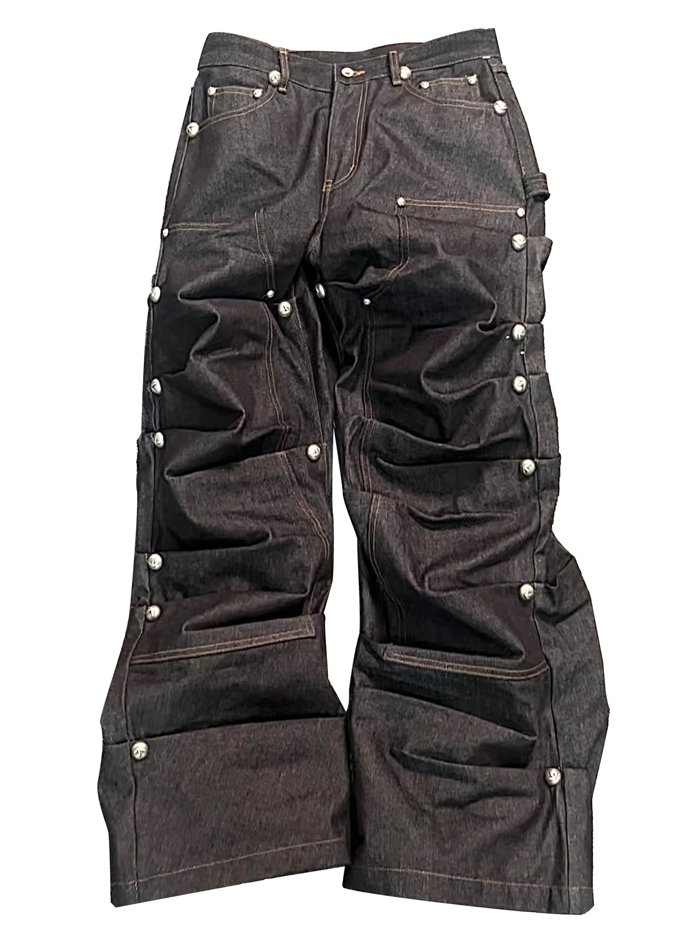 Stacked Studs Silhouette Design Wide Leg Denim Jeans WN18081