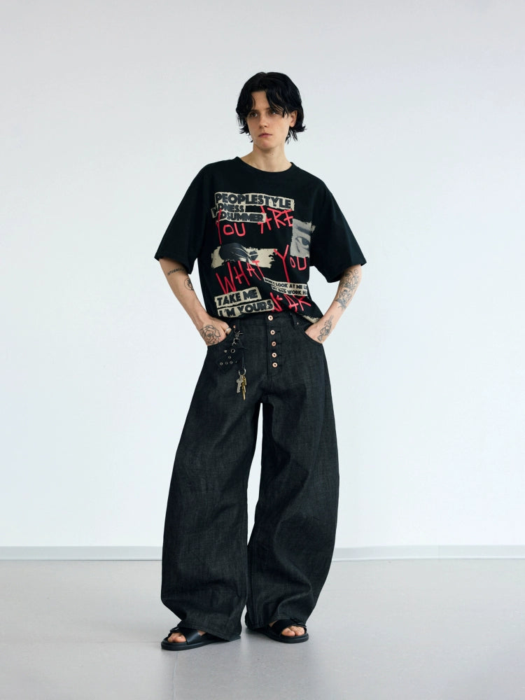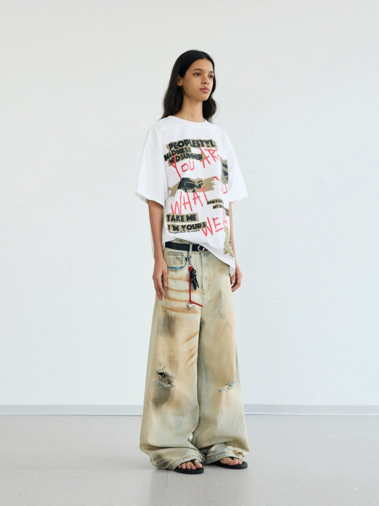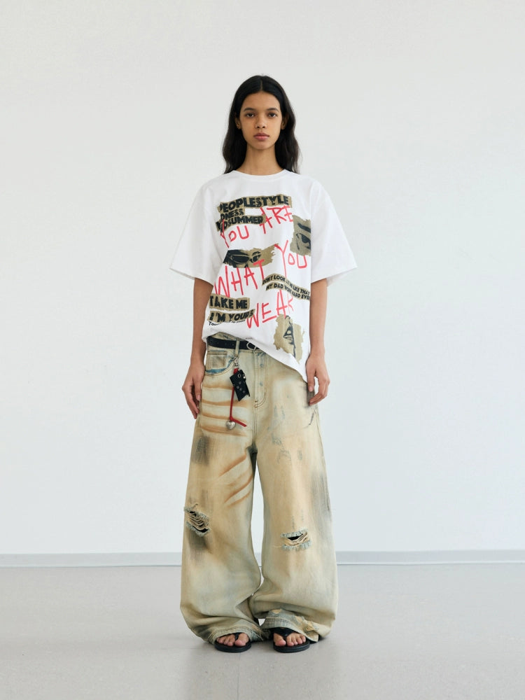 Graffiti Letter Print Short Sleeve T-Shirt WN18209