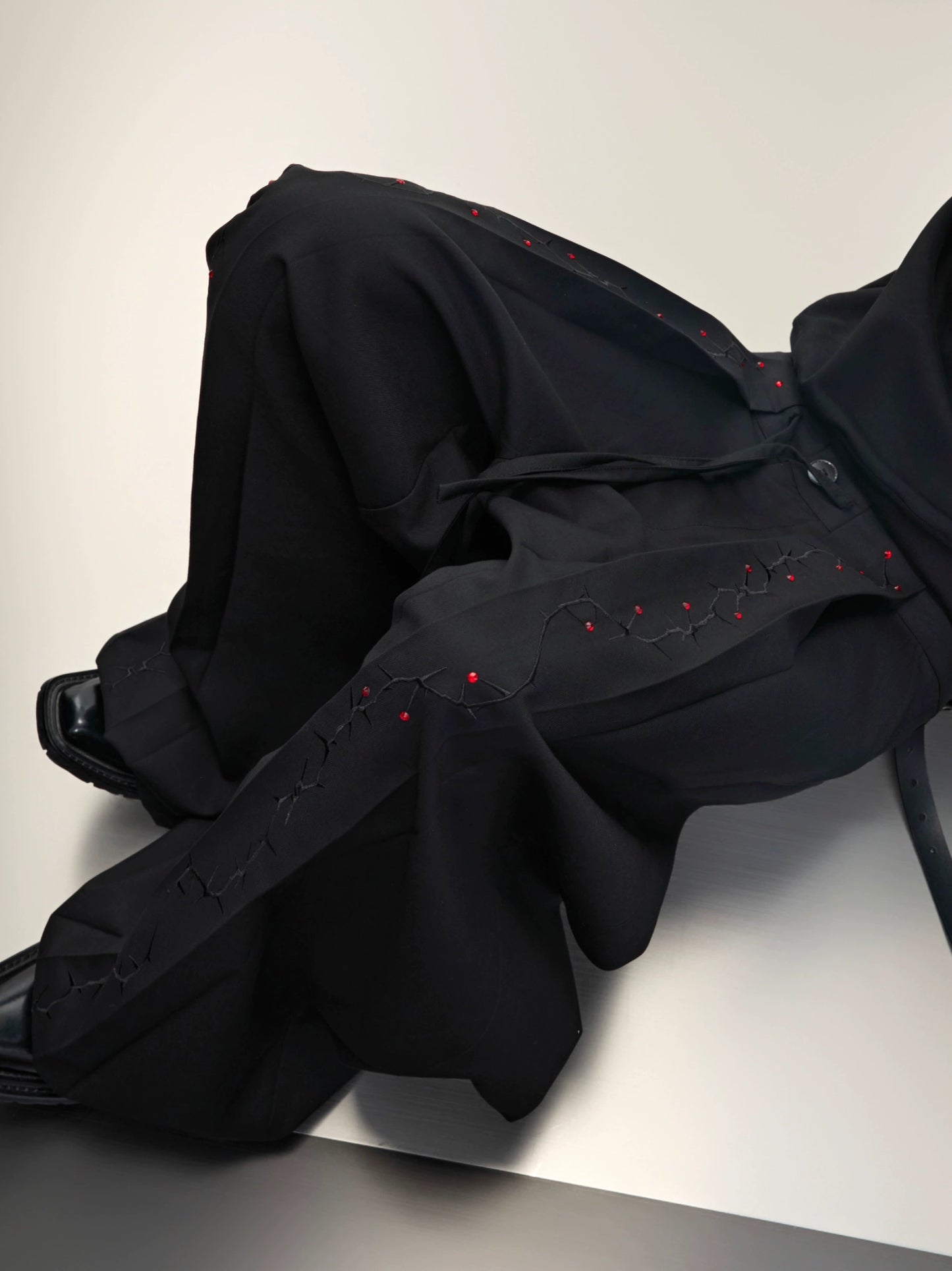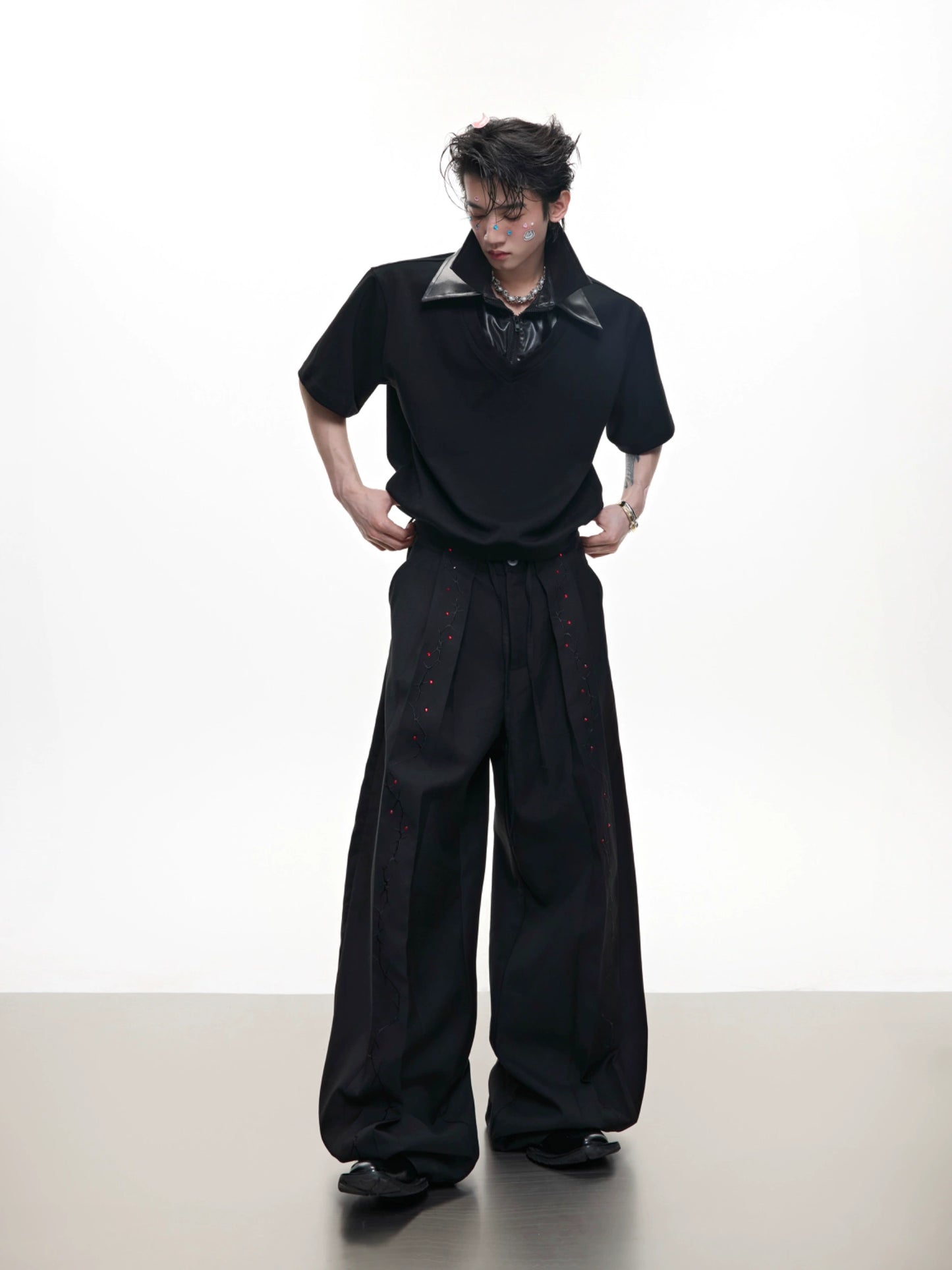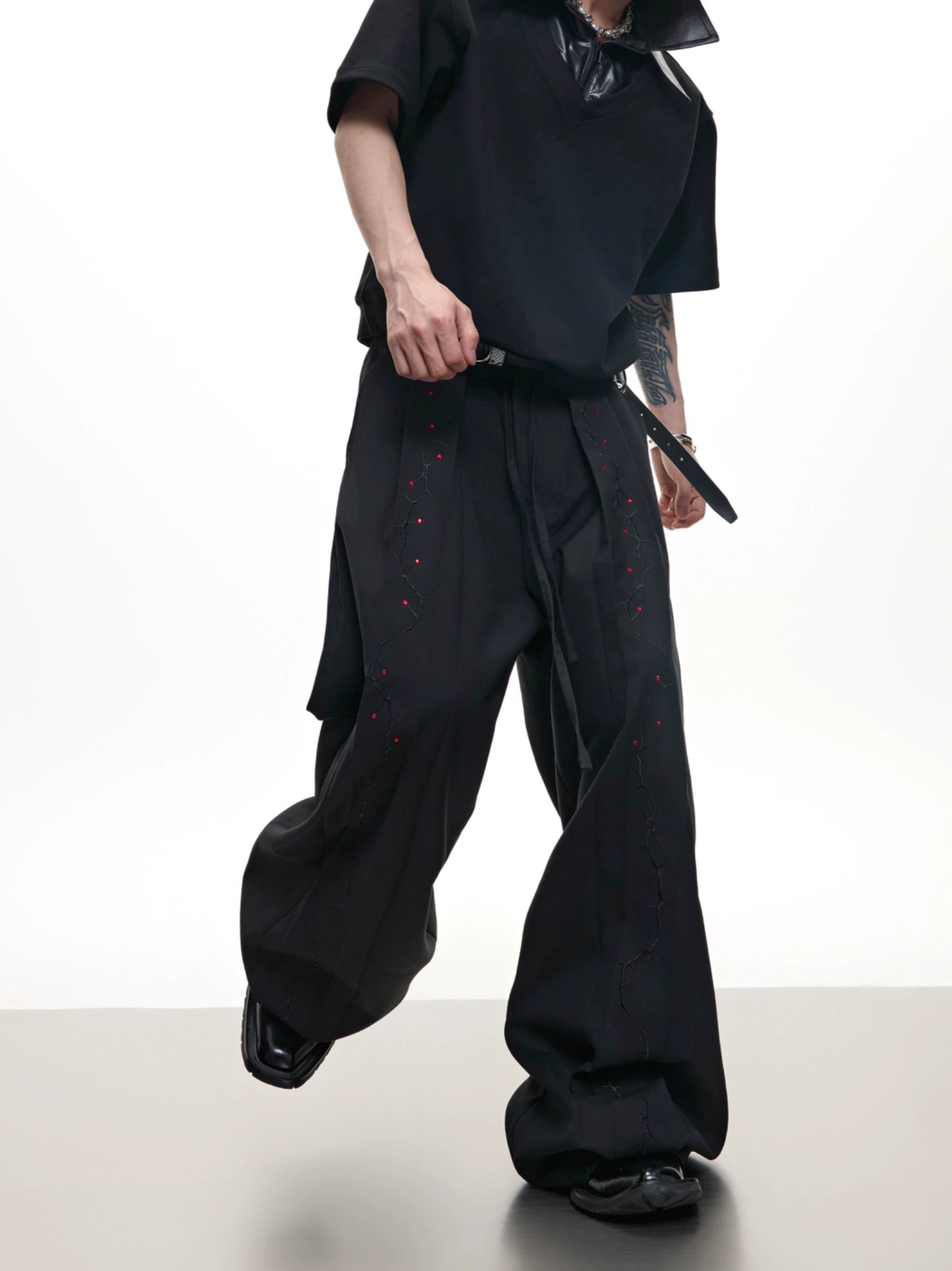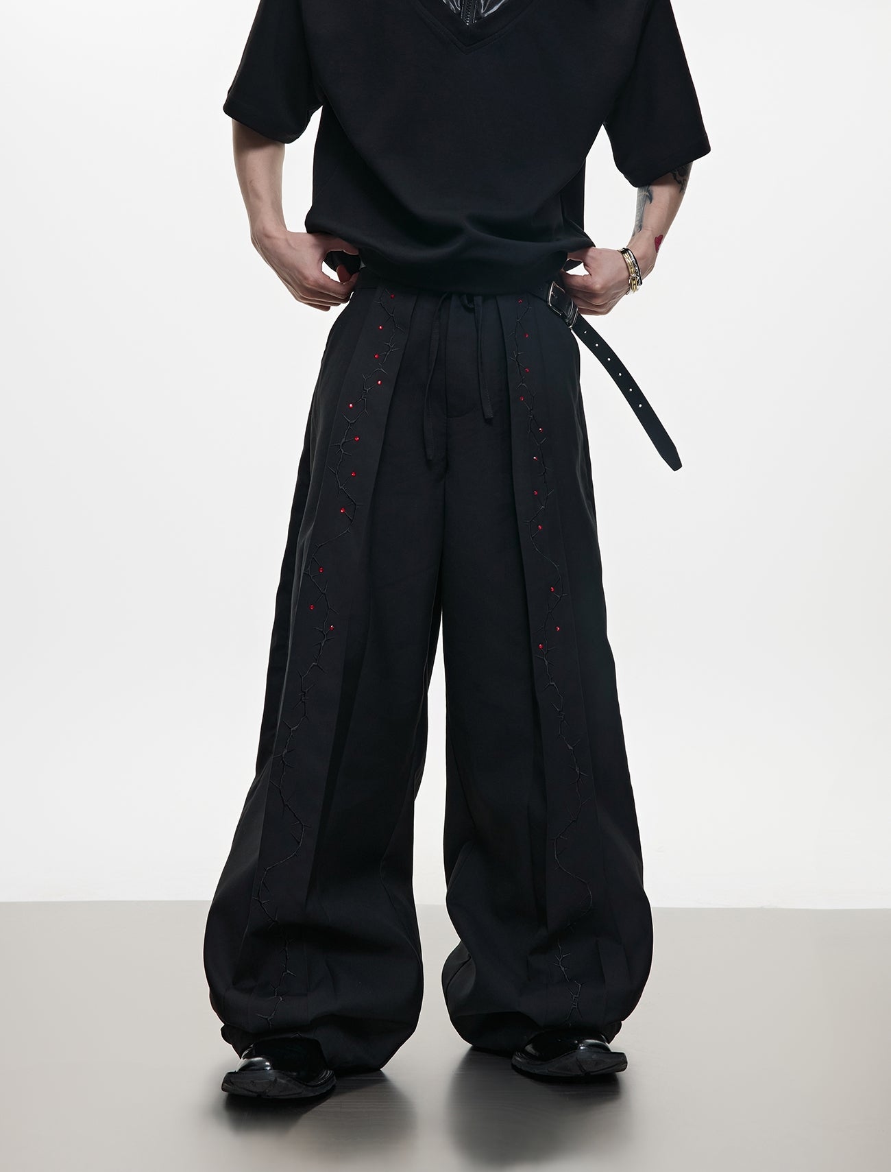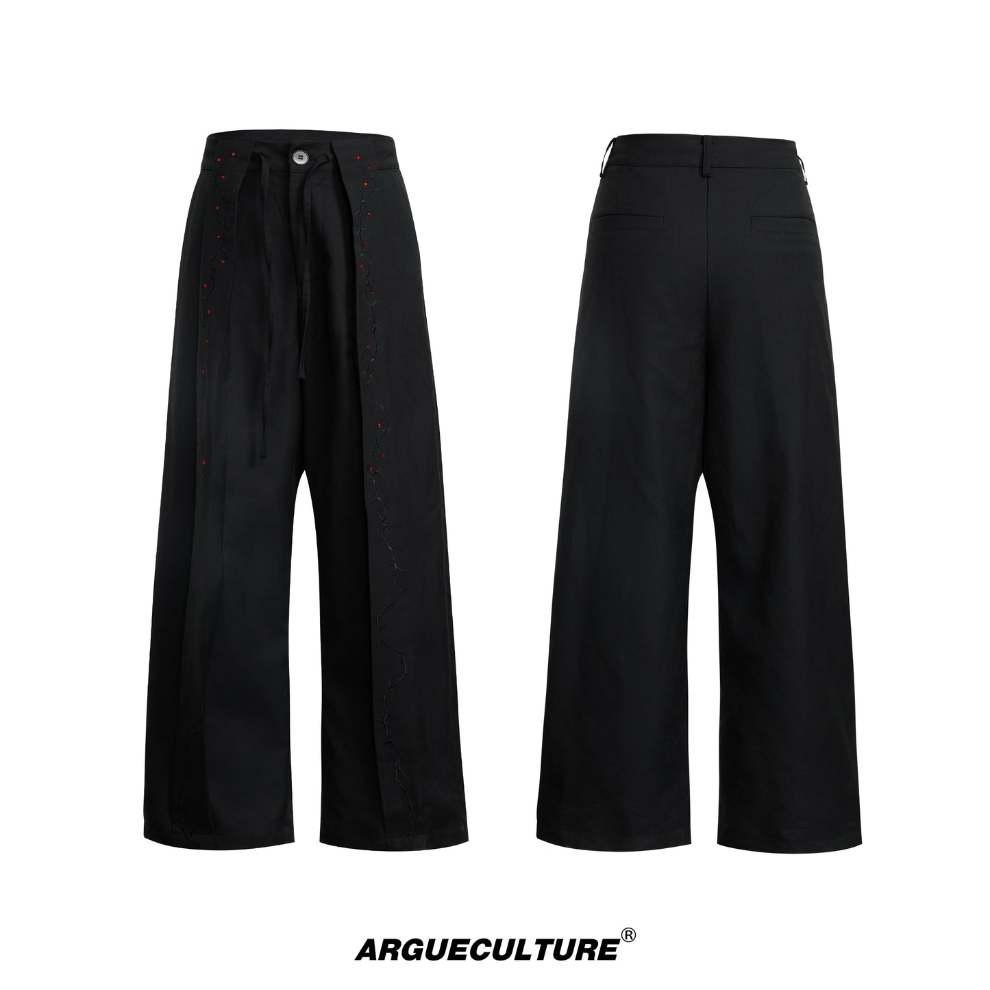 Rhinestone Embroidery Strap Wide Leg Trousers WN18367