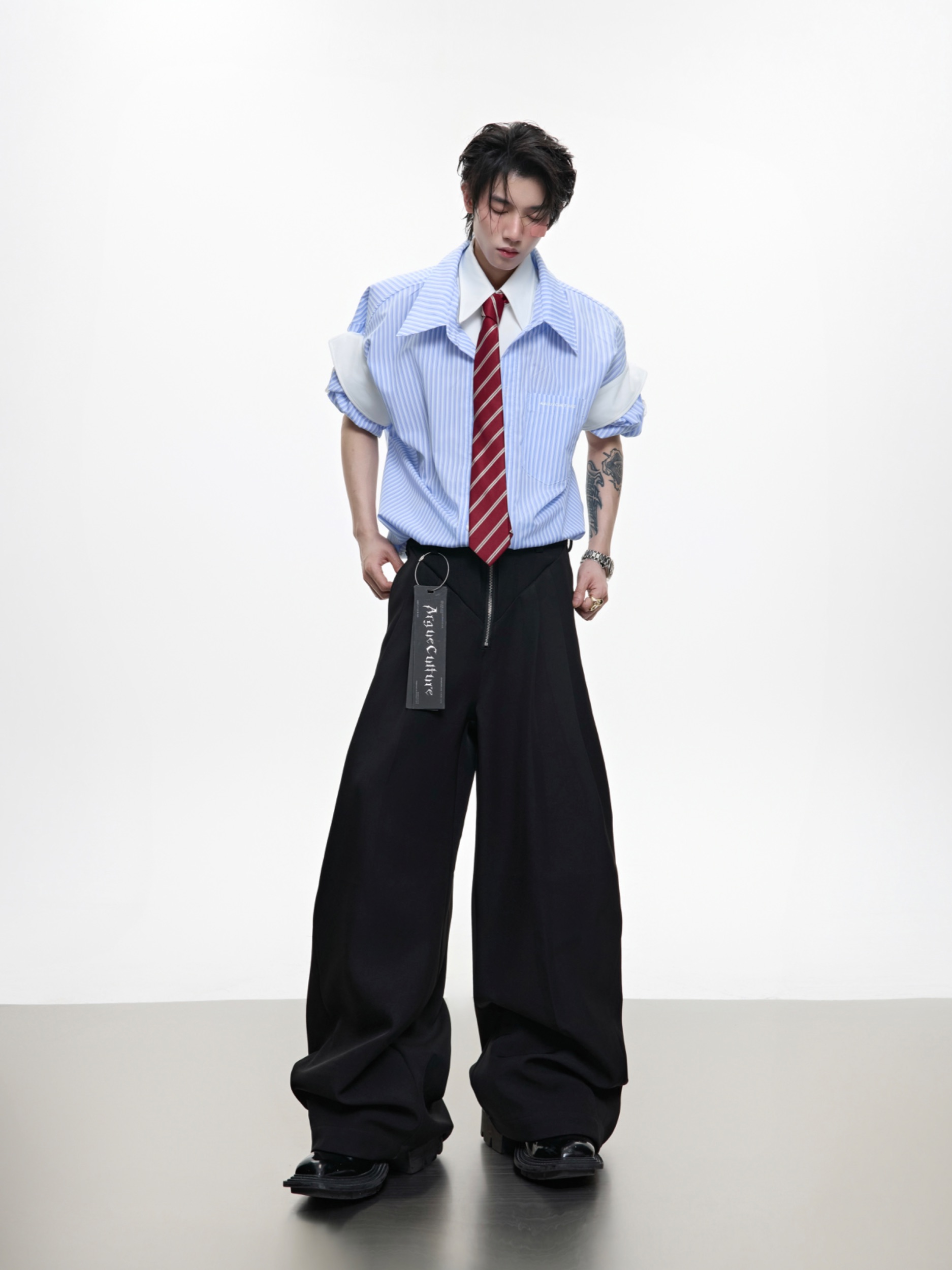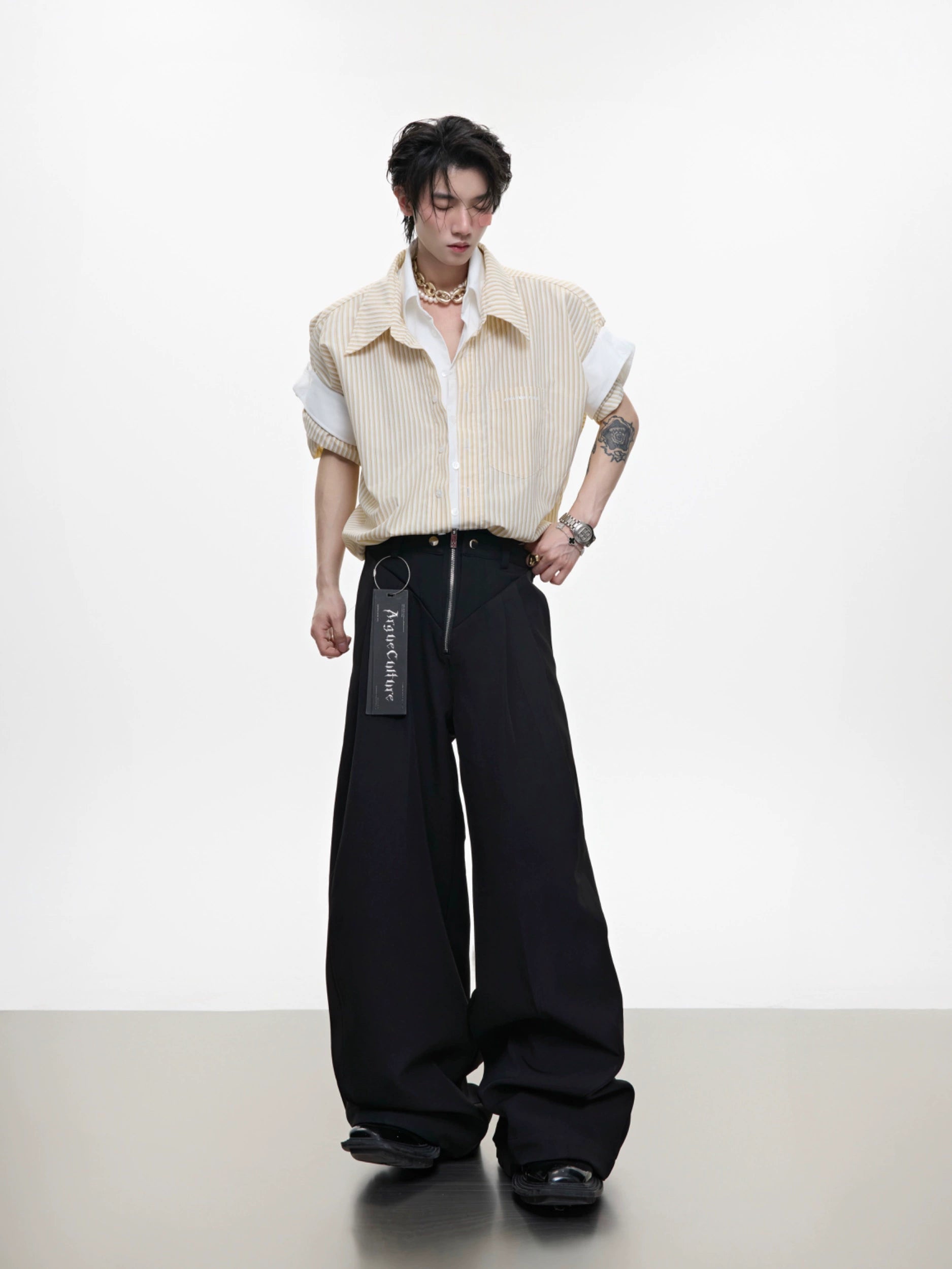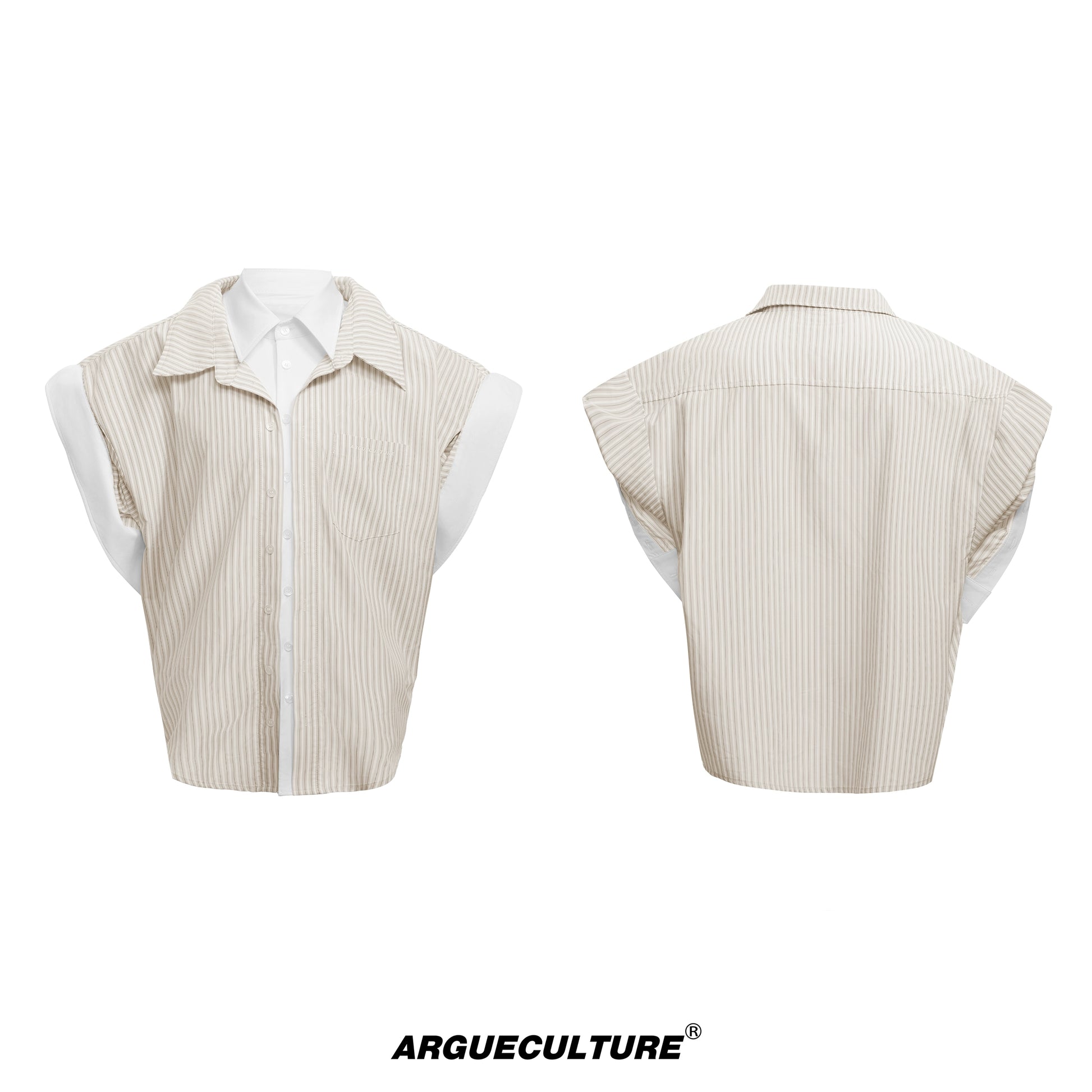 Stripe Fake Layered Short Sleeve Shirt WN18368