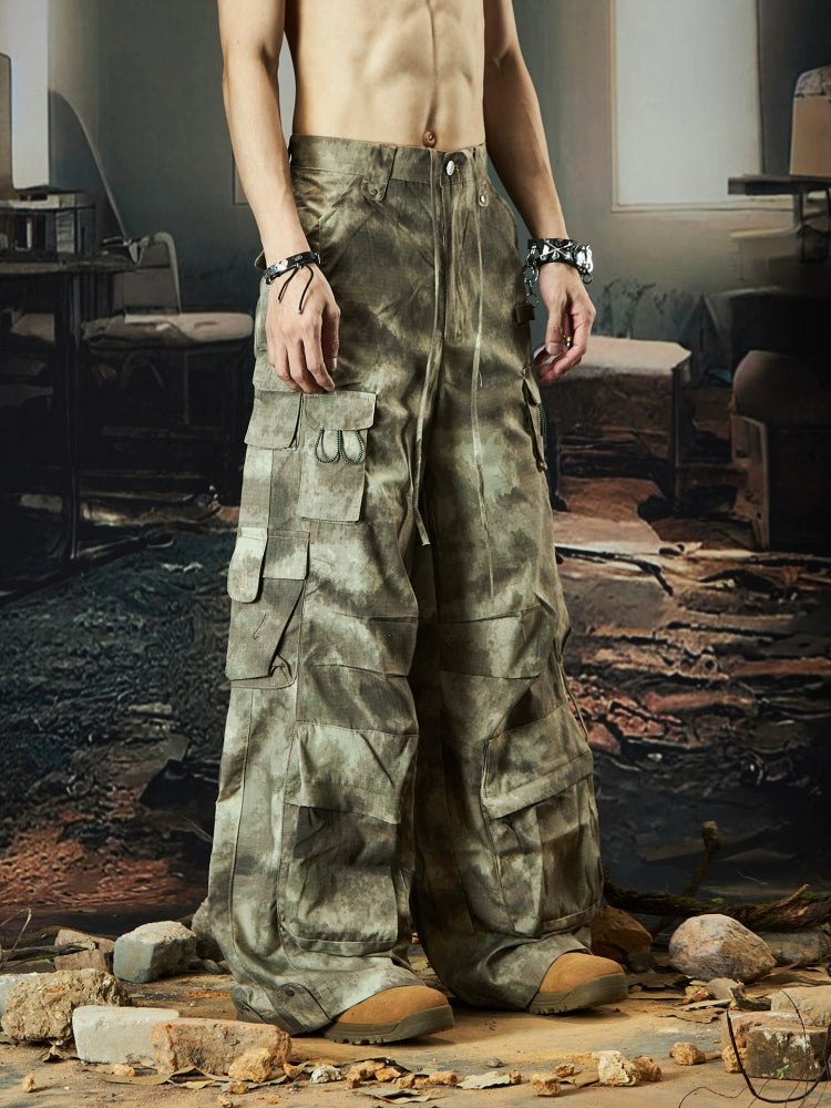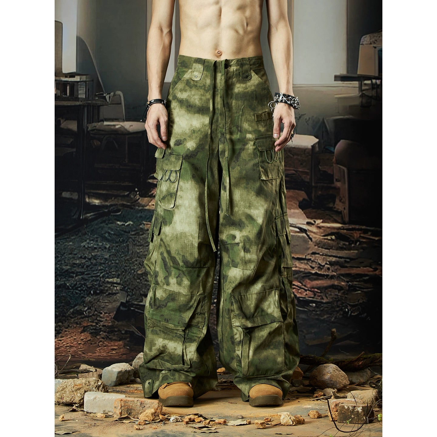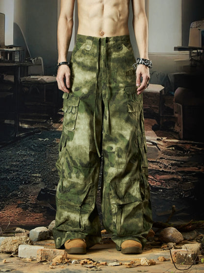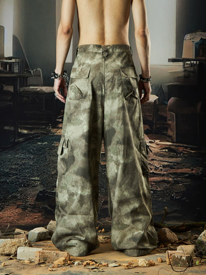 Drawstring Multi-Pocket Camouflage Straight Cargo Pants WN18499
