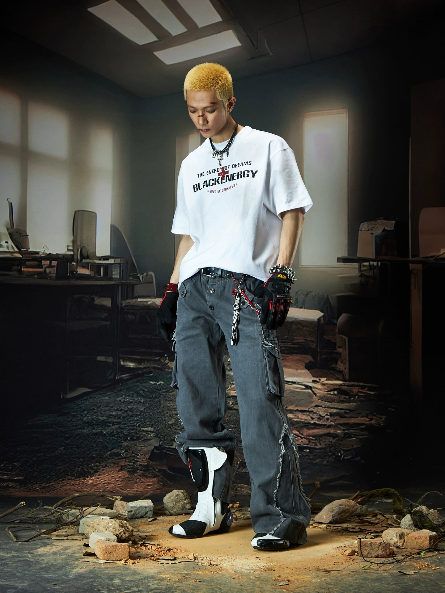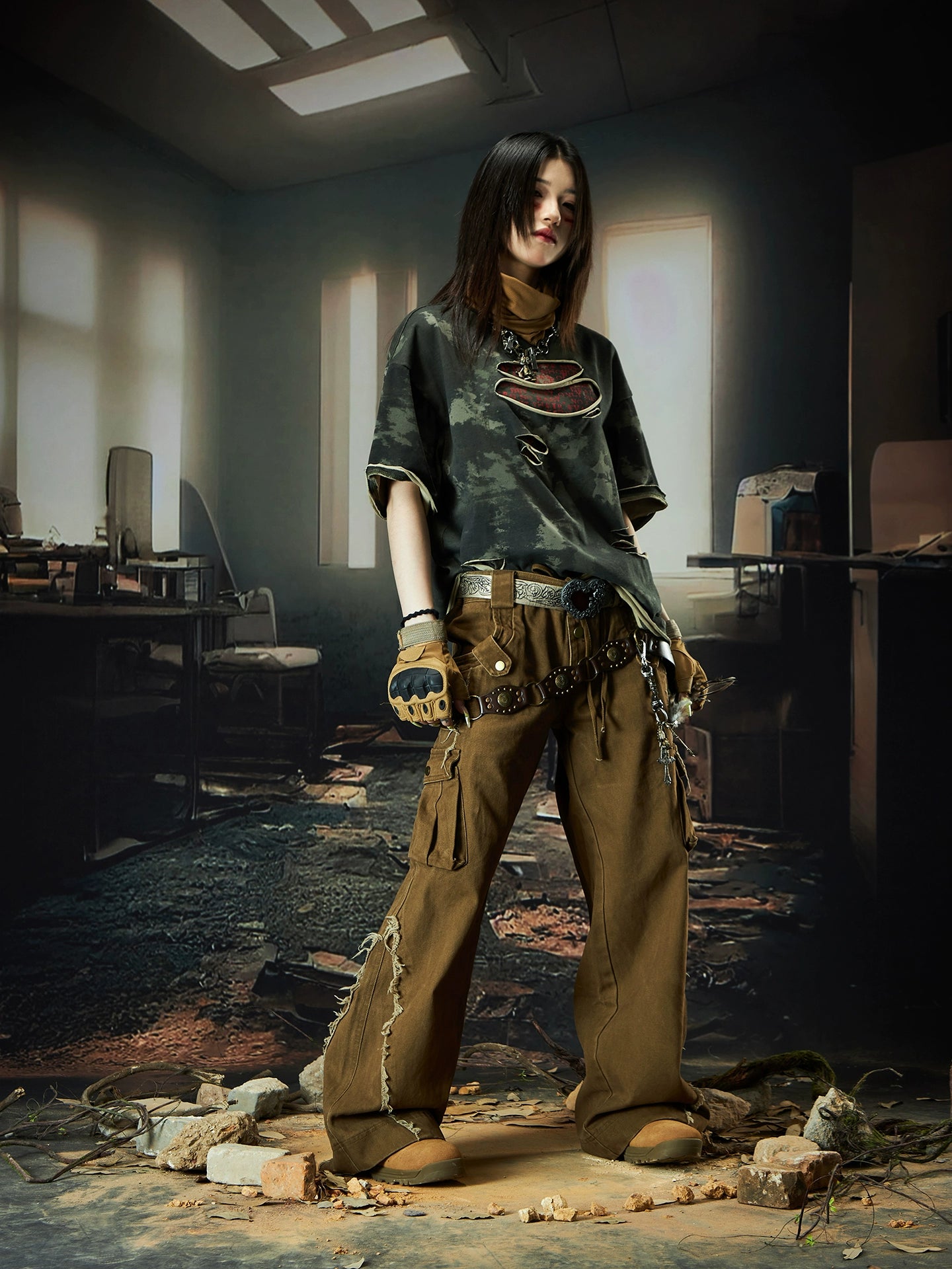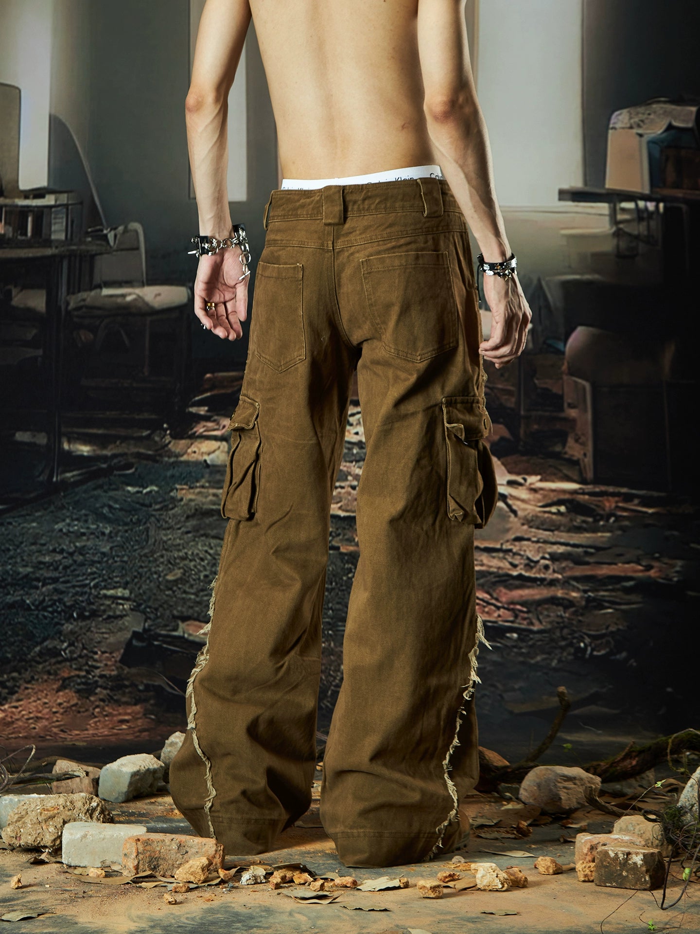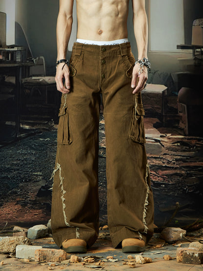Washed Layered Raw Hem Pocket Button Low-Rise Denim Jeans WN18508