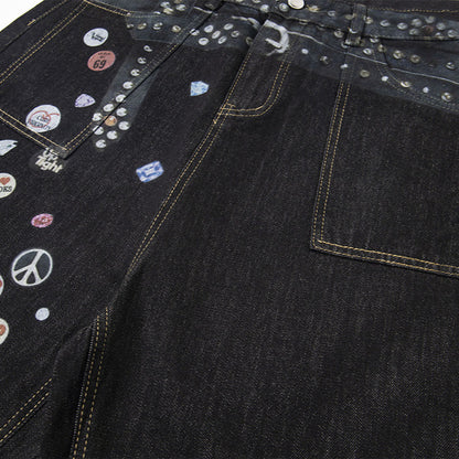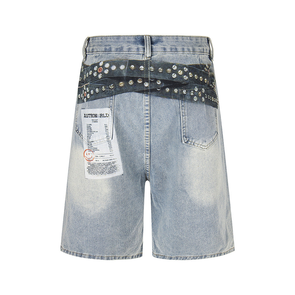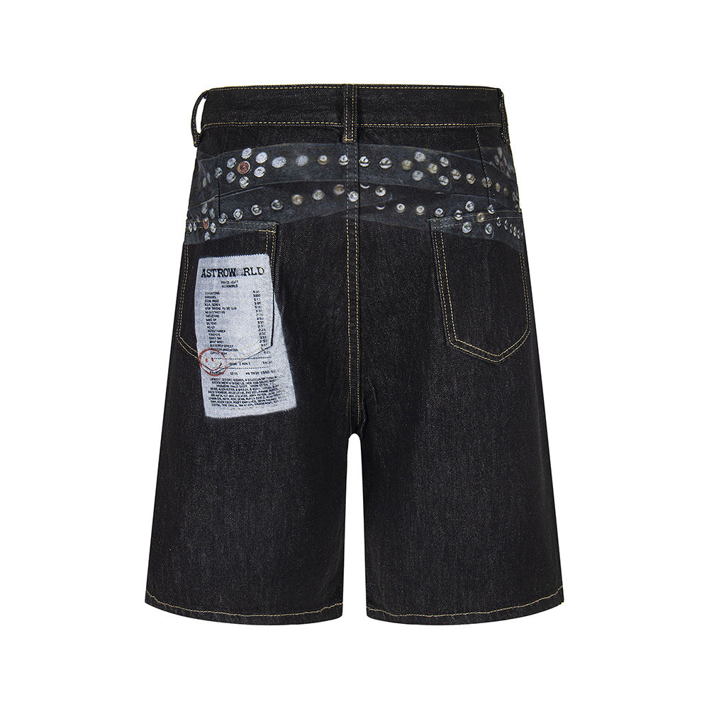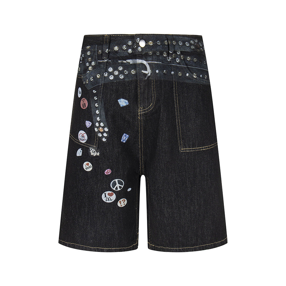 Badge Belt Print Wide Leg Half Denim Jeans WN18522