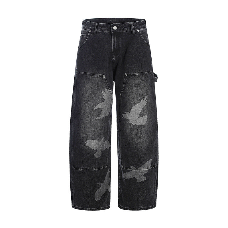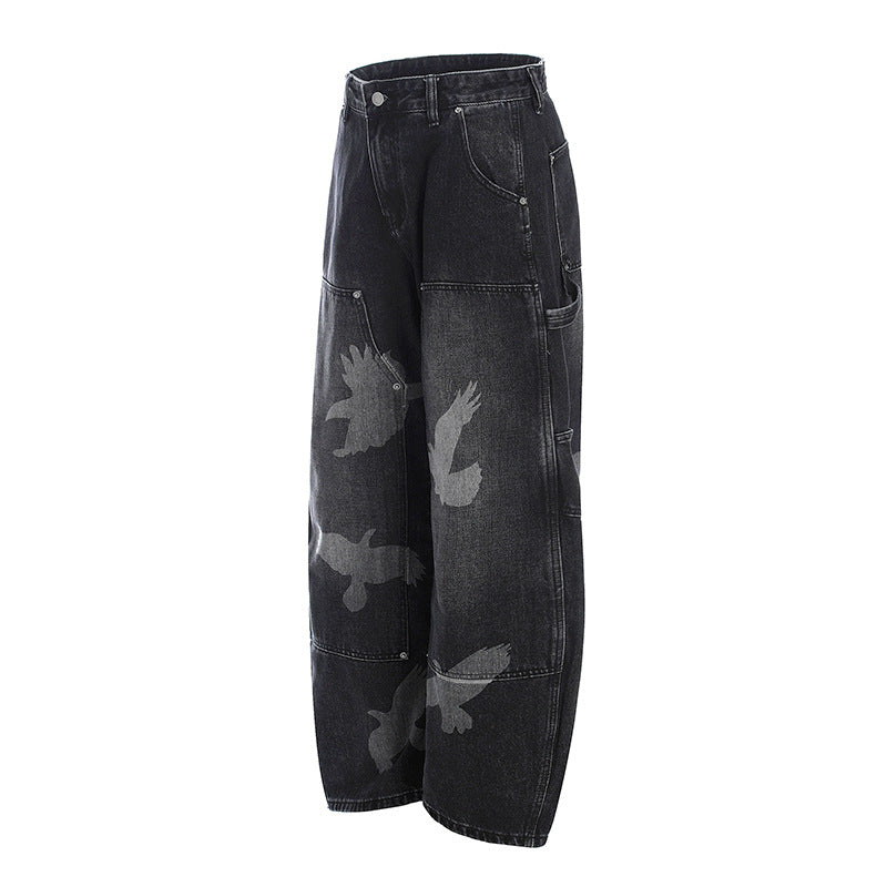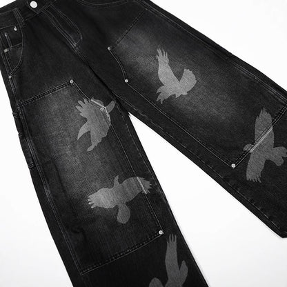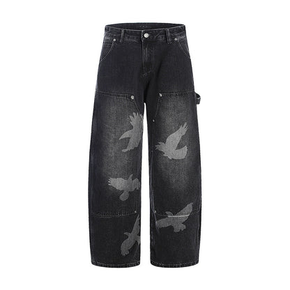 Graphic Design Wide-Leg Straight Denim Jeans WN18535