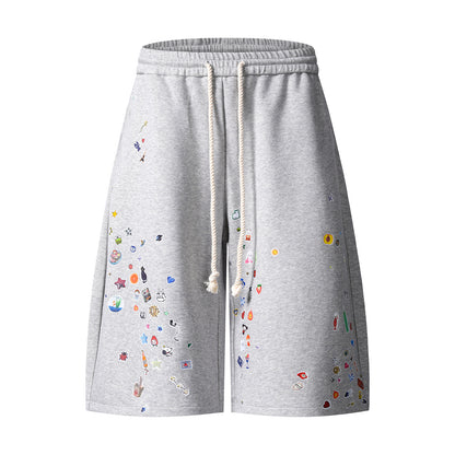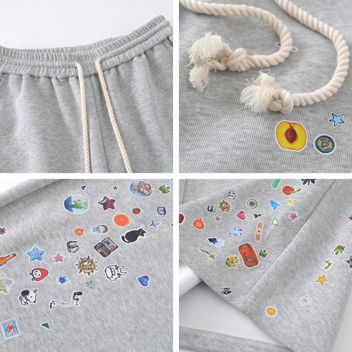Cartoon Print Sporty Wide Leg Short Sweatpants WN18540