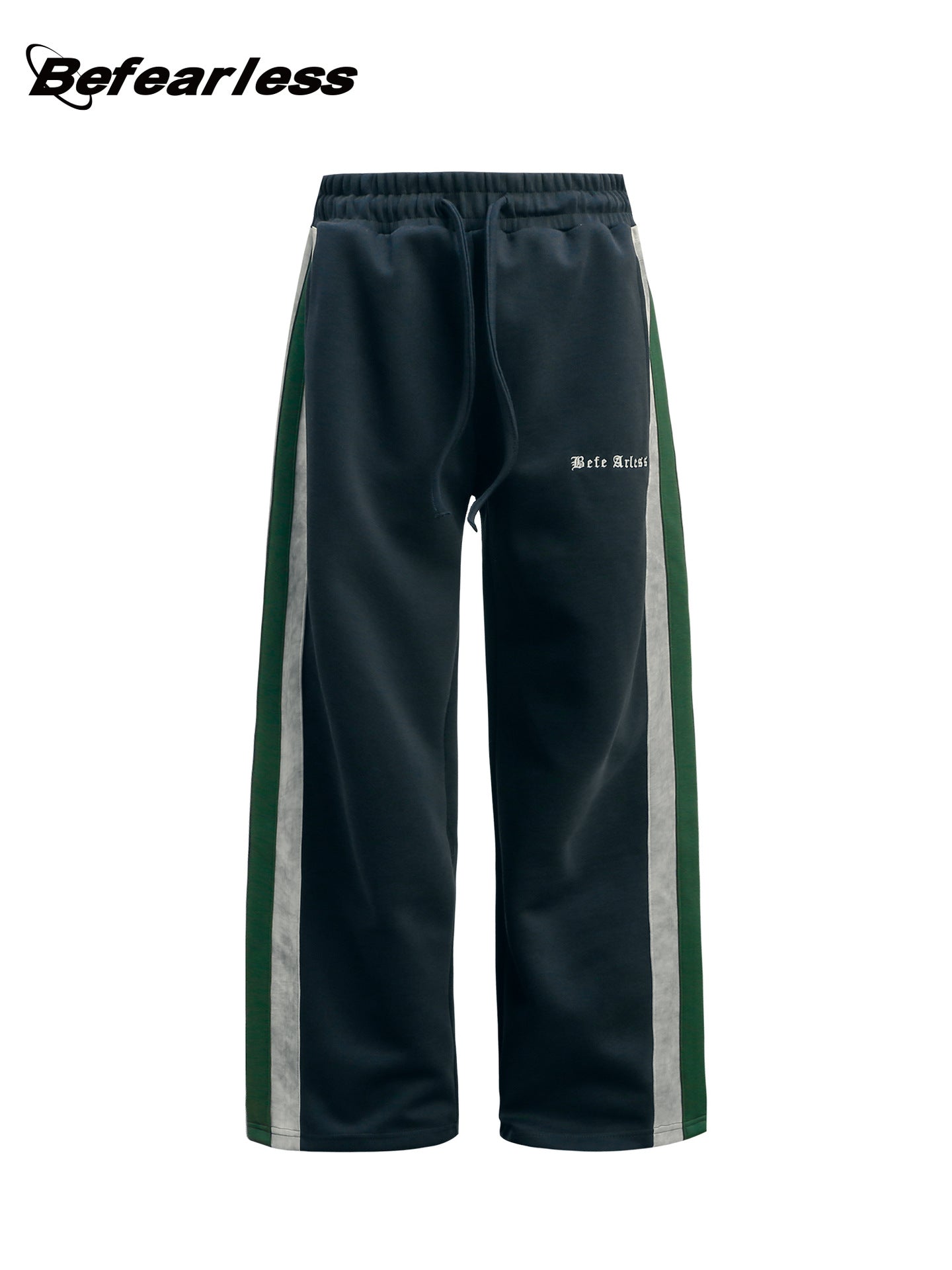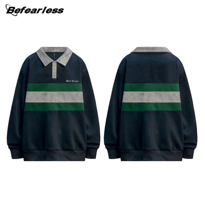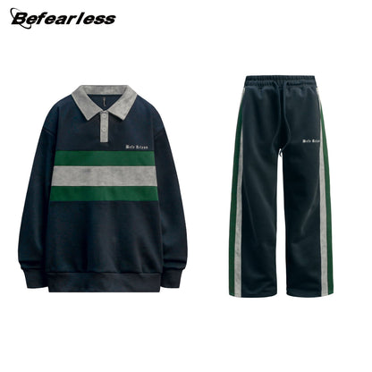Washed Patchwork Colorblock Long Sleeve Polo Shirt & Sporty Pants Setup WN18568