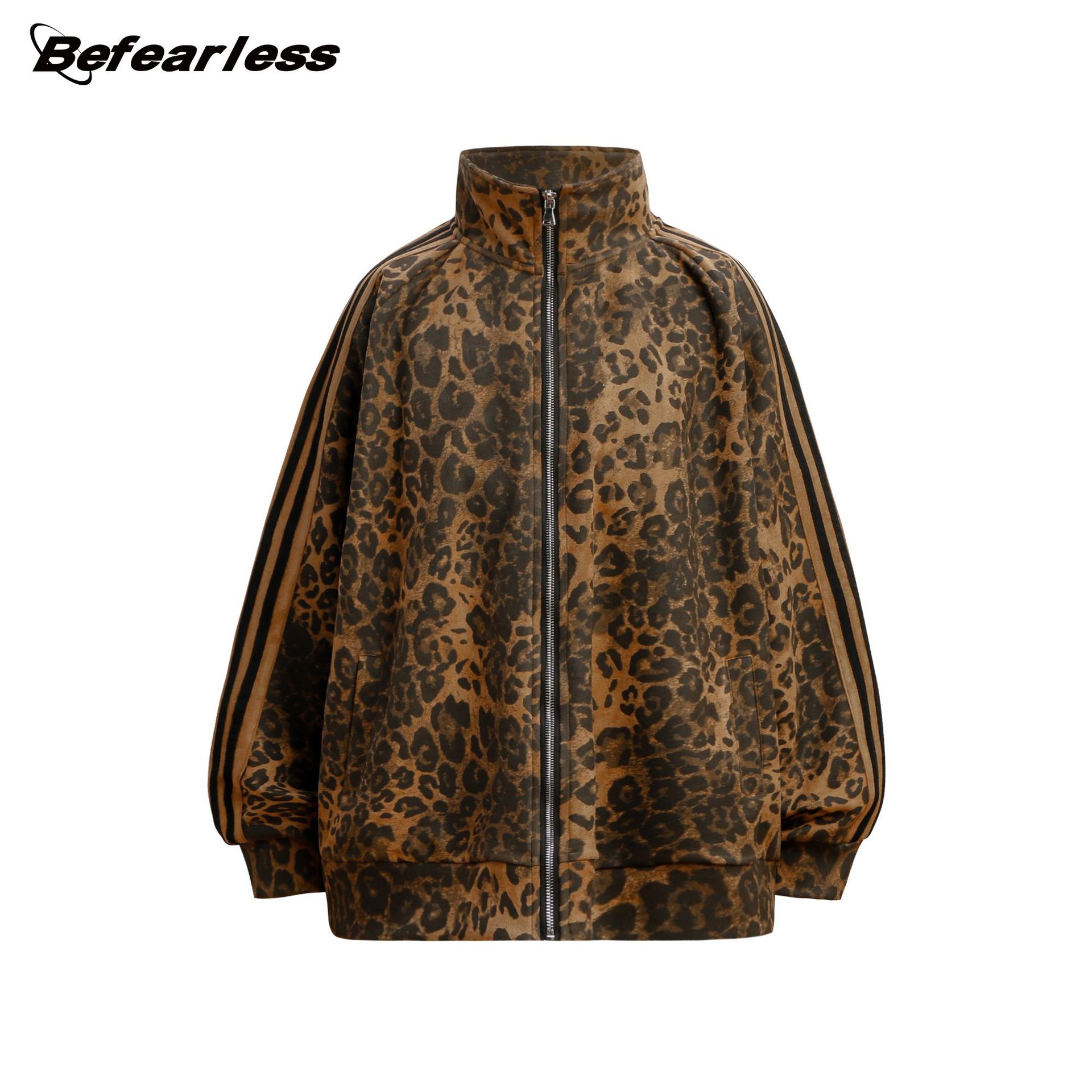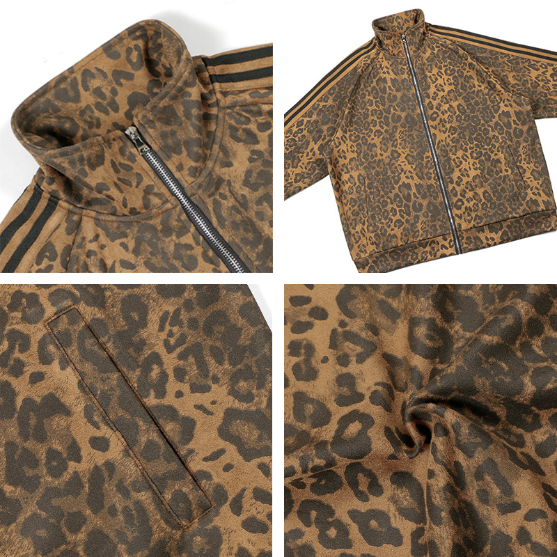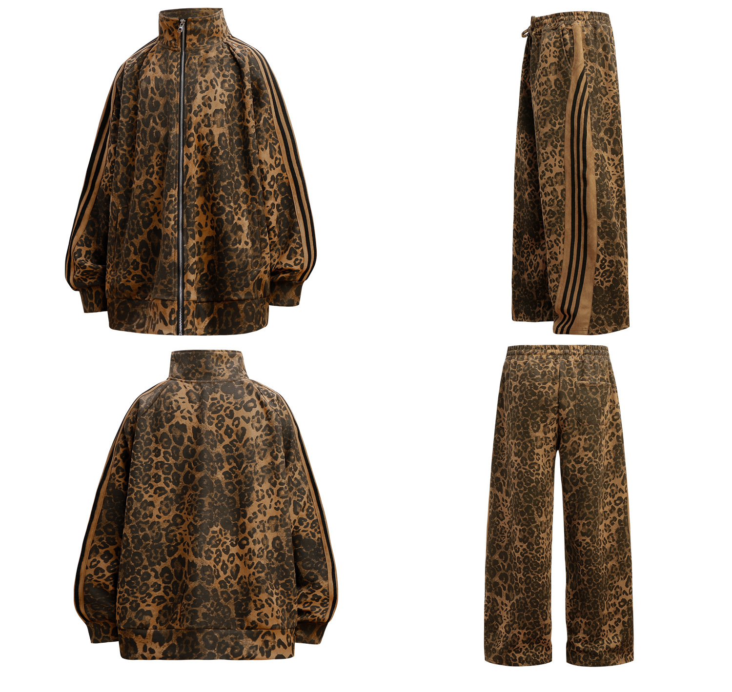 Leopard Design Stand Neck Zipper Jacket & Wide Leg Pants Setup WN18570