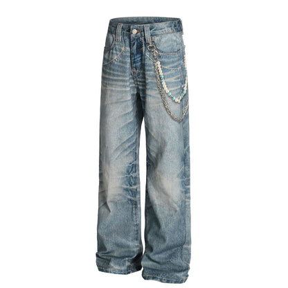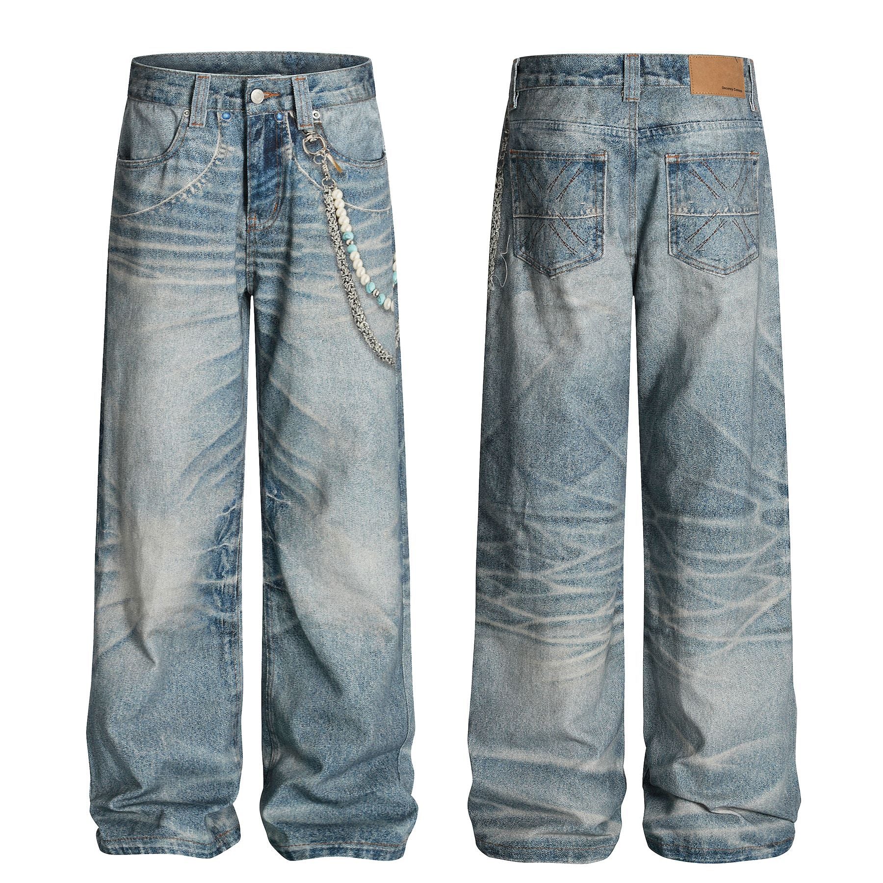 Digital Print Chain Design Wide Leg Denim Jeans WN18575
