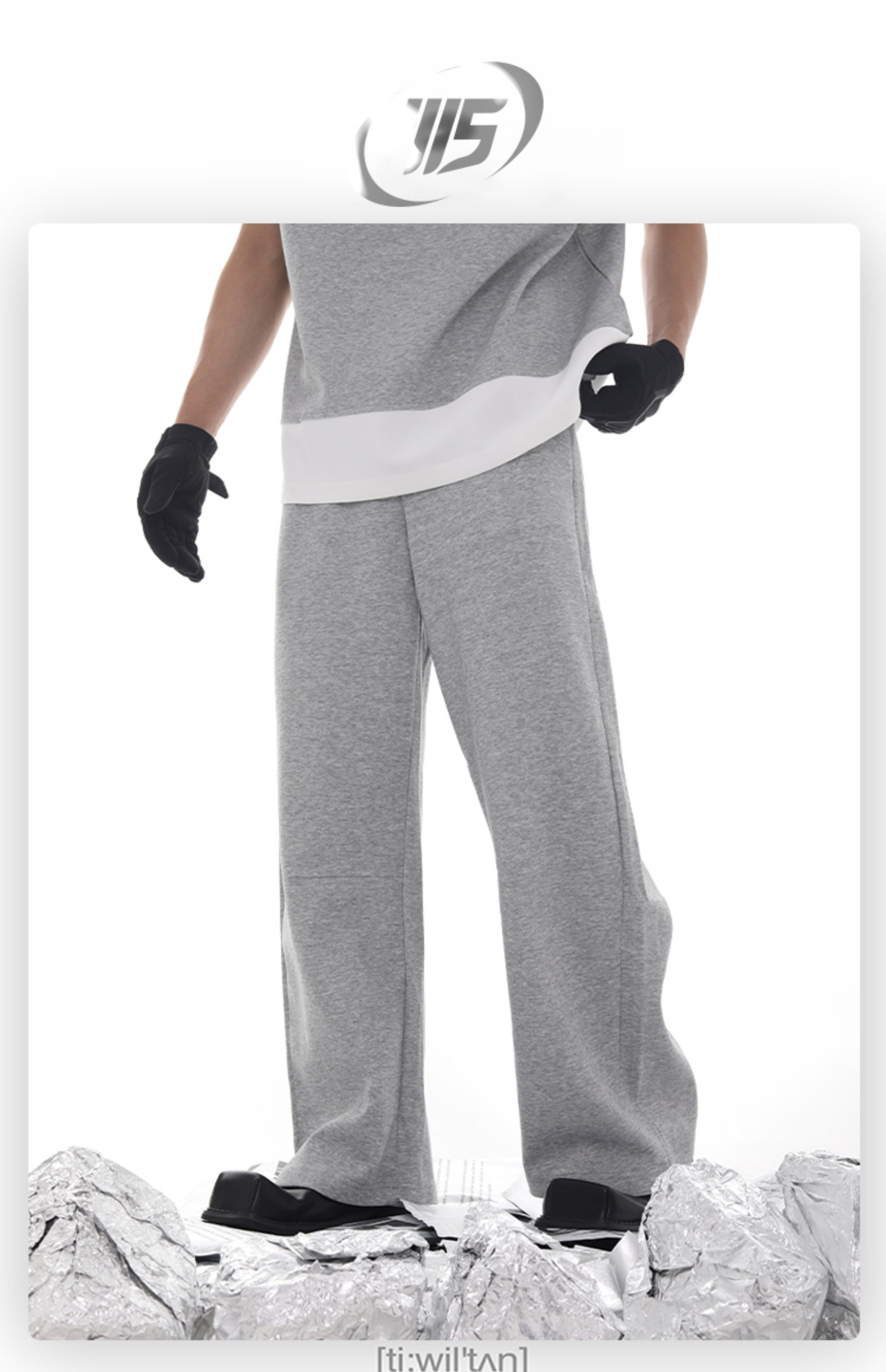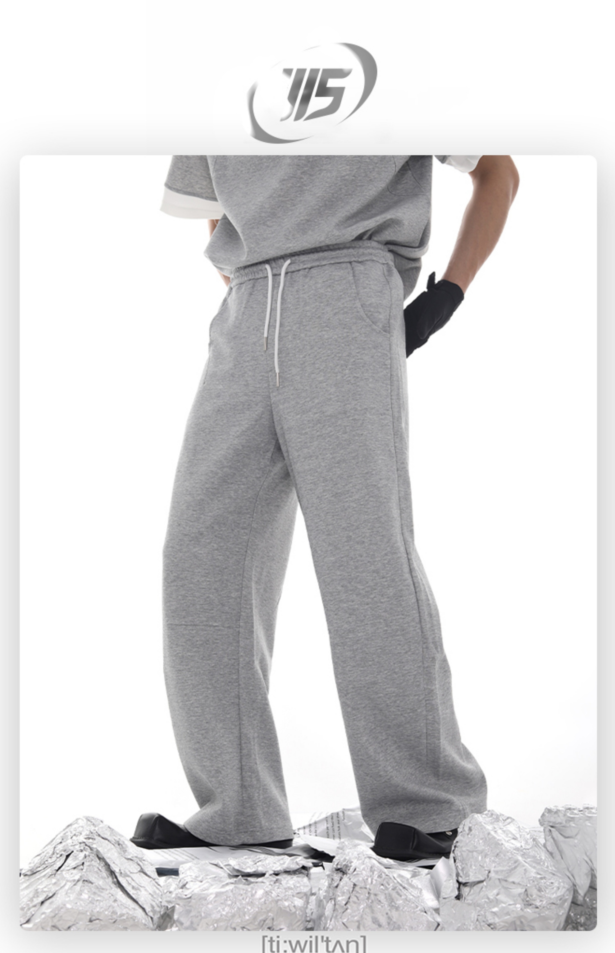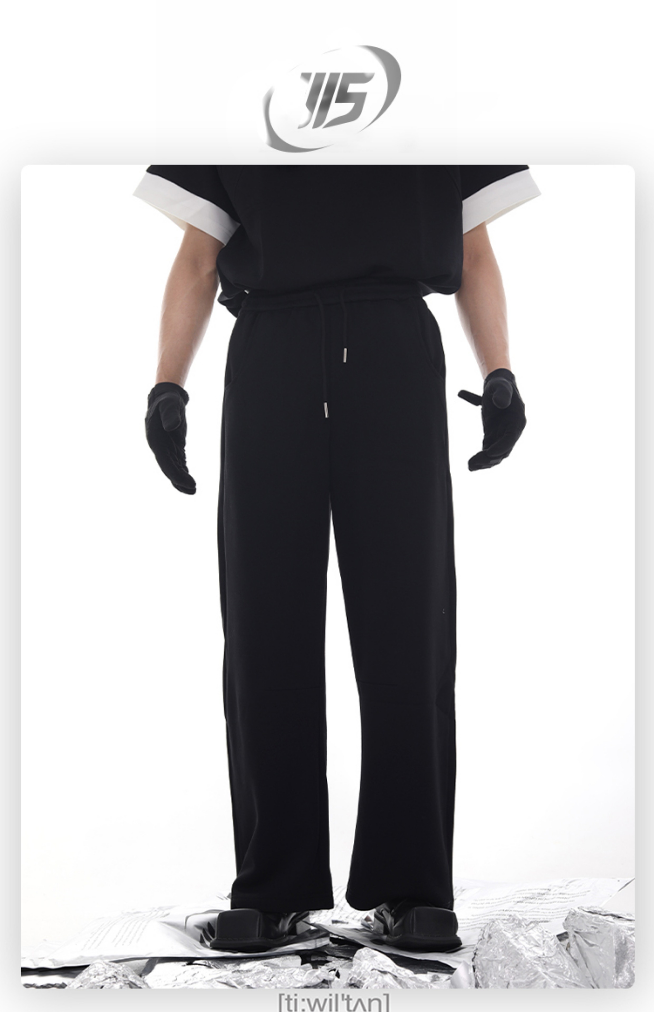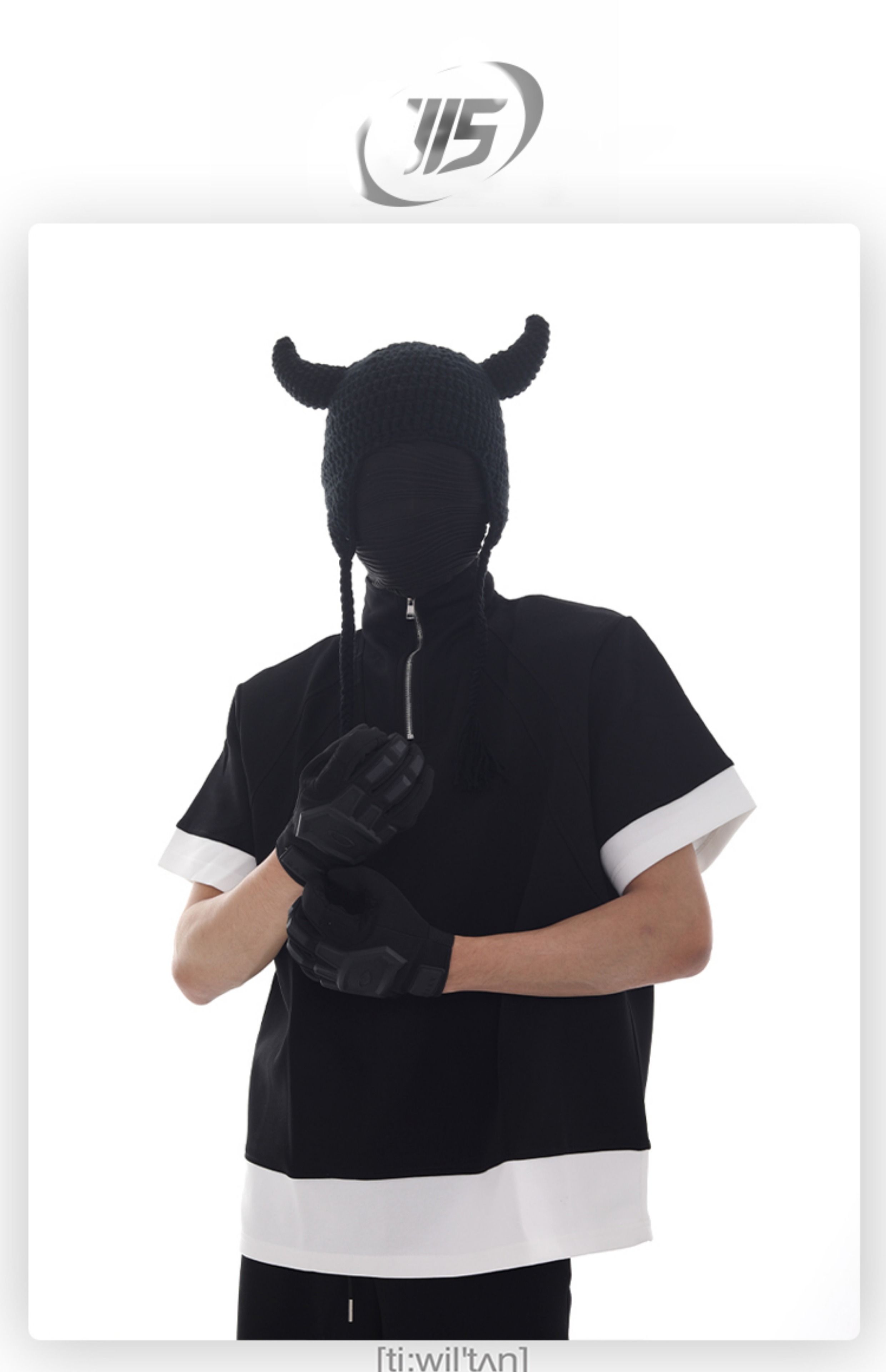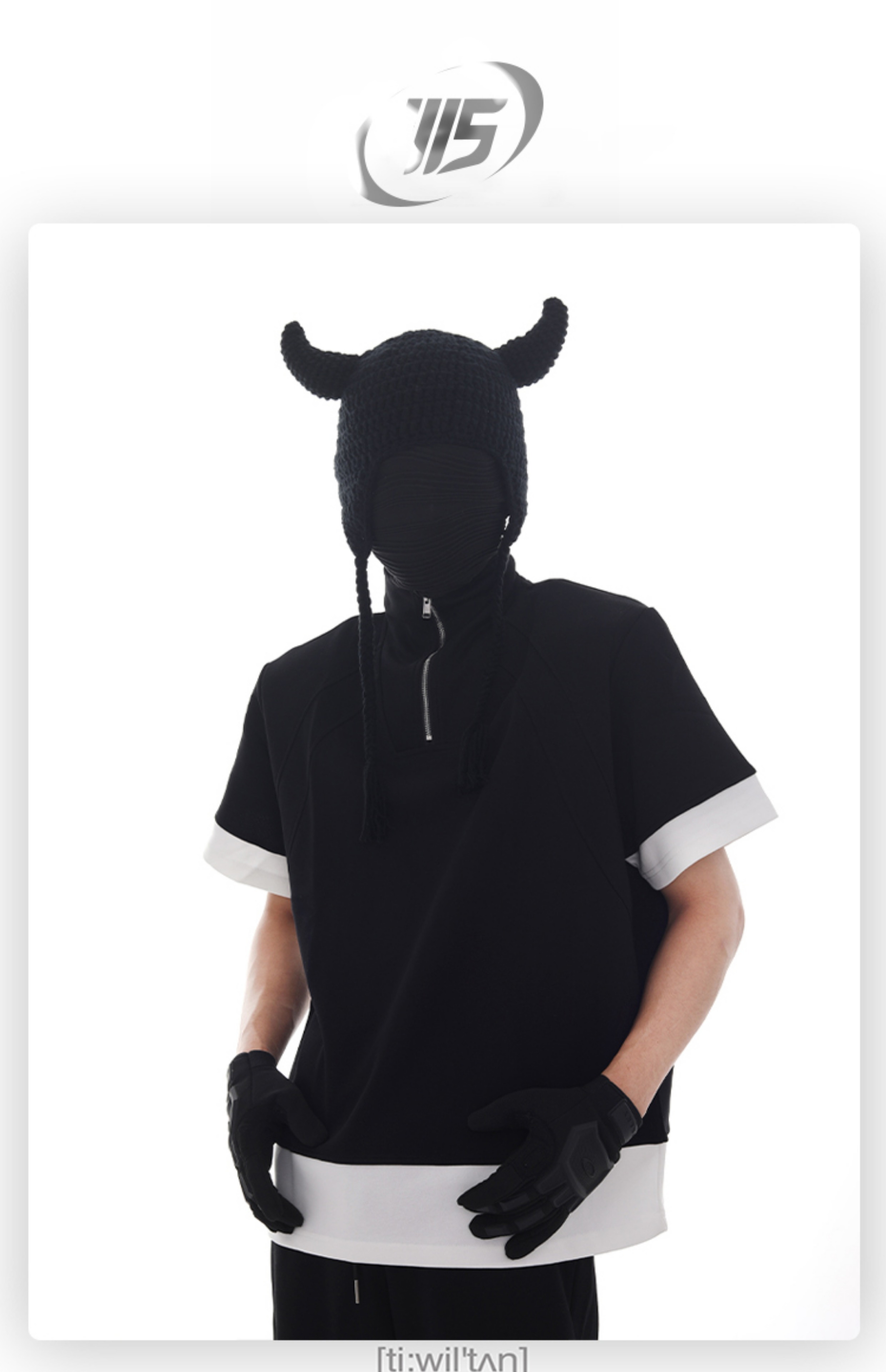 Half Zipper Stand Neck Shoulder-Pad Short Sleeve T-Shirt & Sweatpants Setup WN18620