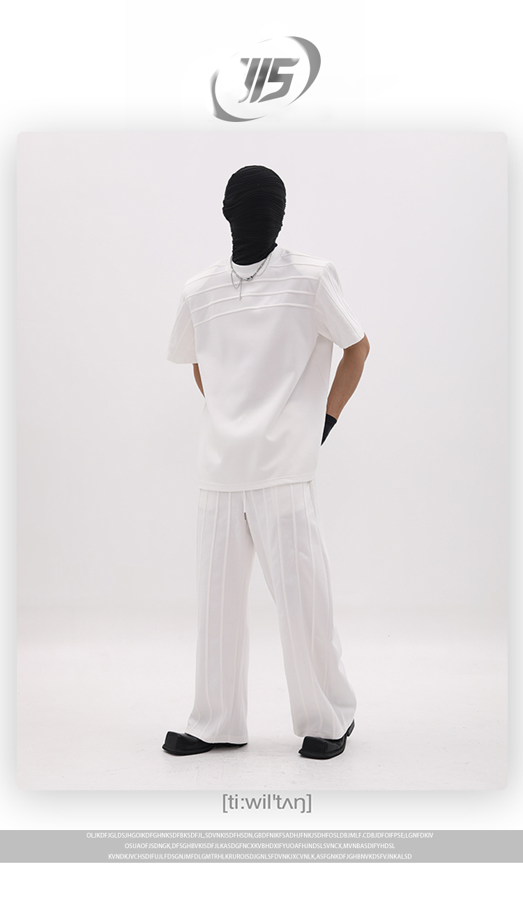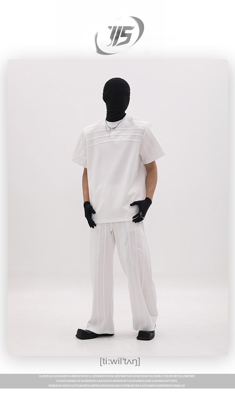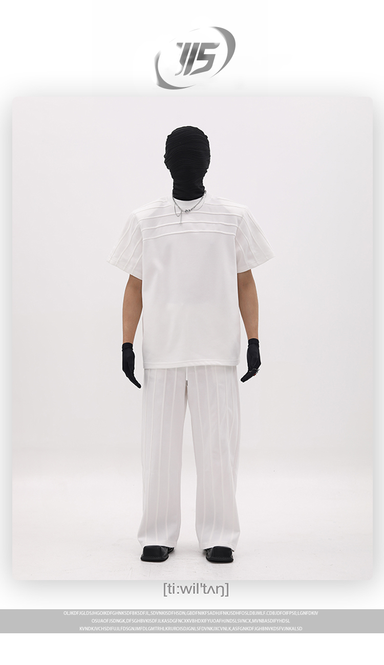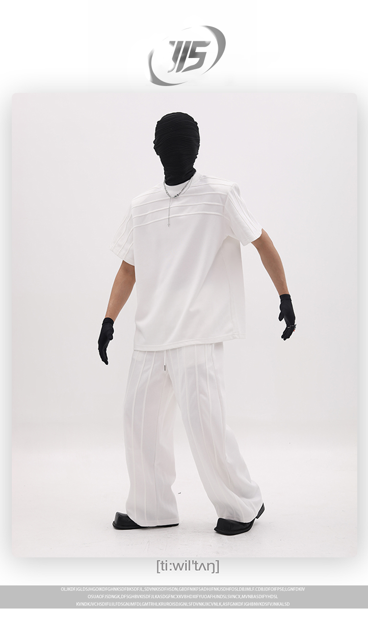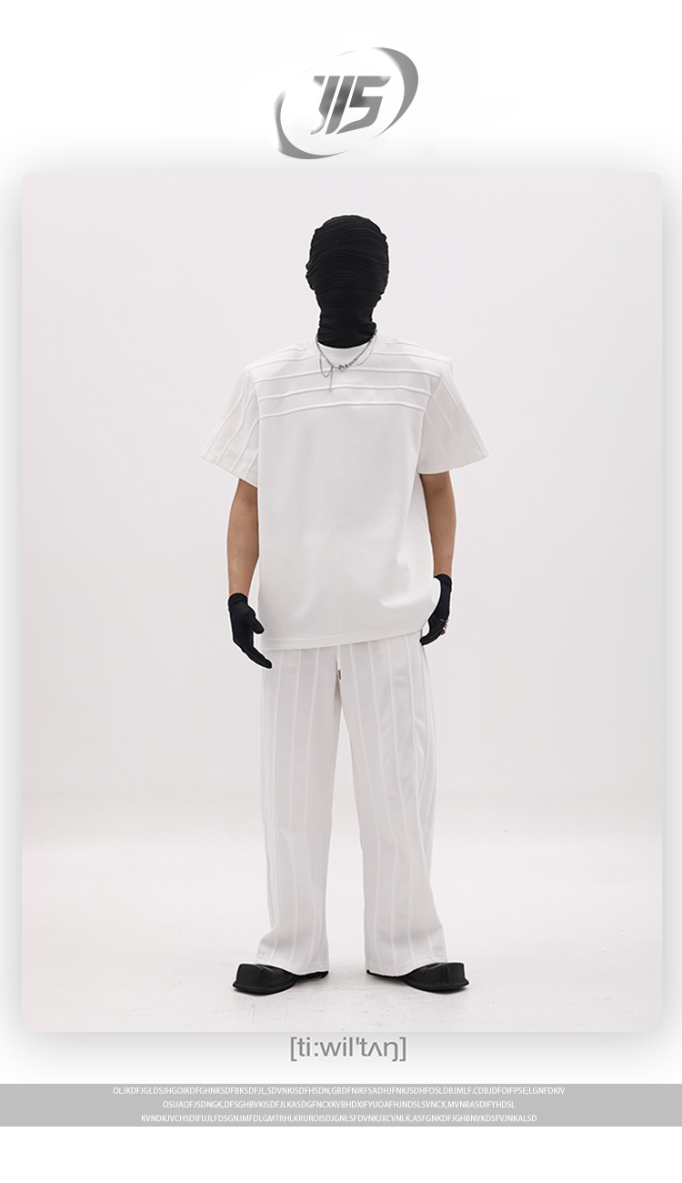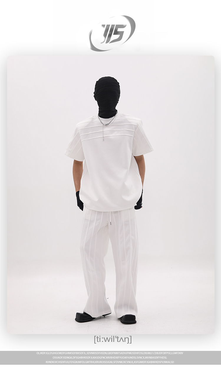Patchwork Shoulder-Pad Short Sleeve T-Shirt & Pants Setup WN18637
