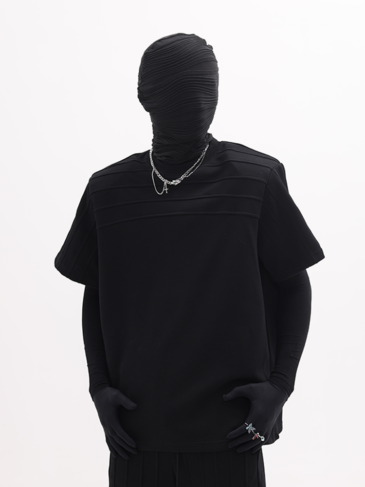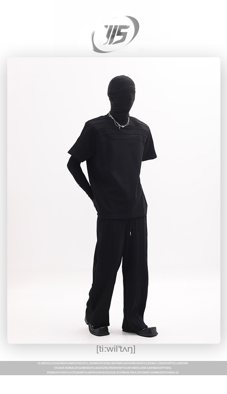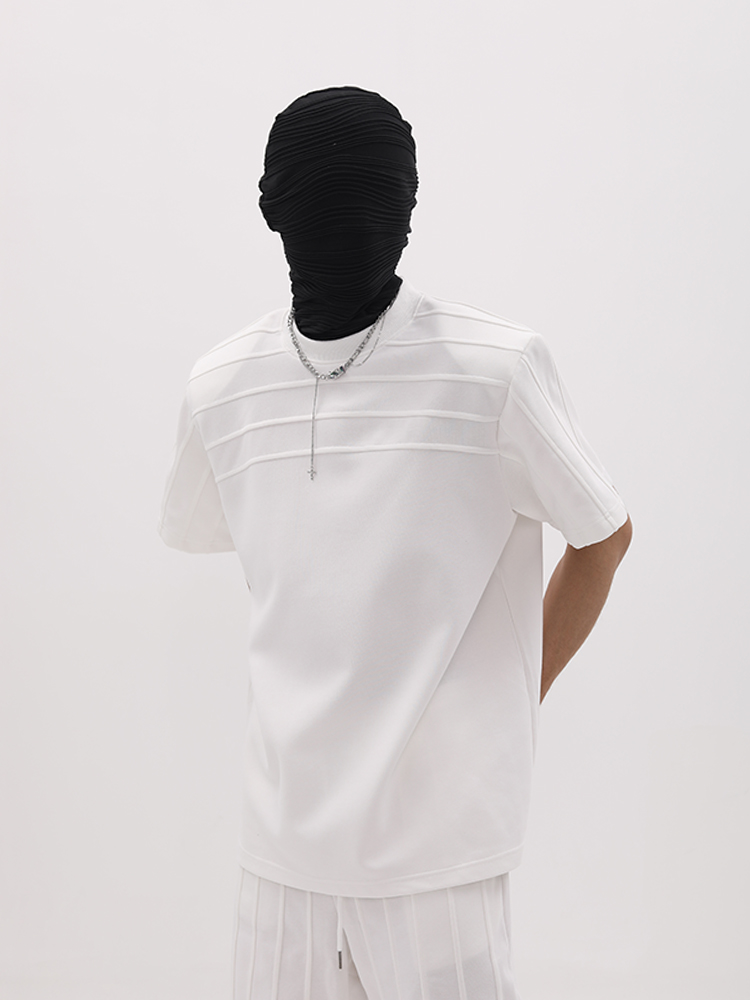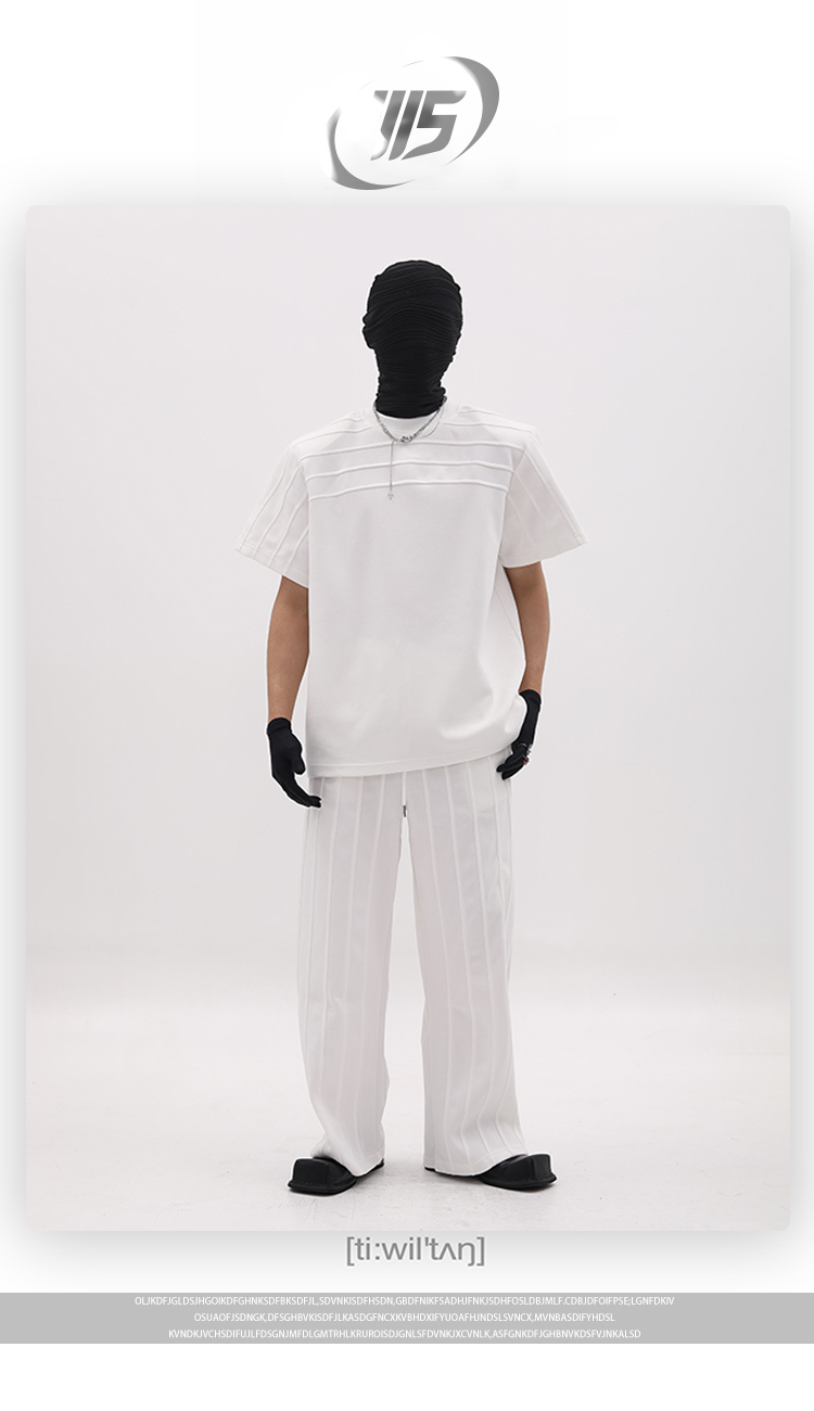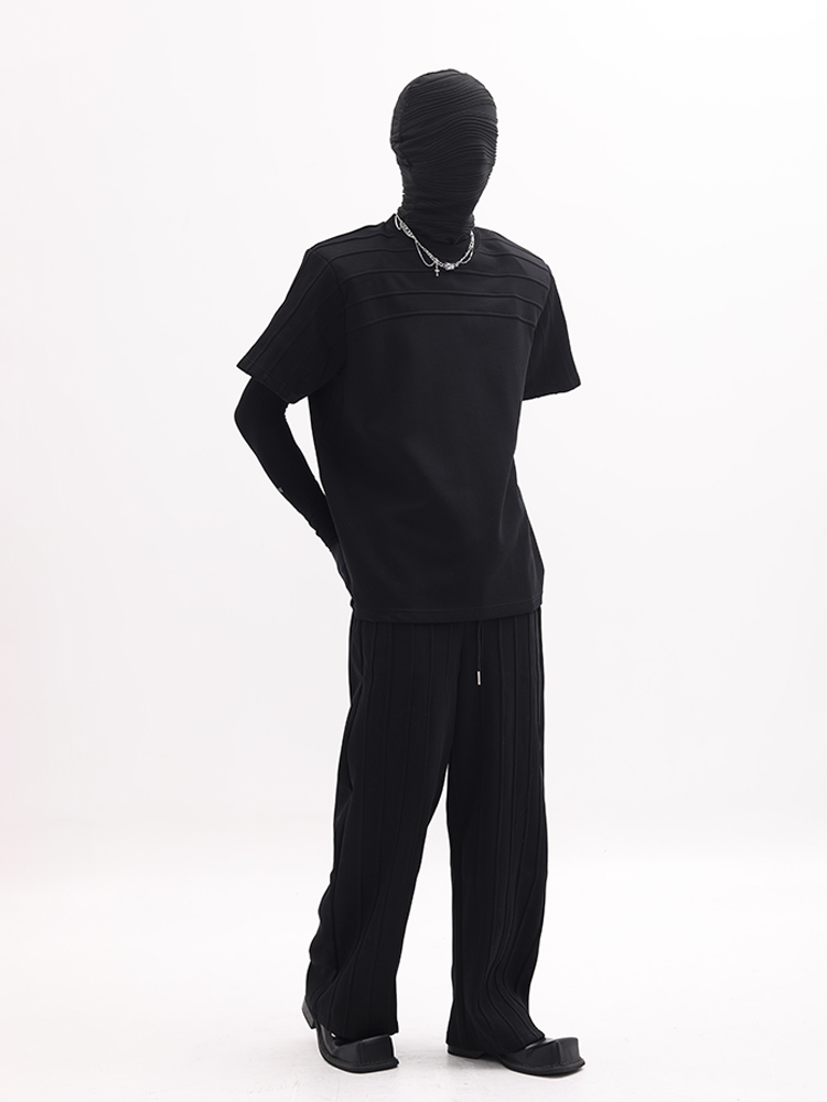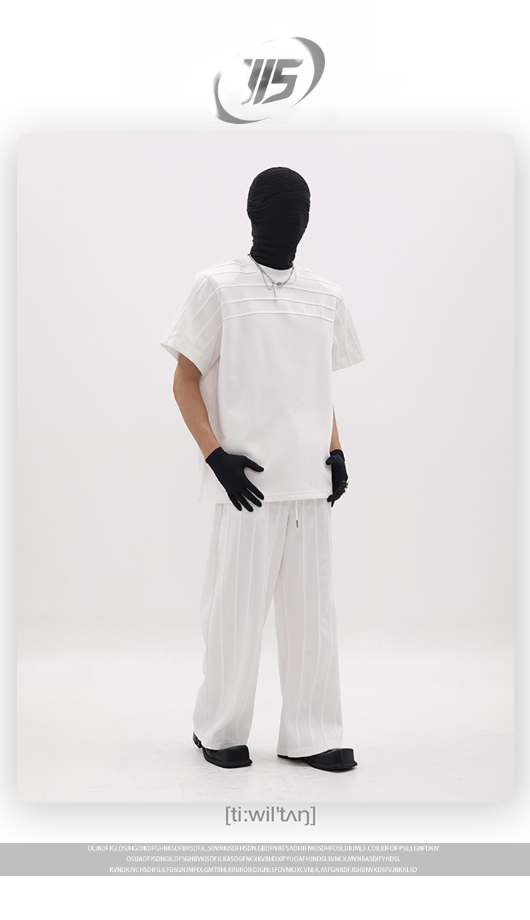 Patchwork Shoulder-Pad Short Sleeve T-Shirt & Pants Setup WN18637
