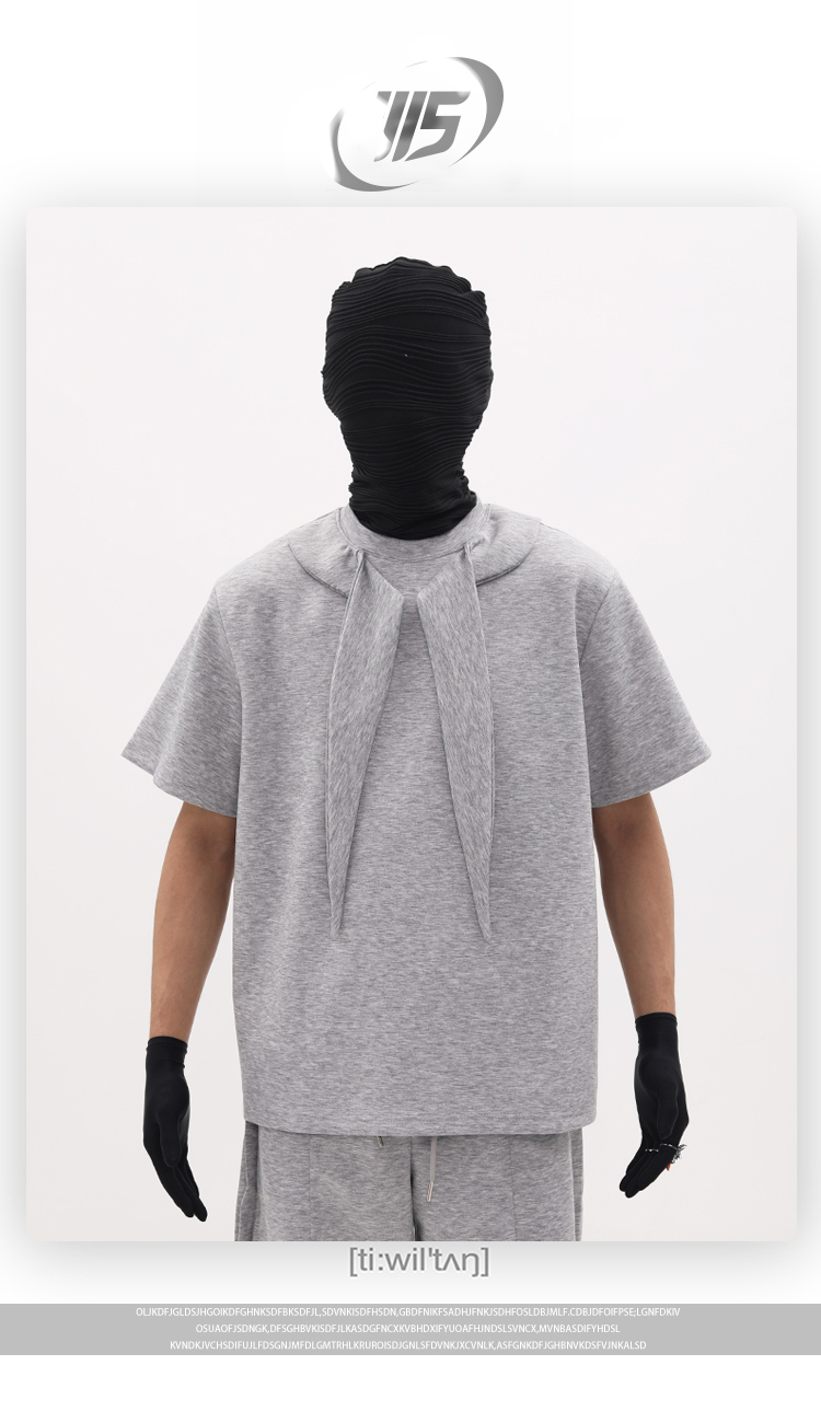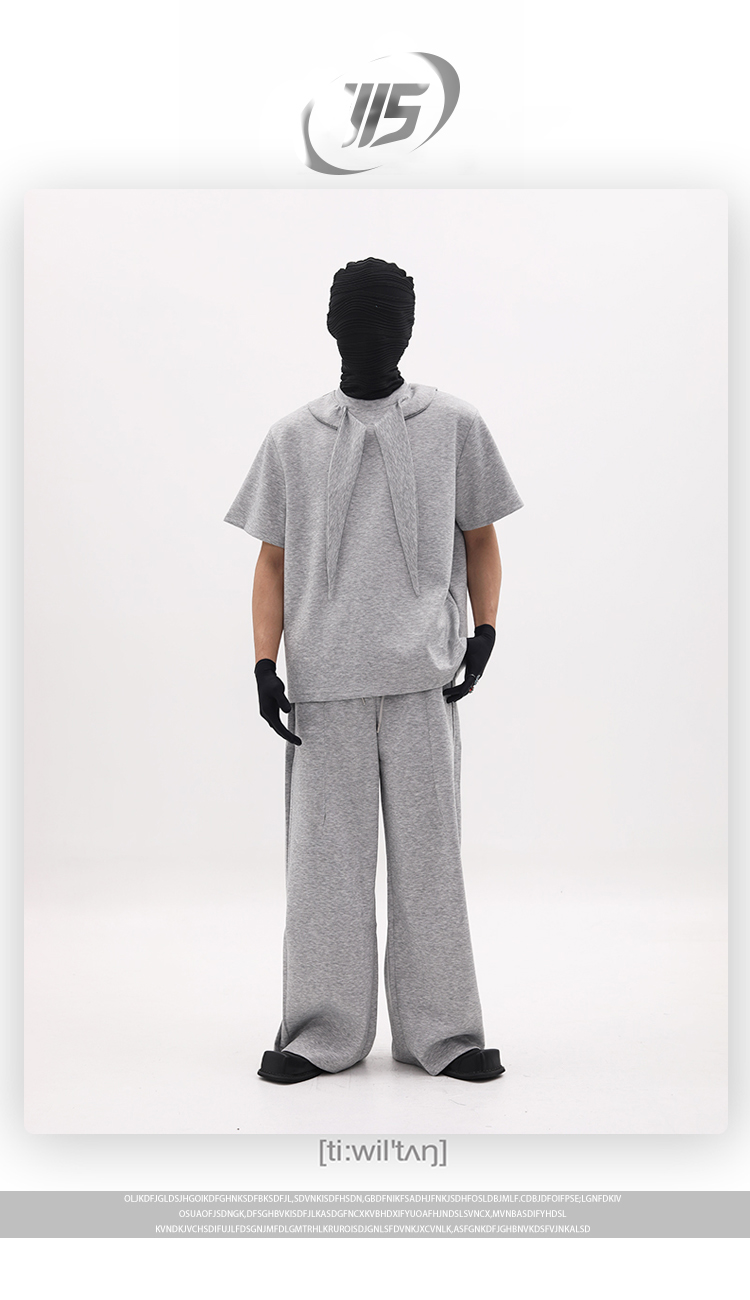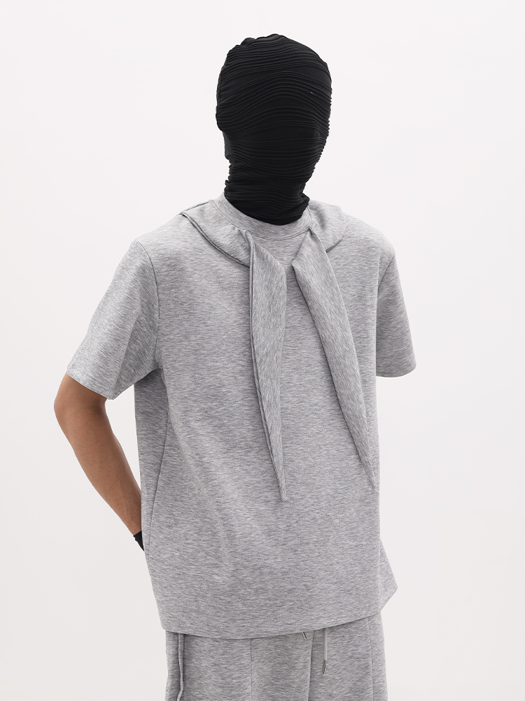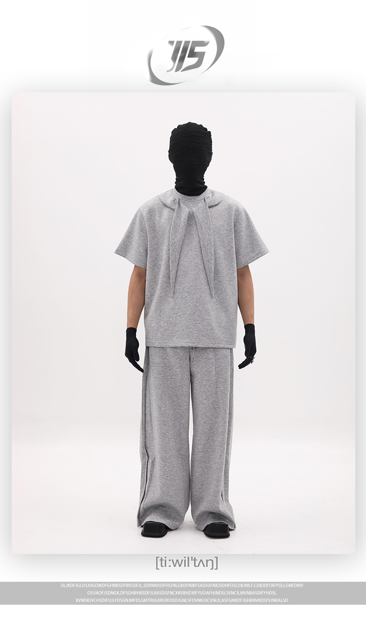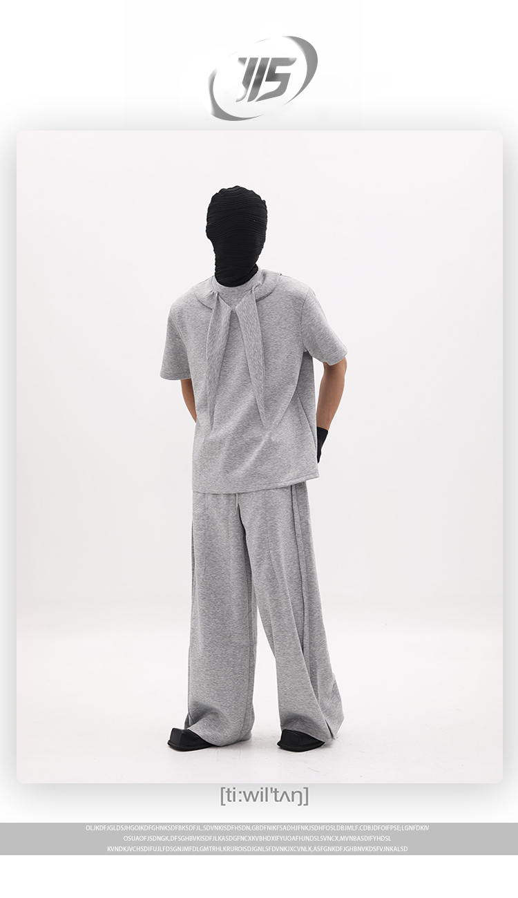 Scarf Collar Design Oversize Short Sleeve T-Shirt & Wide Leg Sweatpants Setup WN18658