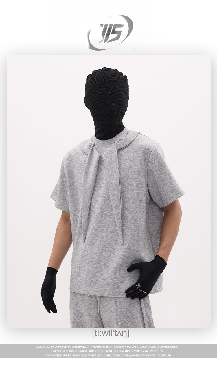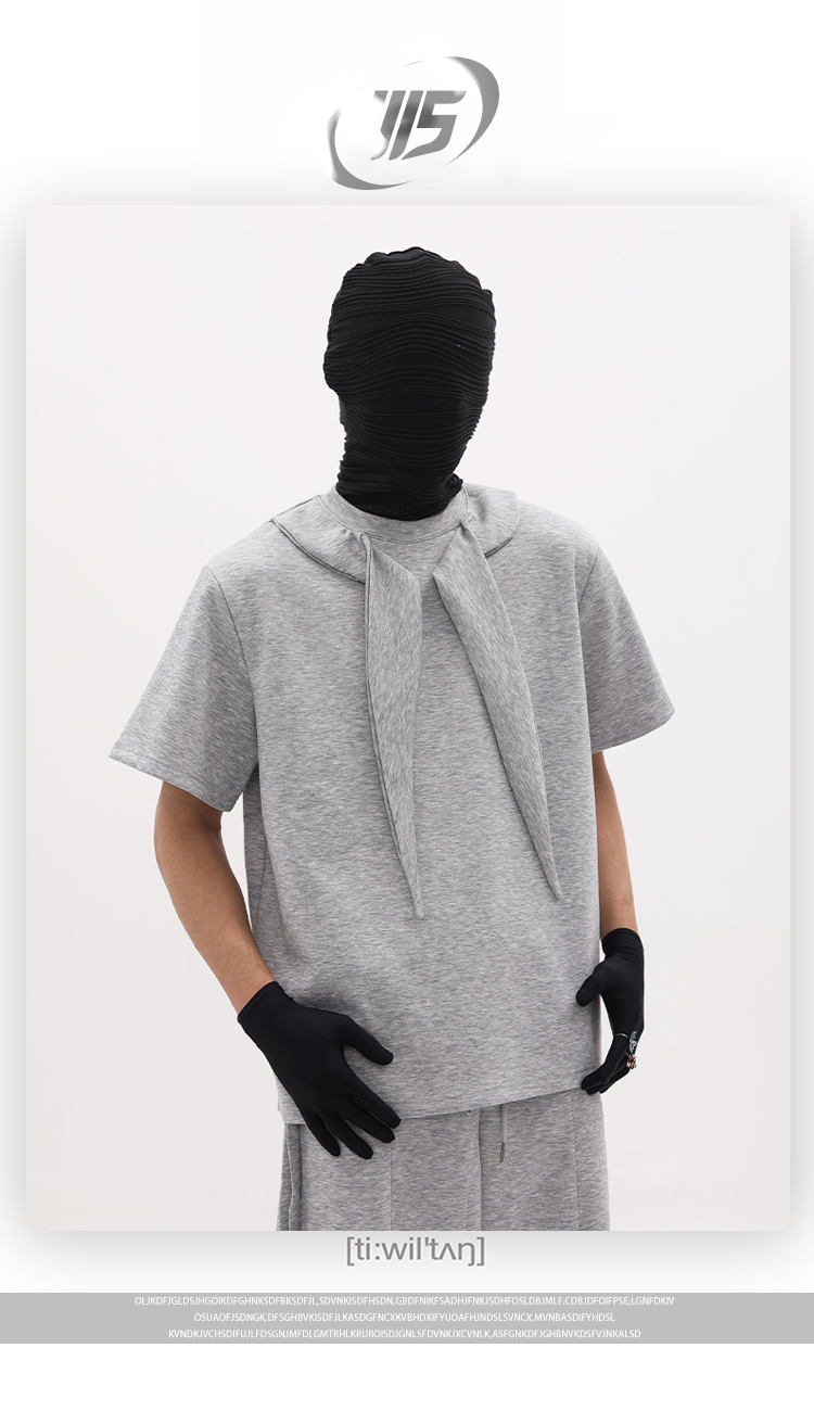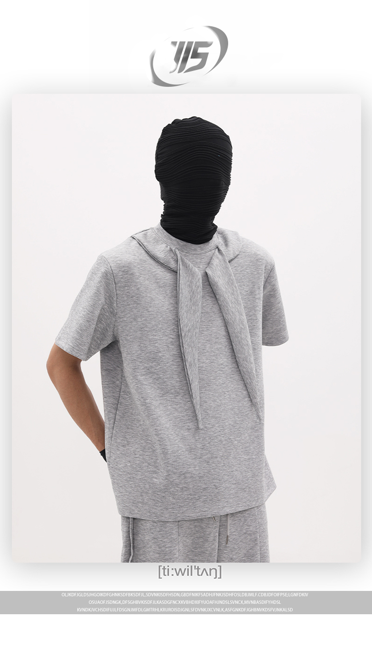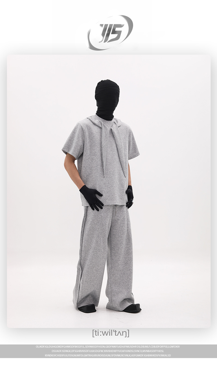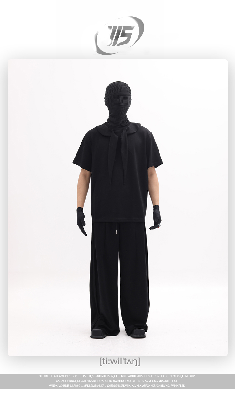 Scarf Collar Design Oversize Short Sleeve T-Shirt & Wide Leg Sweatpants Setup WN18658
