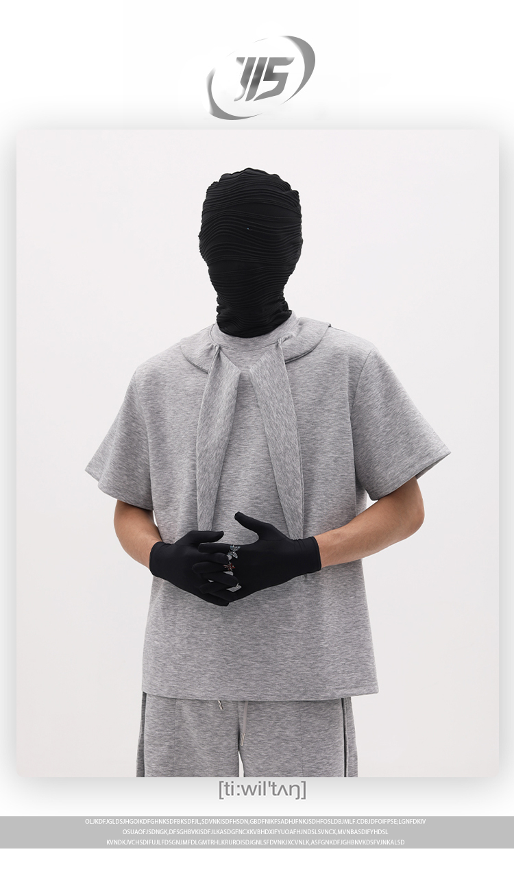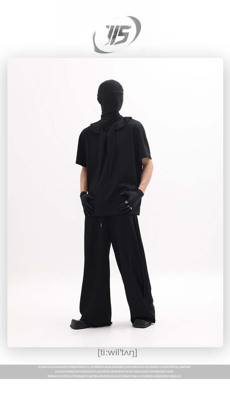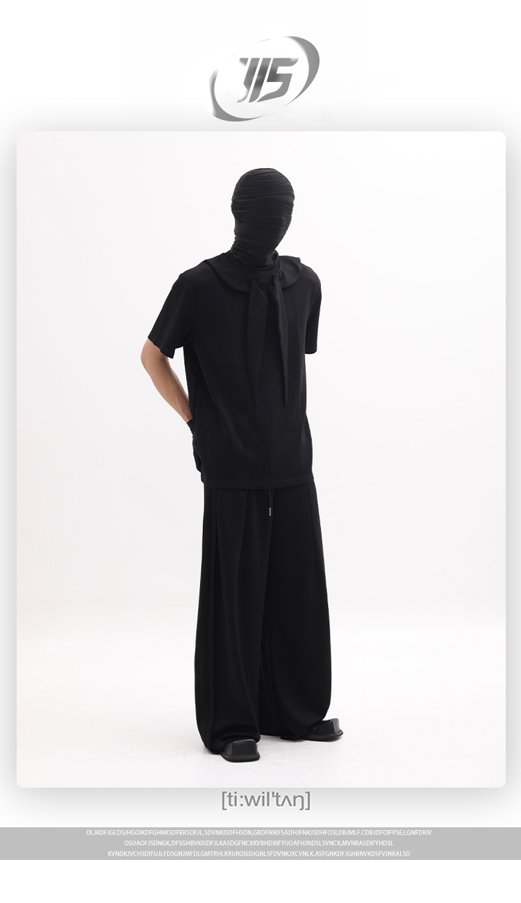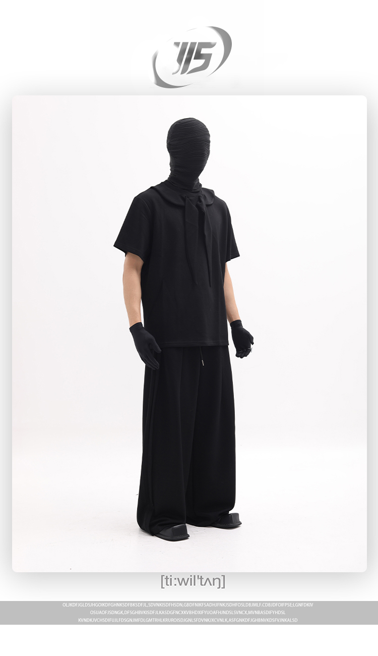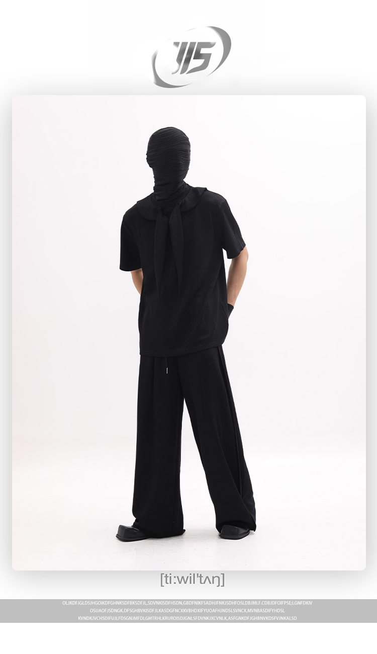Scarf Collar Design Oversize Short Sleeve T-Shirt & Wide Leg Sweatpants Setup WN18658