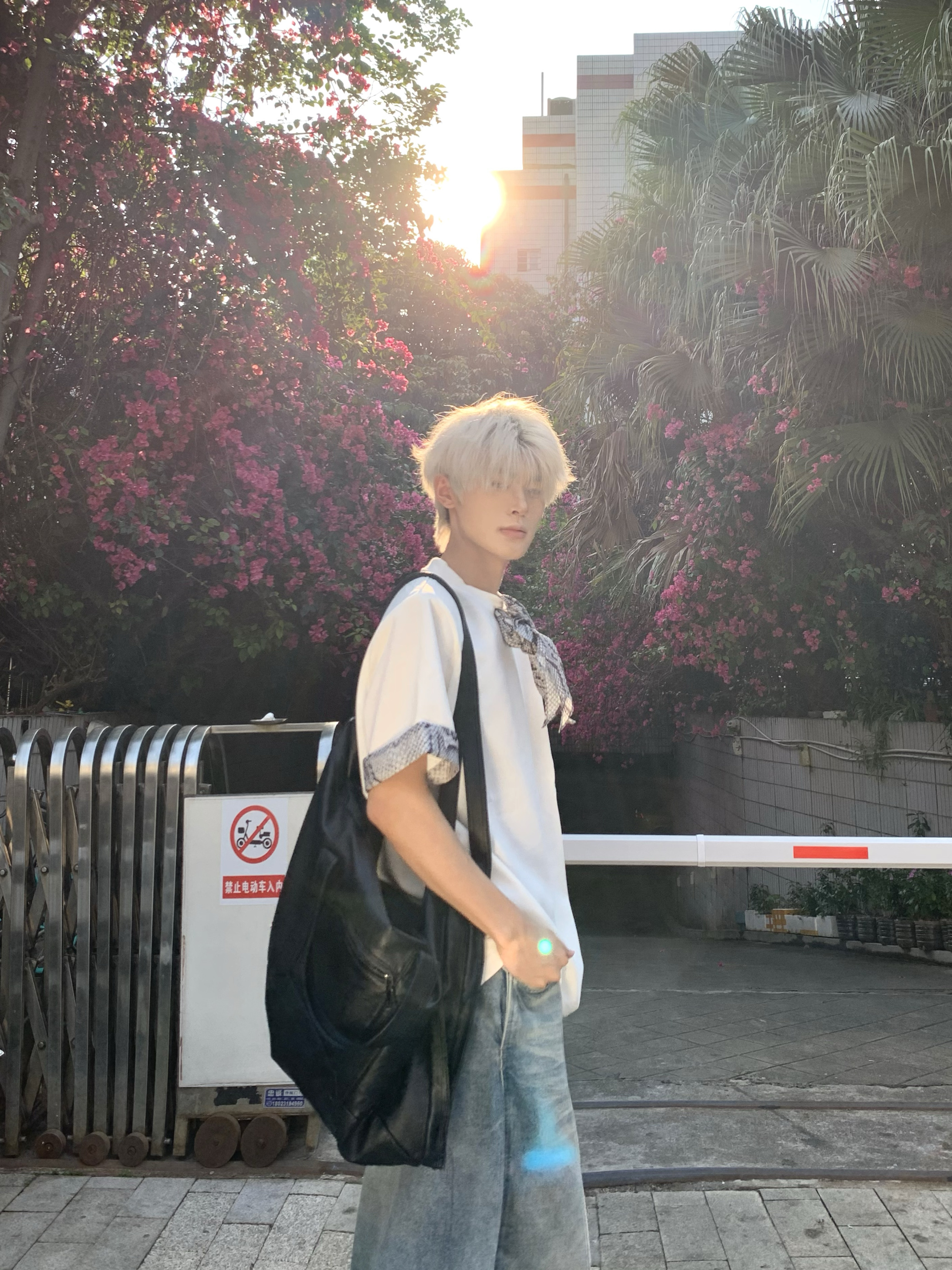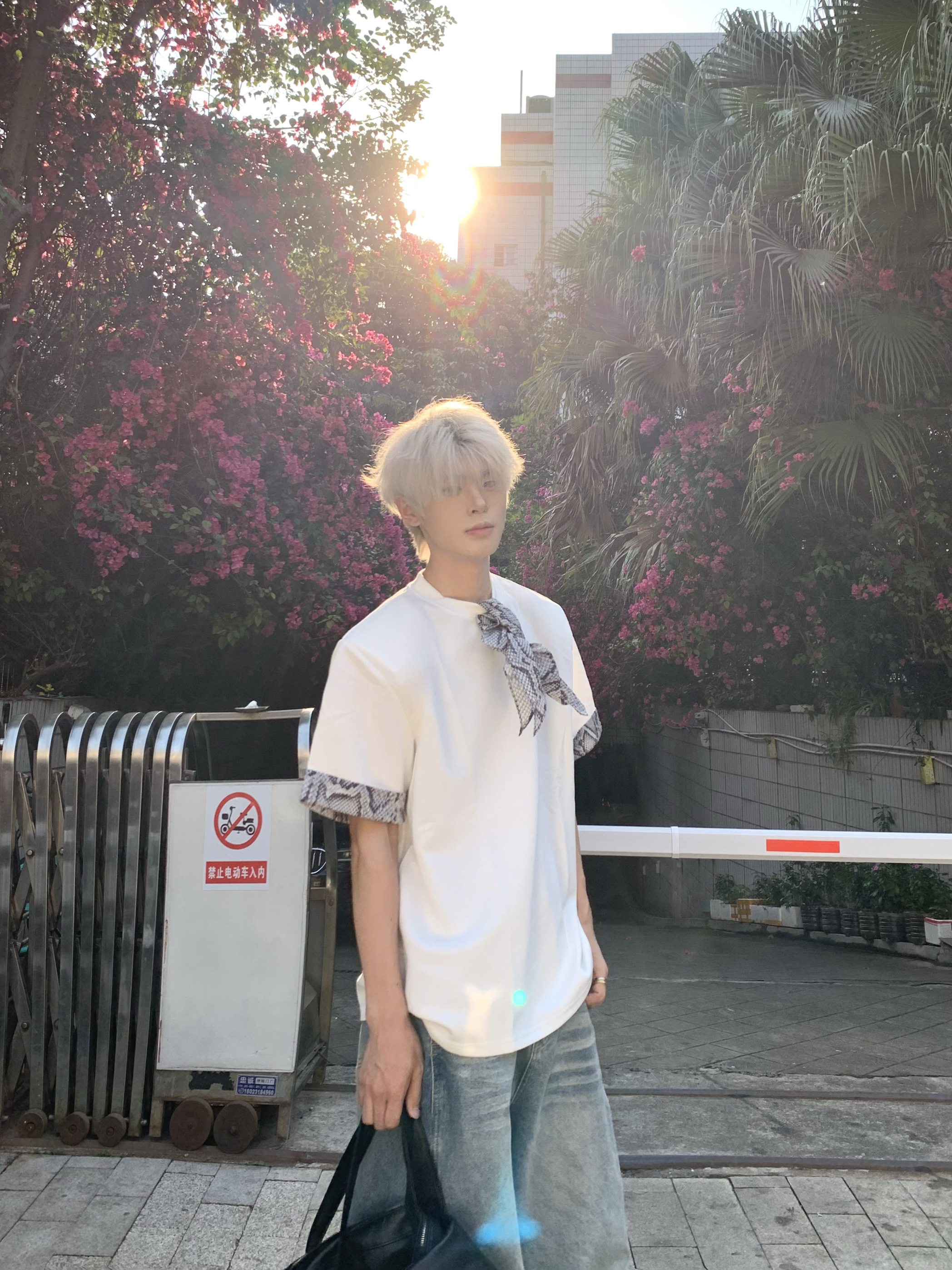 Snake Print Ribbon Contrast Short Sleeve T-Shirt WN19724