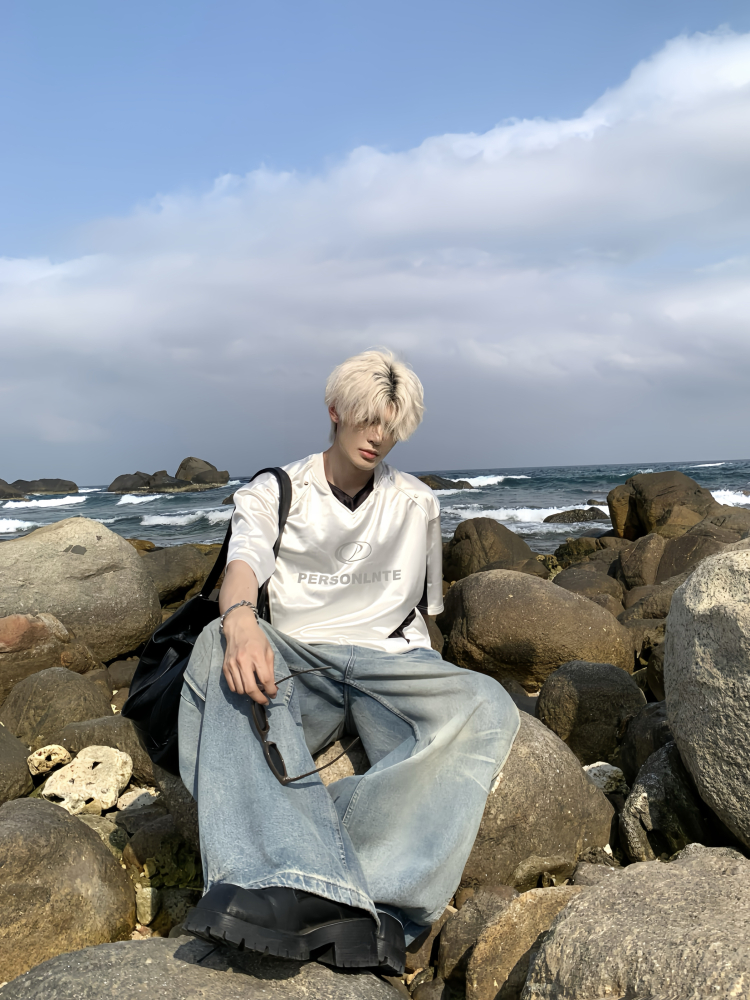 Shiny Satin Mesh Breathable Short Sleeve T-Shirt WN19782