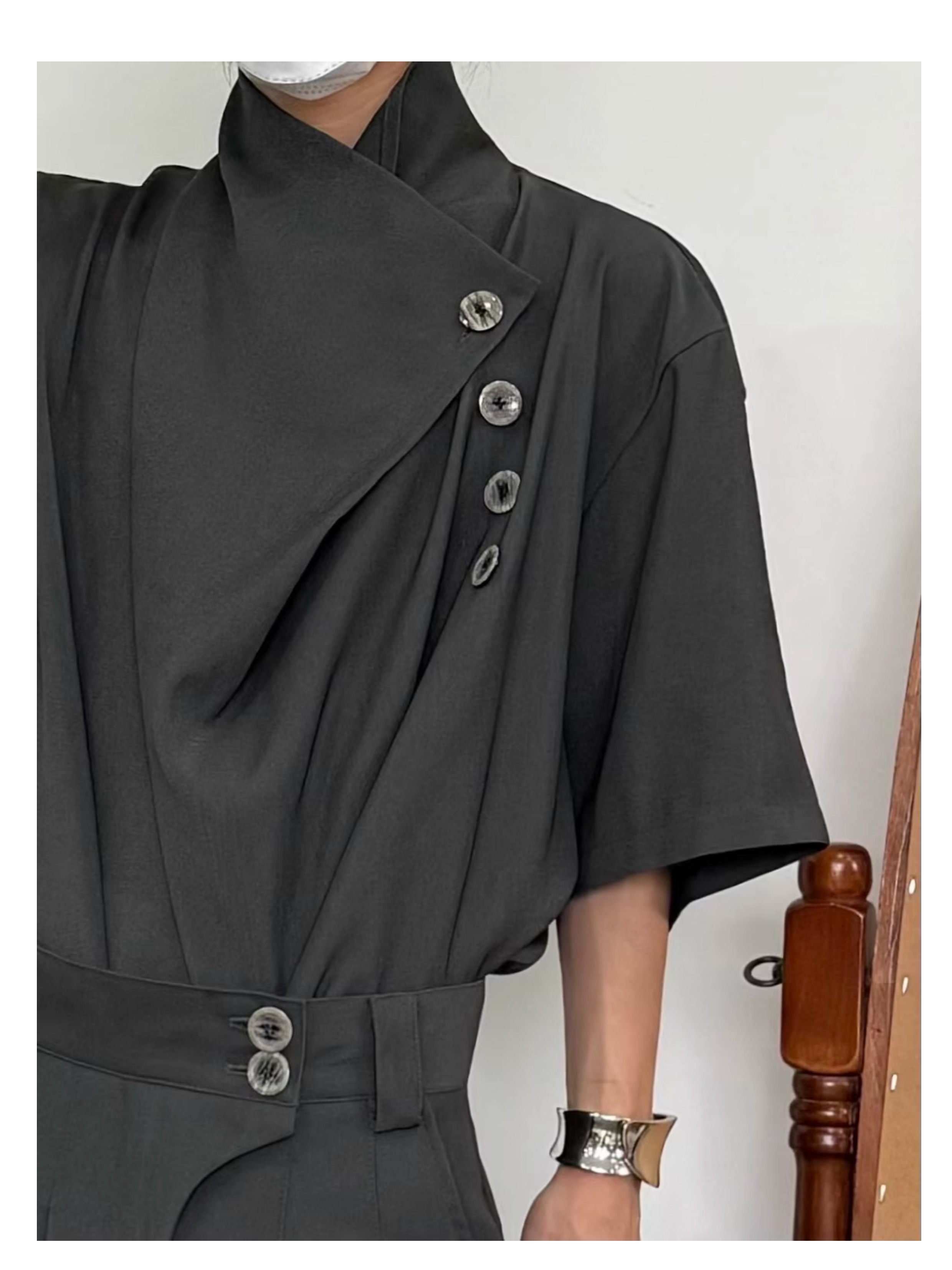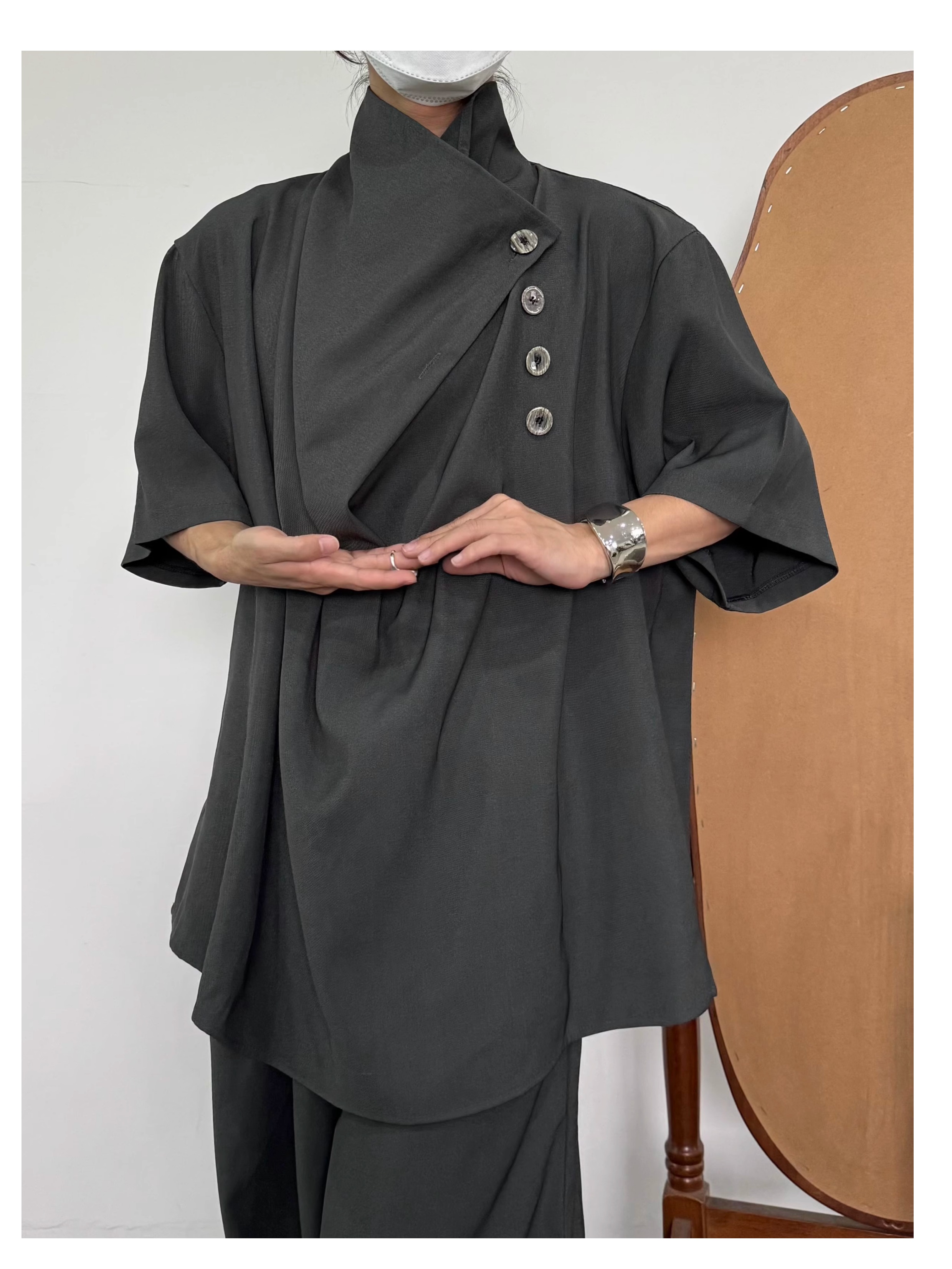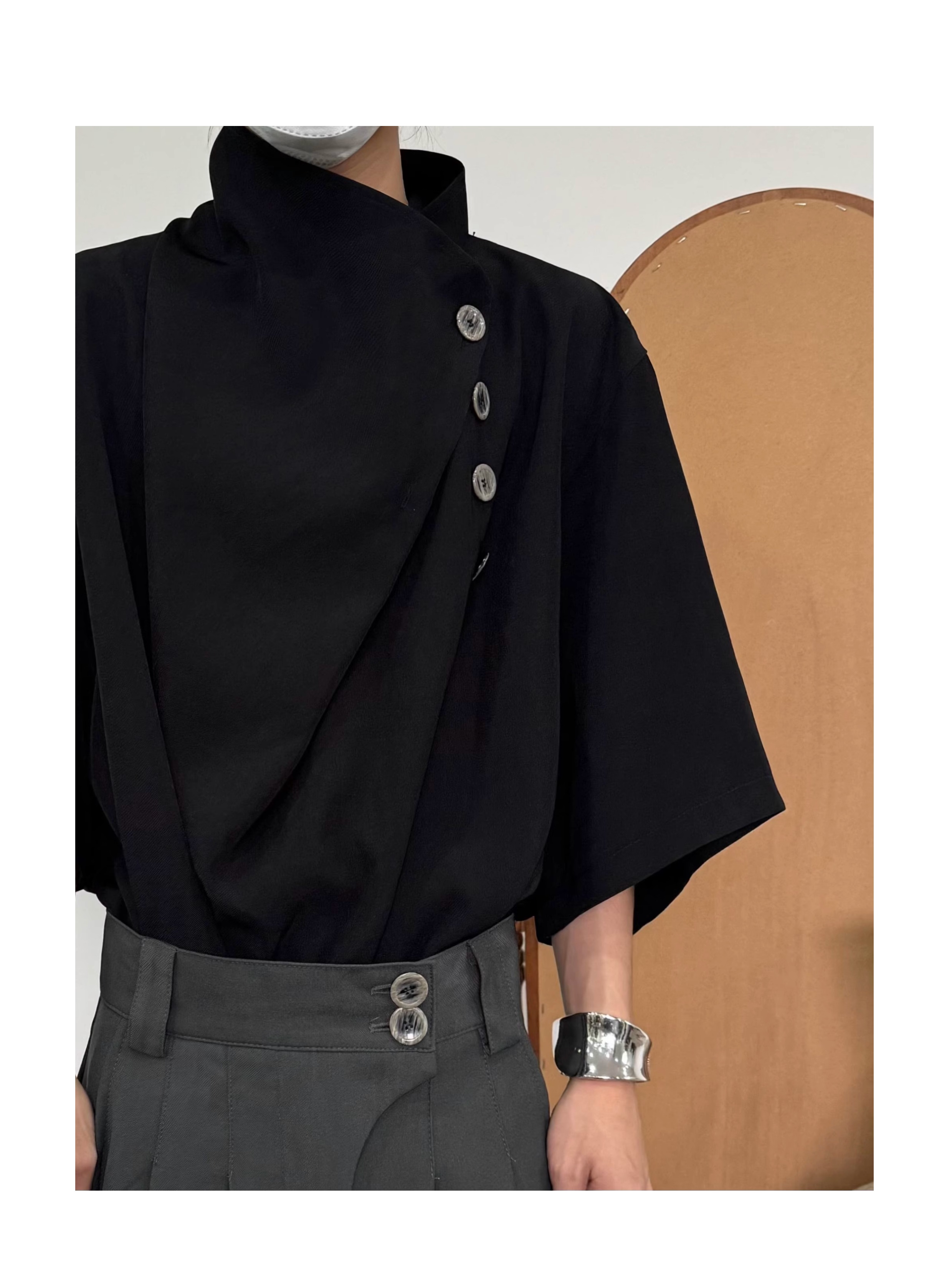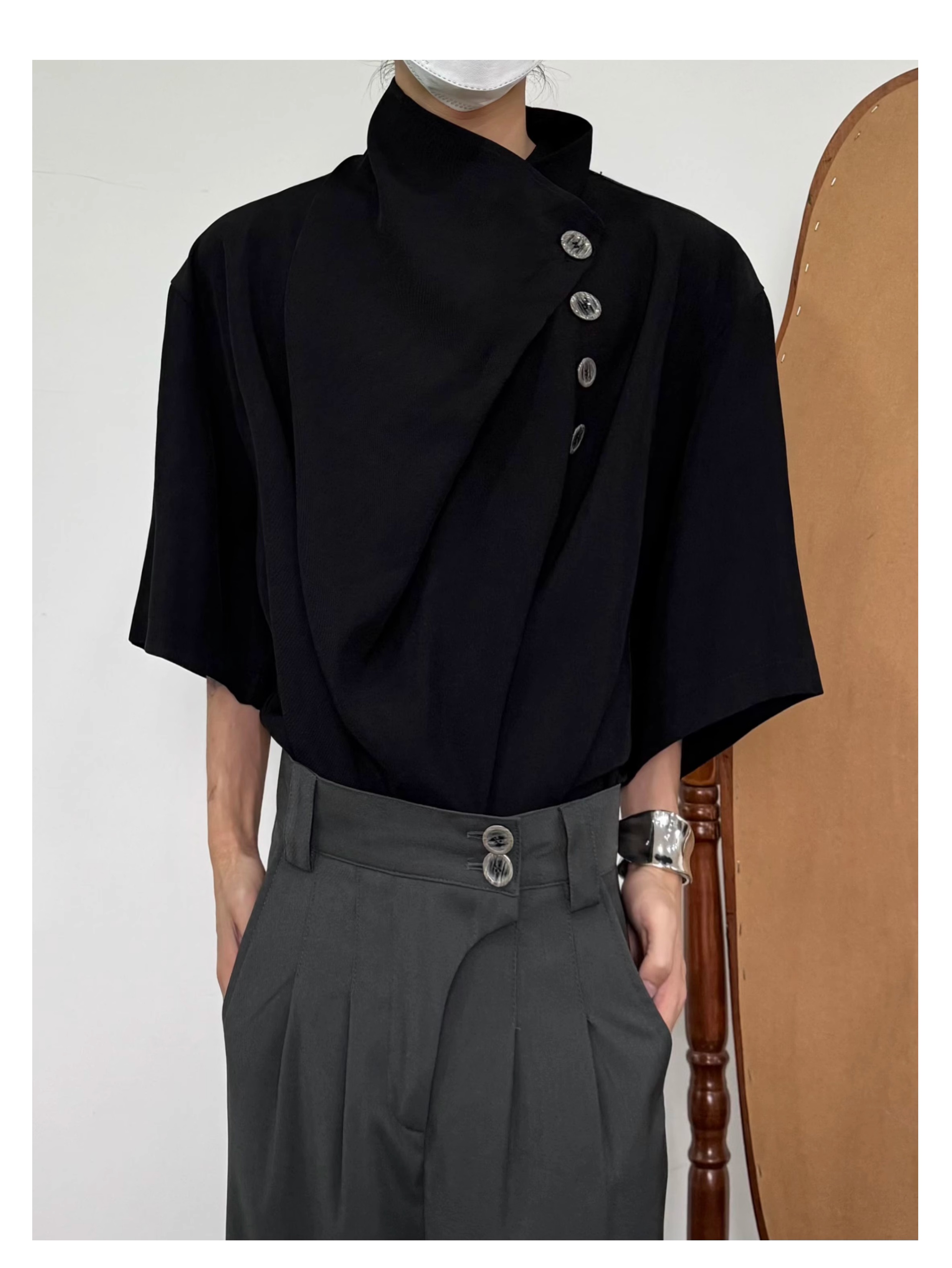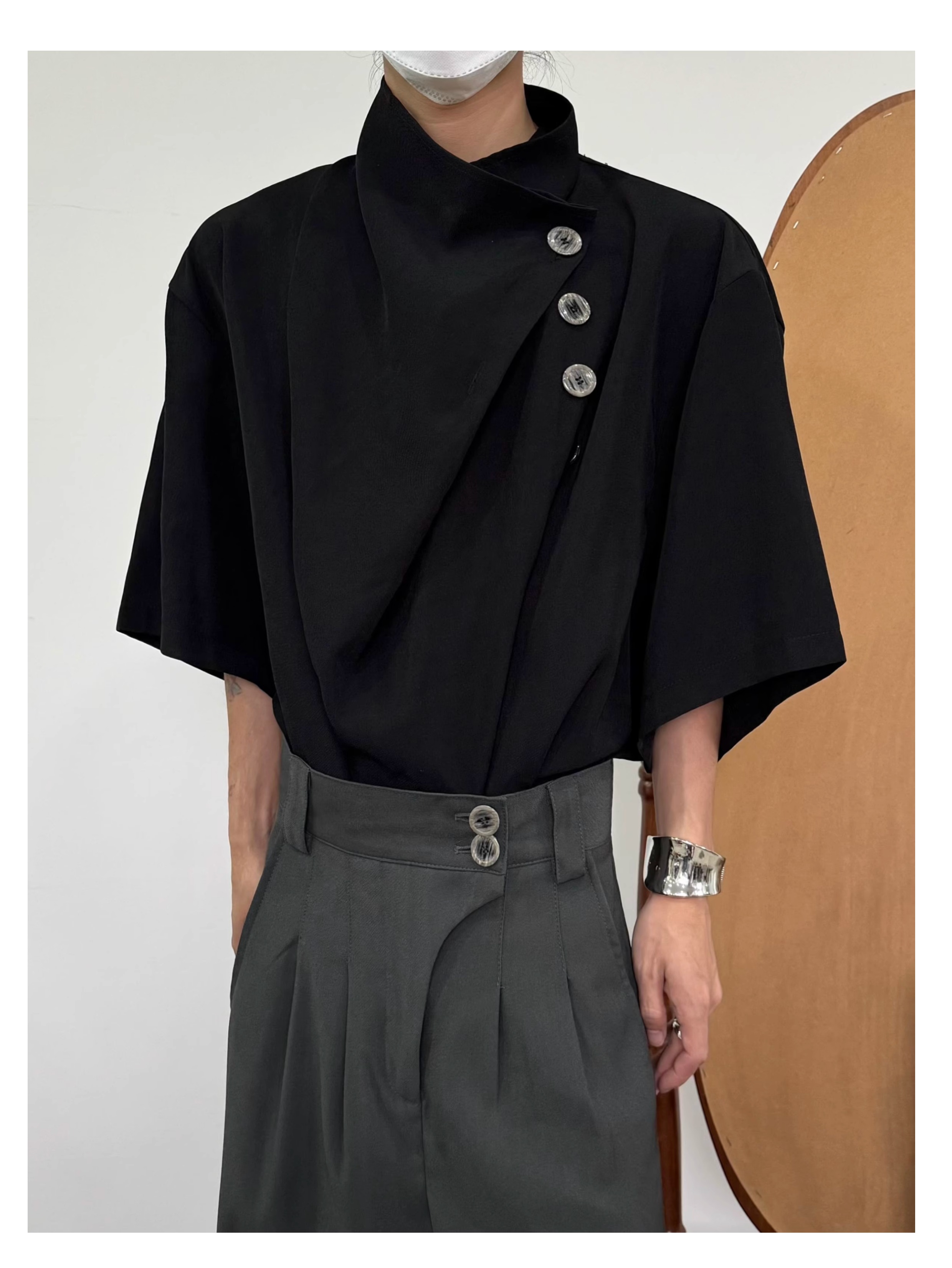 Asymmetry Button Design Short Sleeve Shirt WN19952