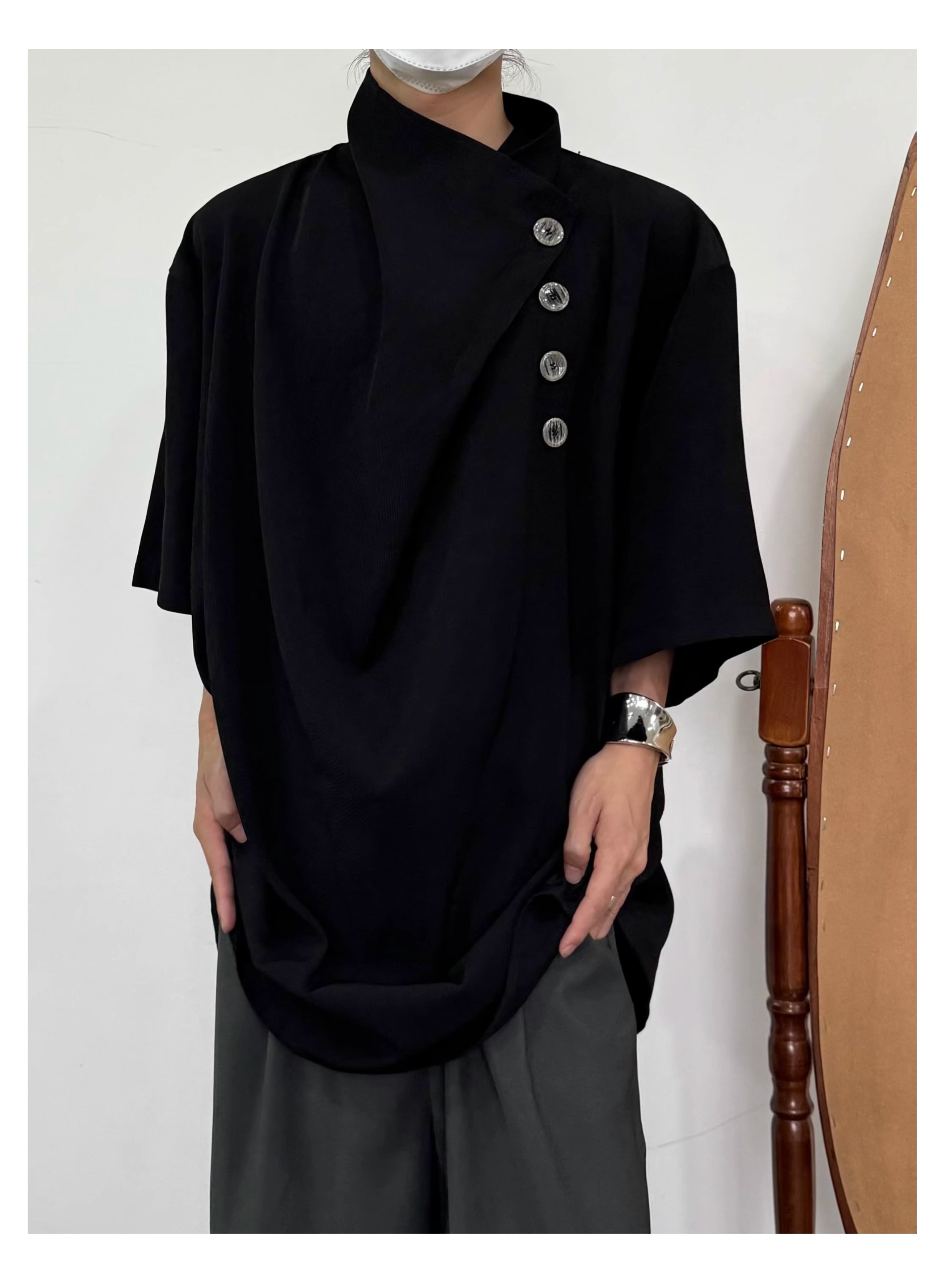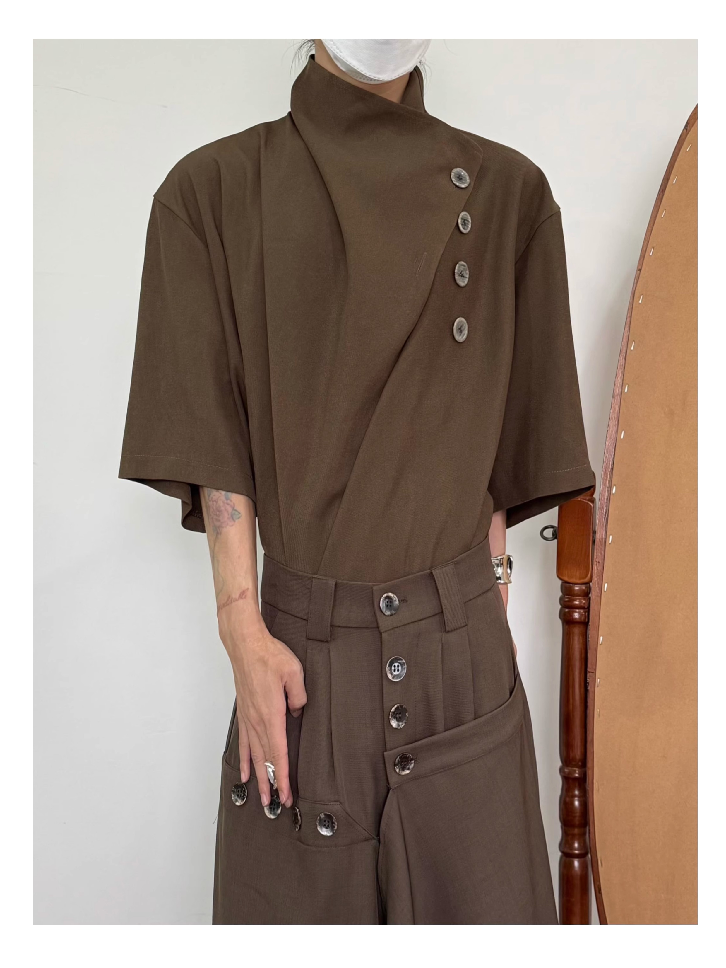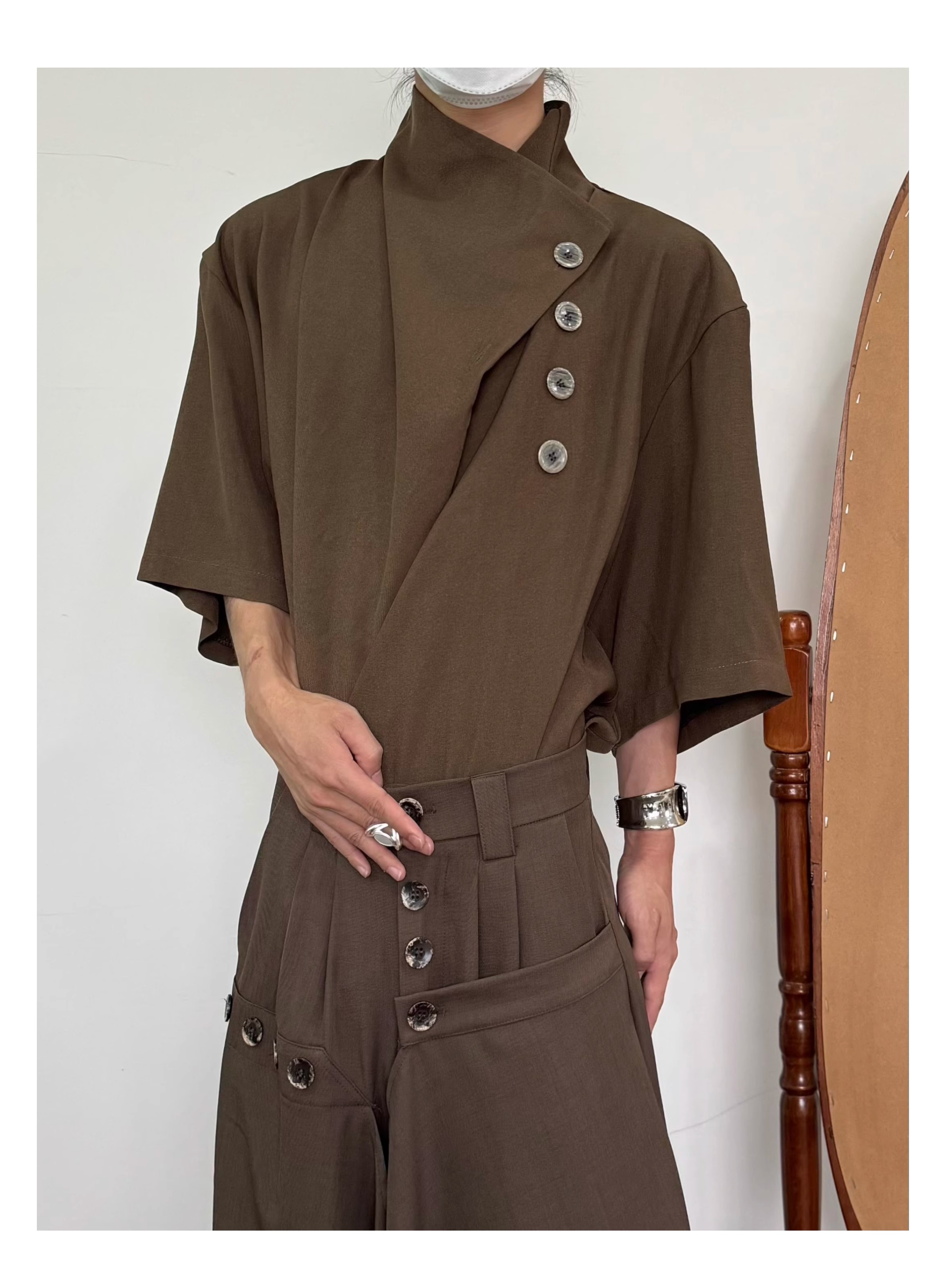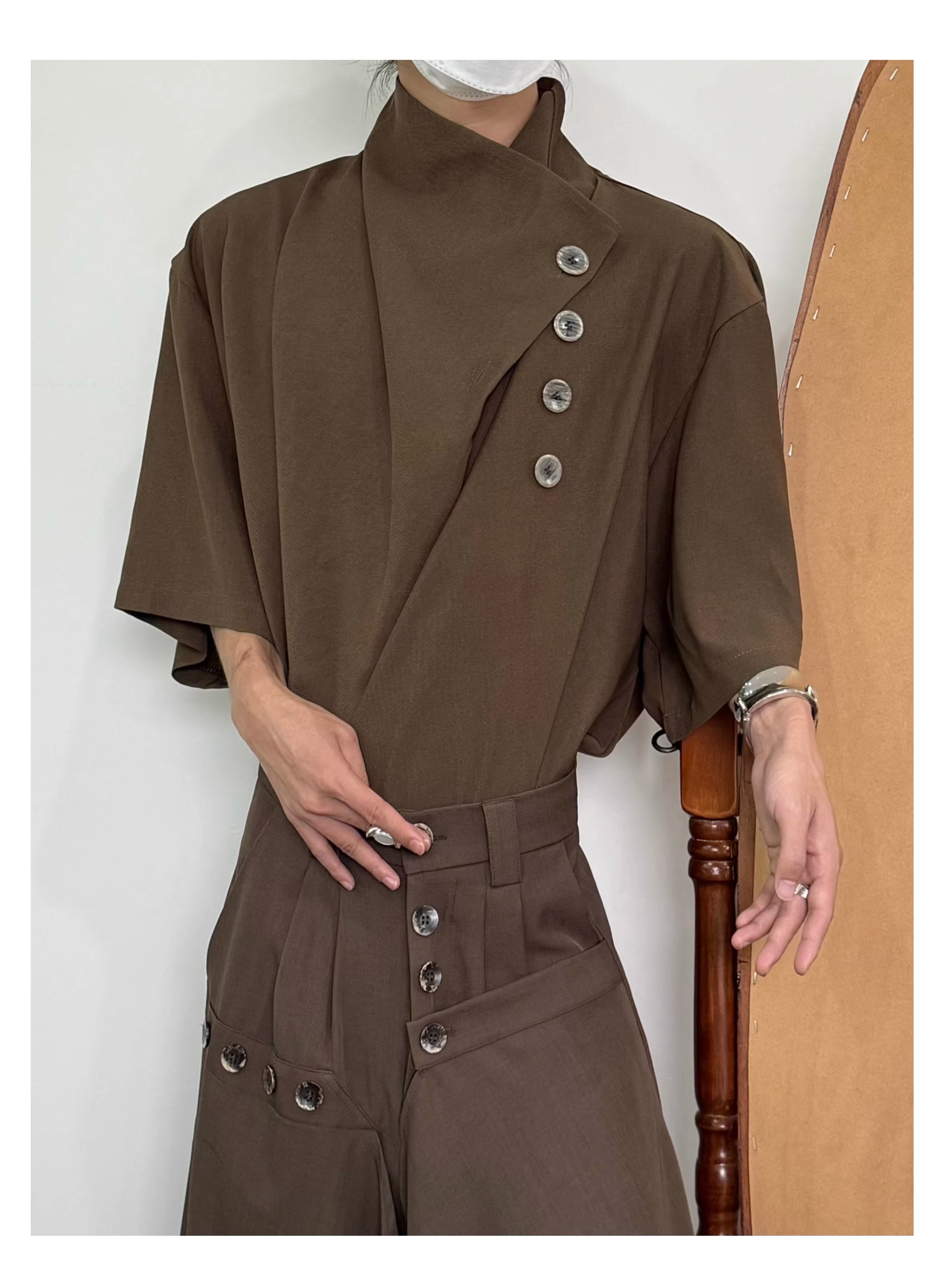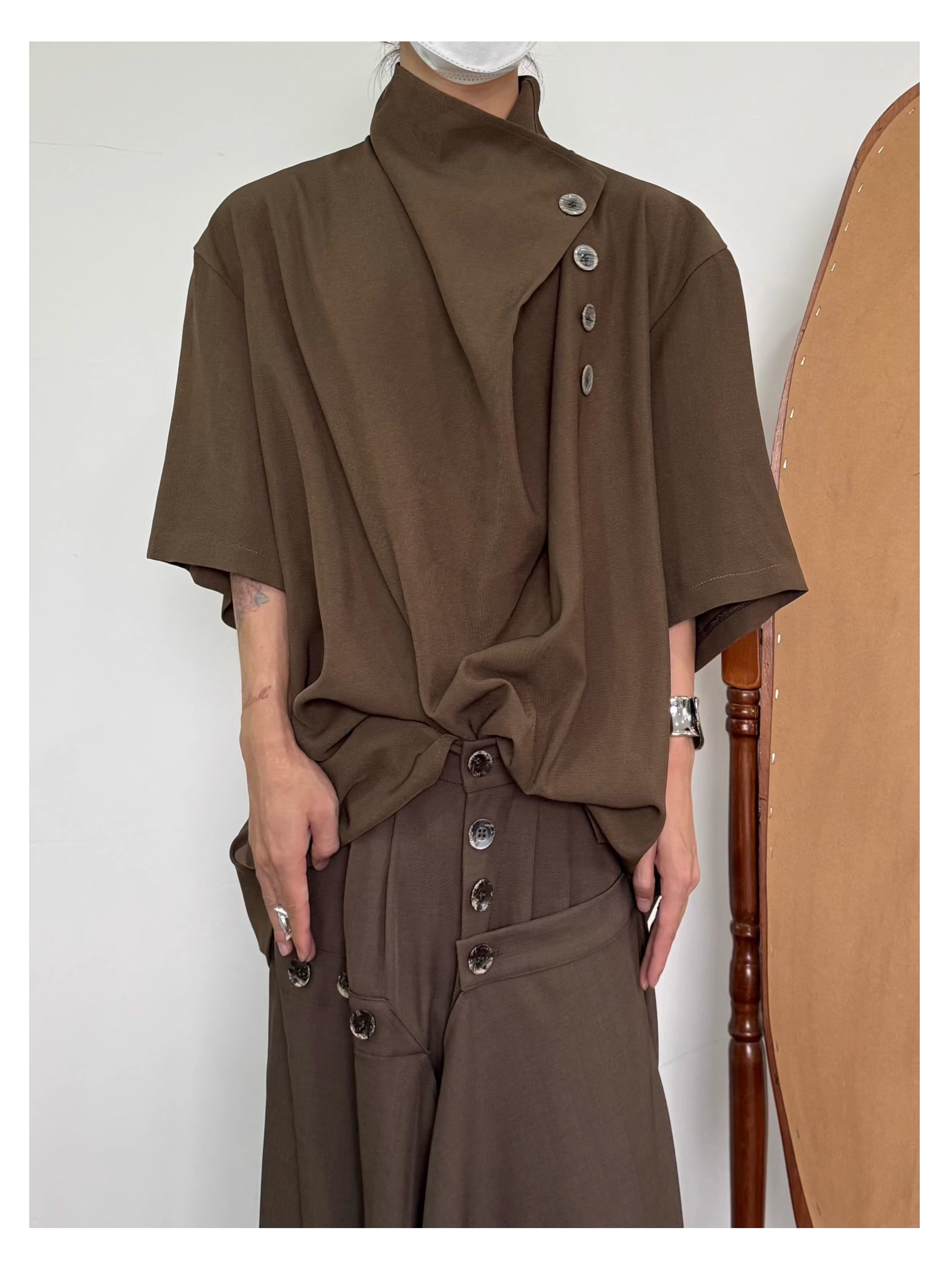 Asymmetry Button Design Short Sleeve Shirt WN19952