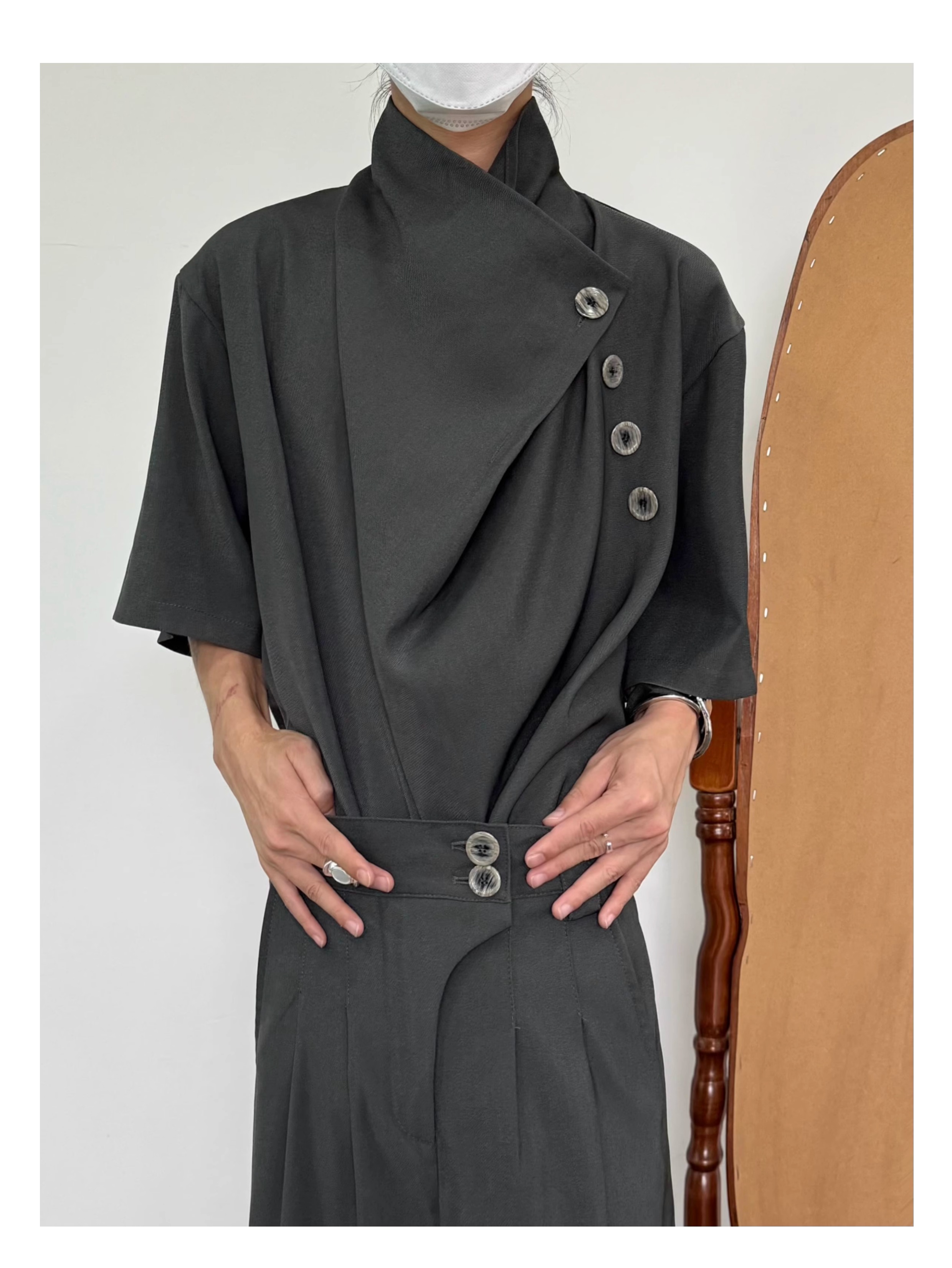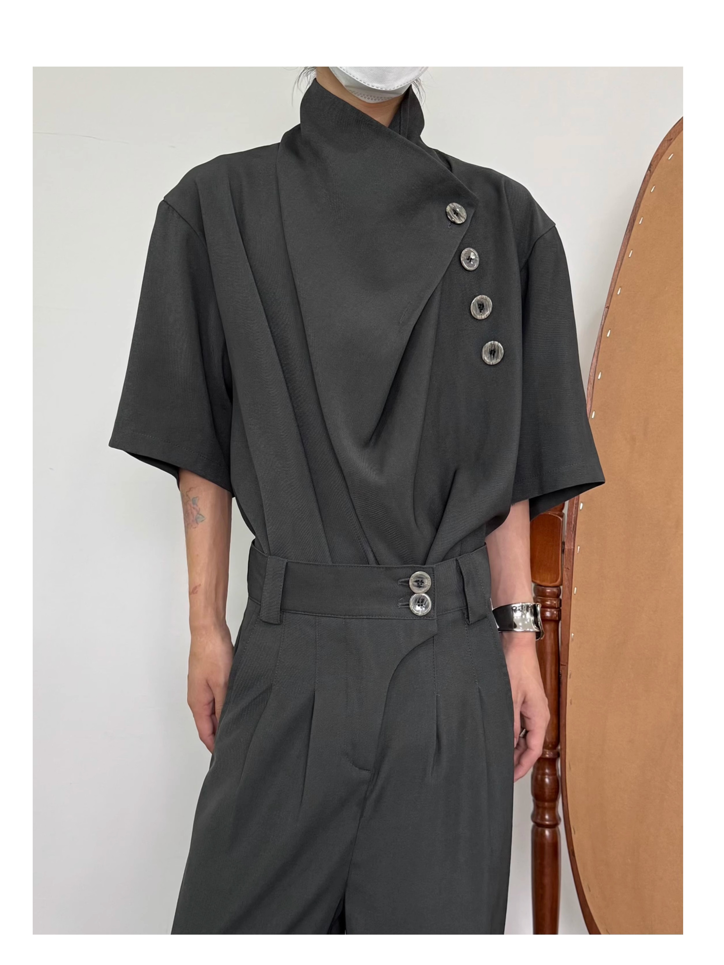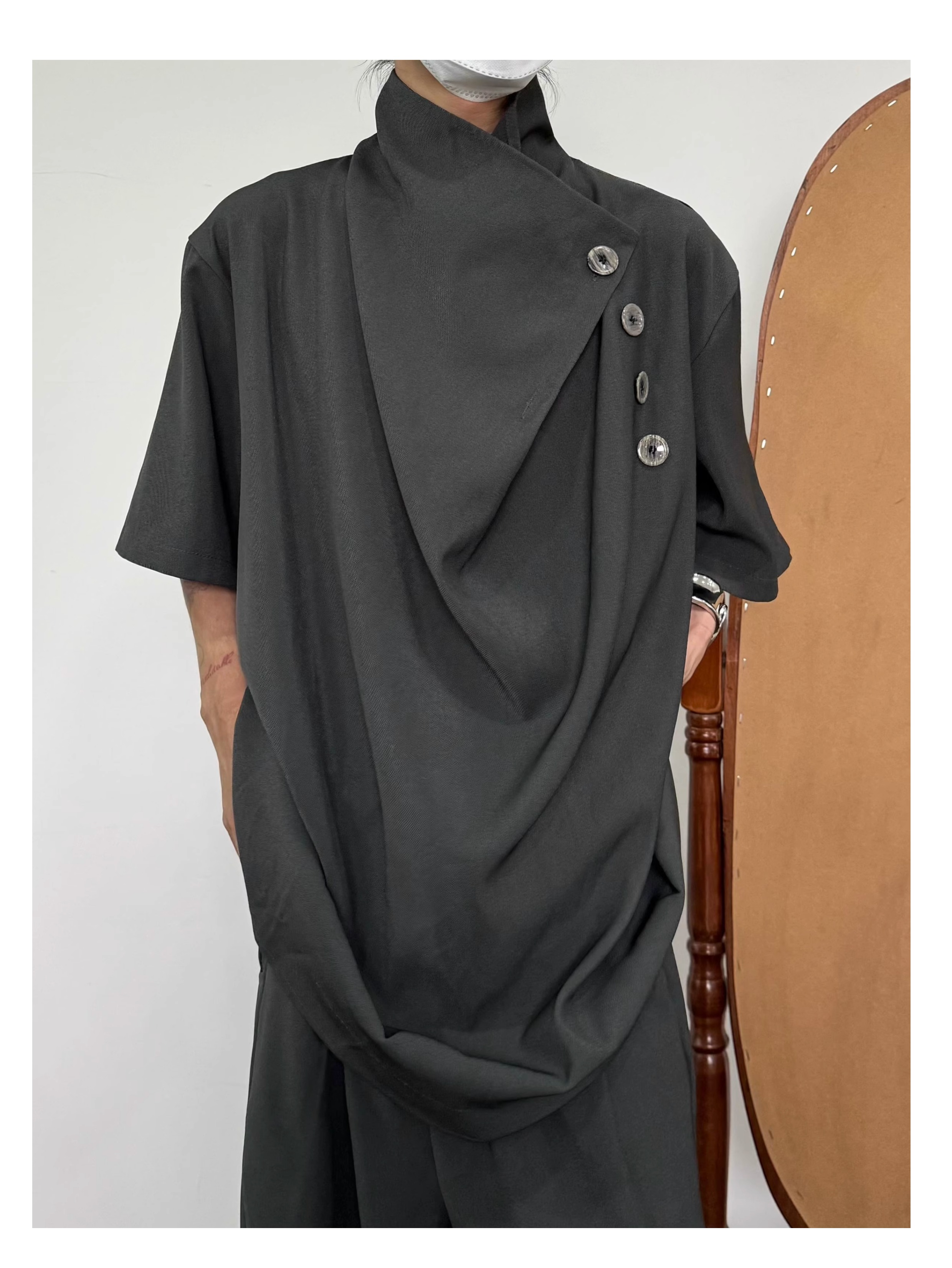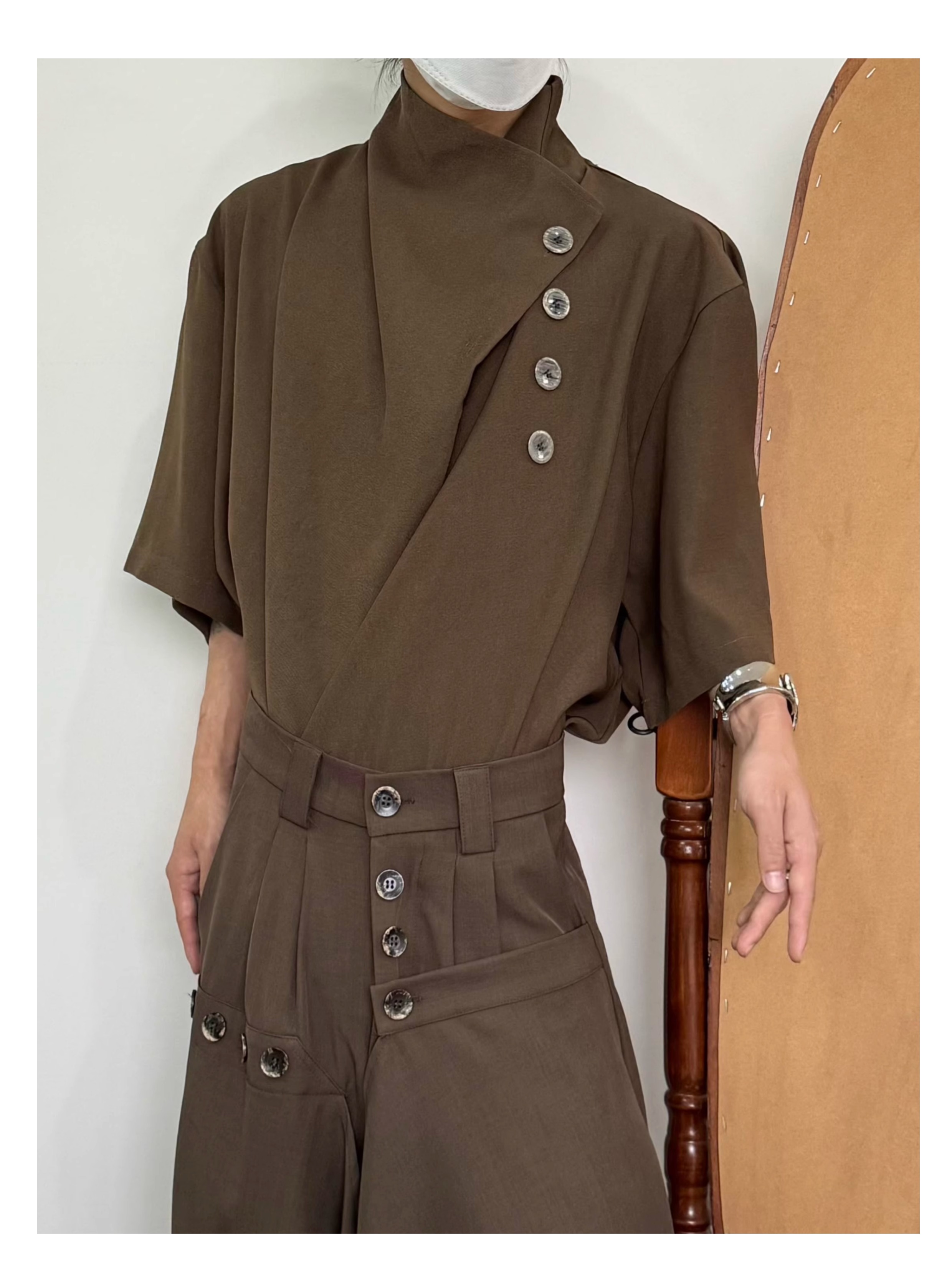 Asymmetry Button Design Short Sleeve Shirt WN19952