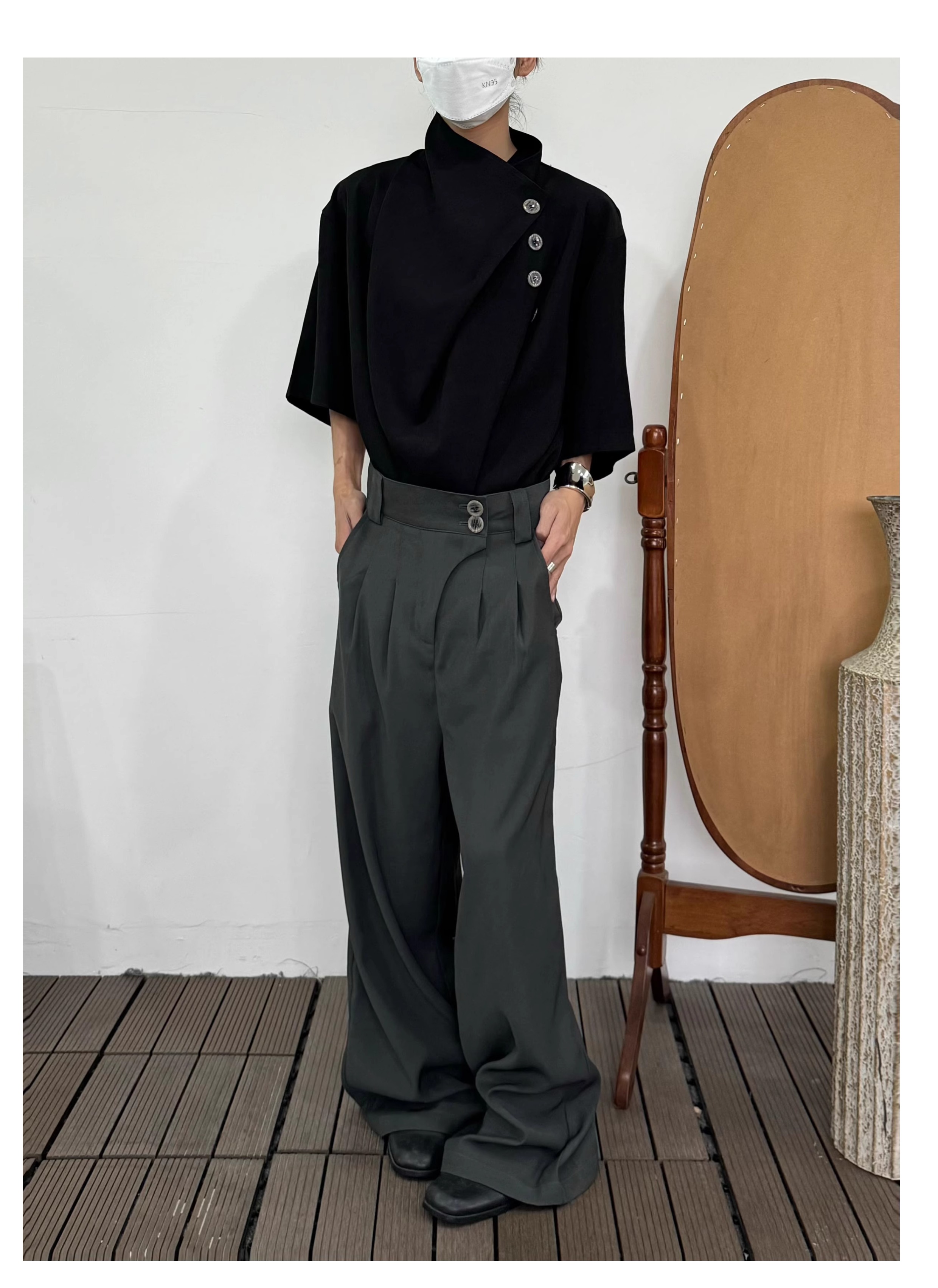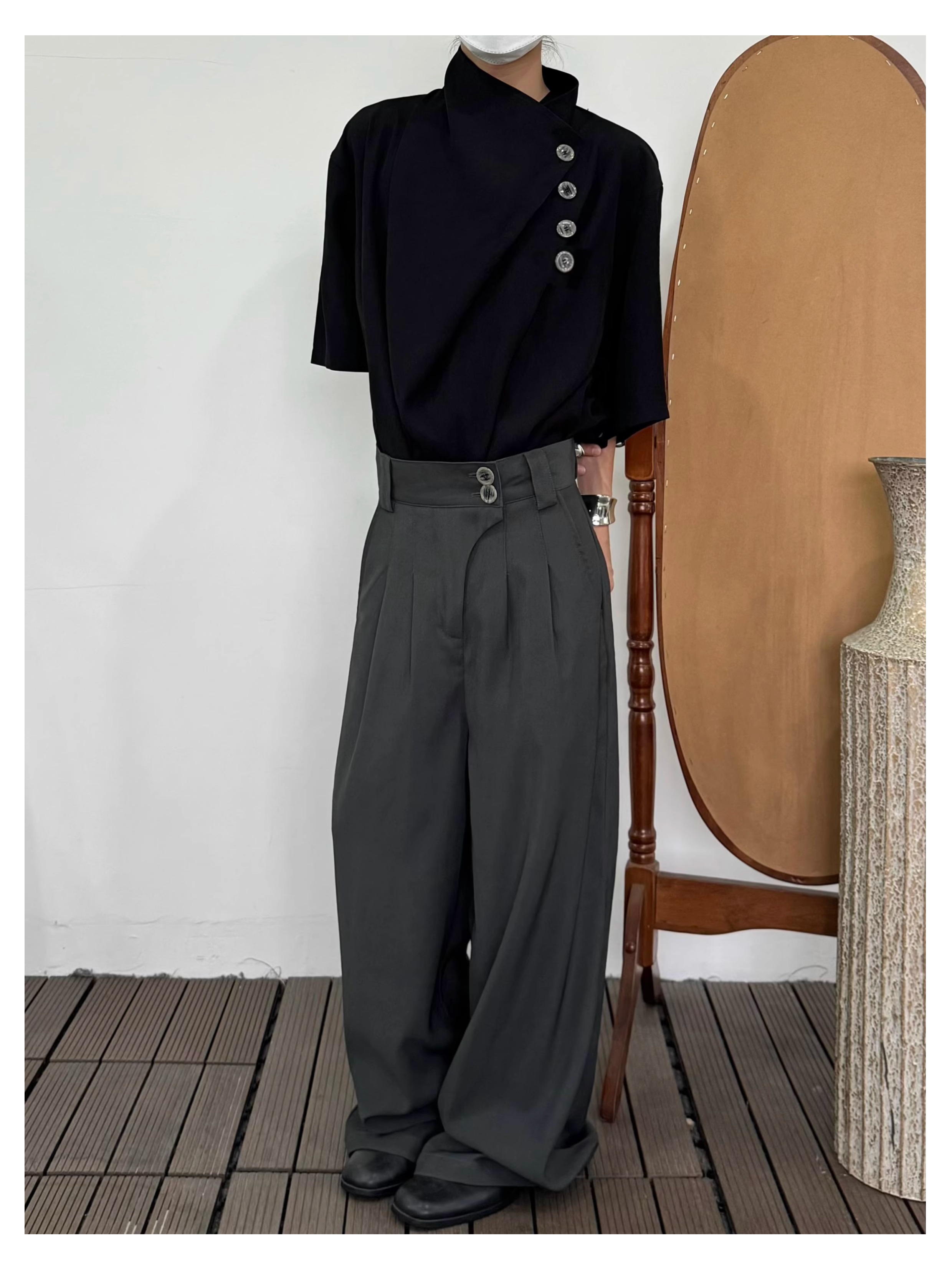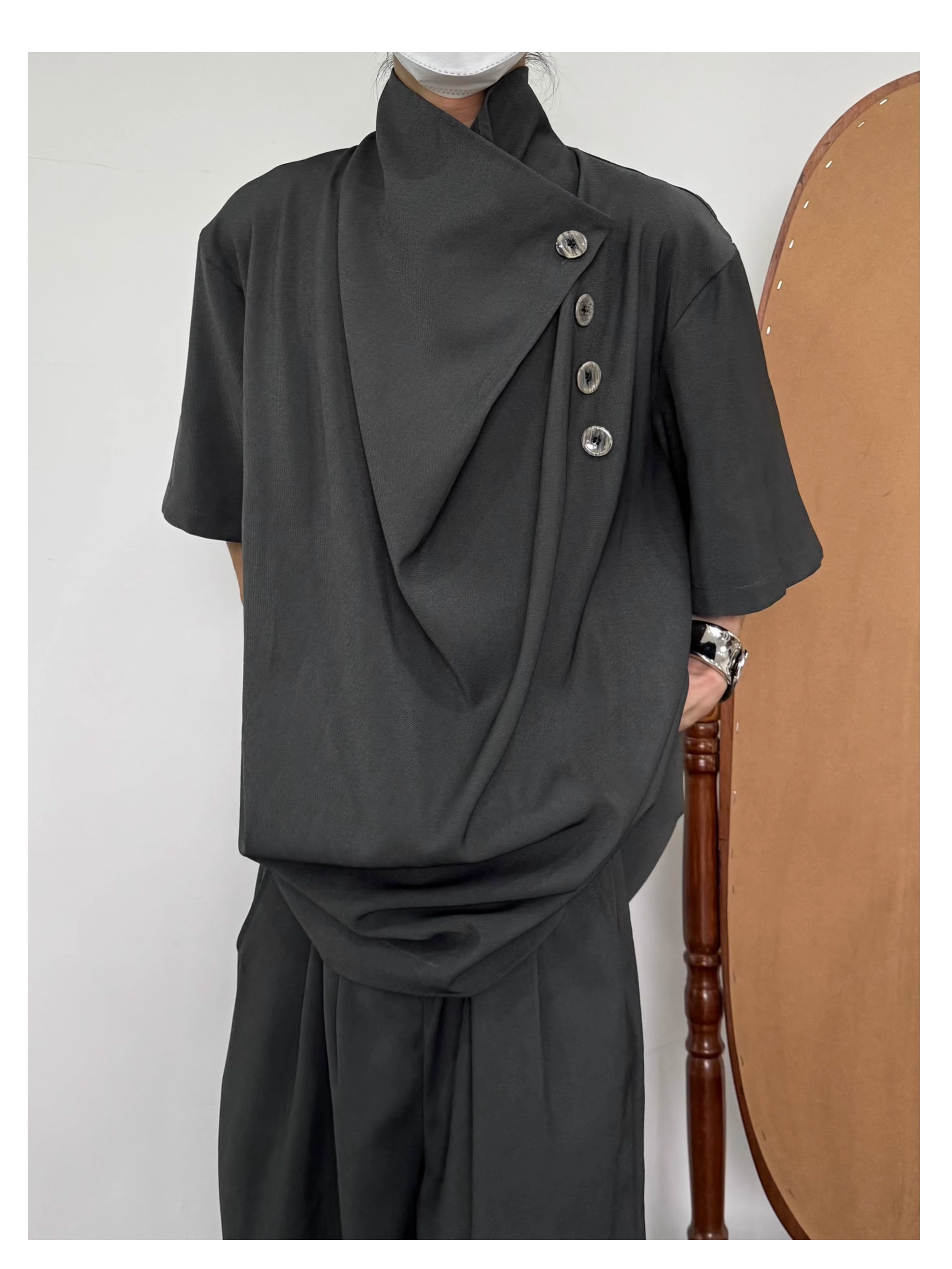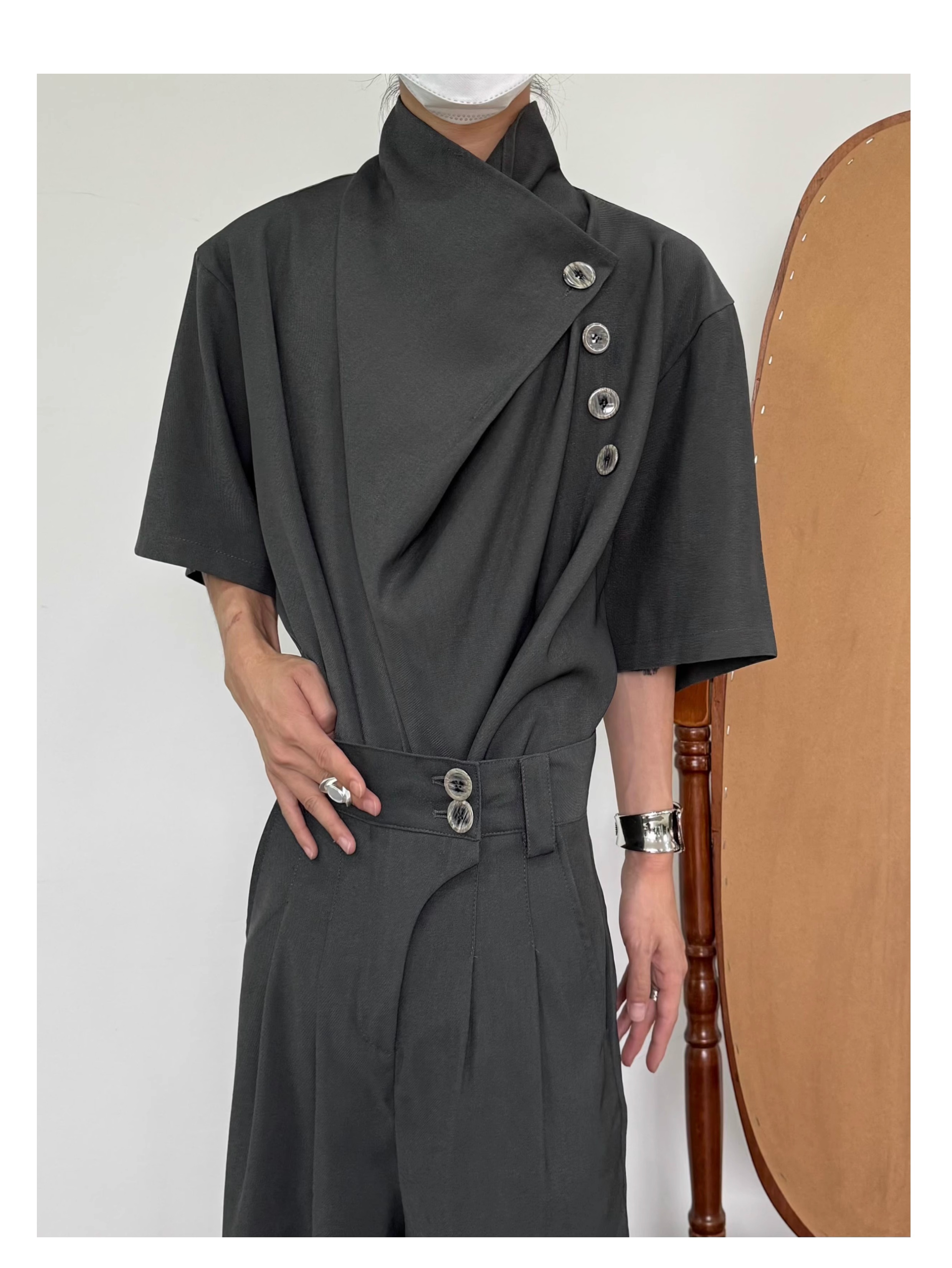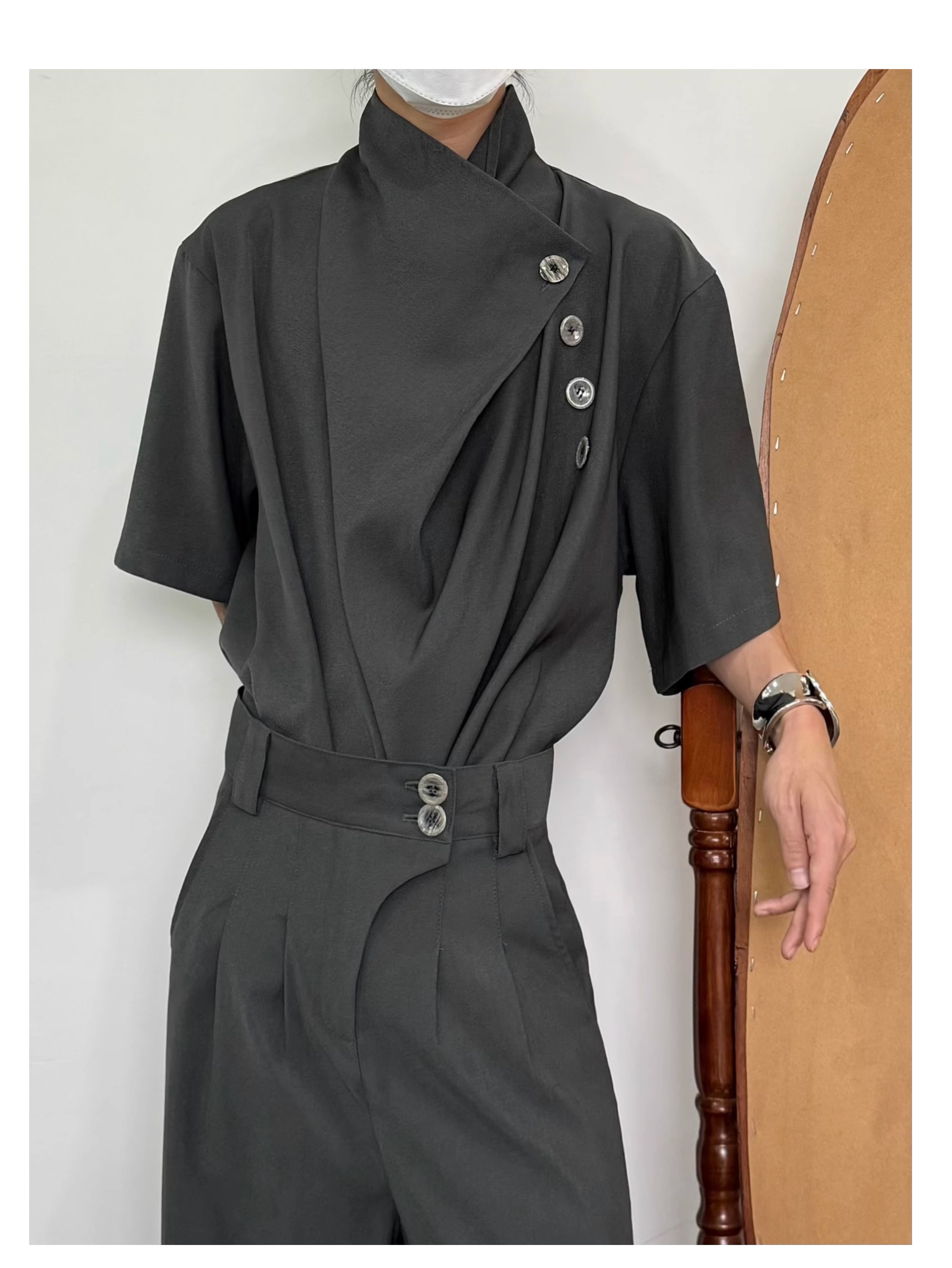 Asymmetry Button Design Short Sleeve Shirt WN19952