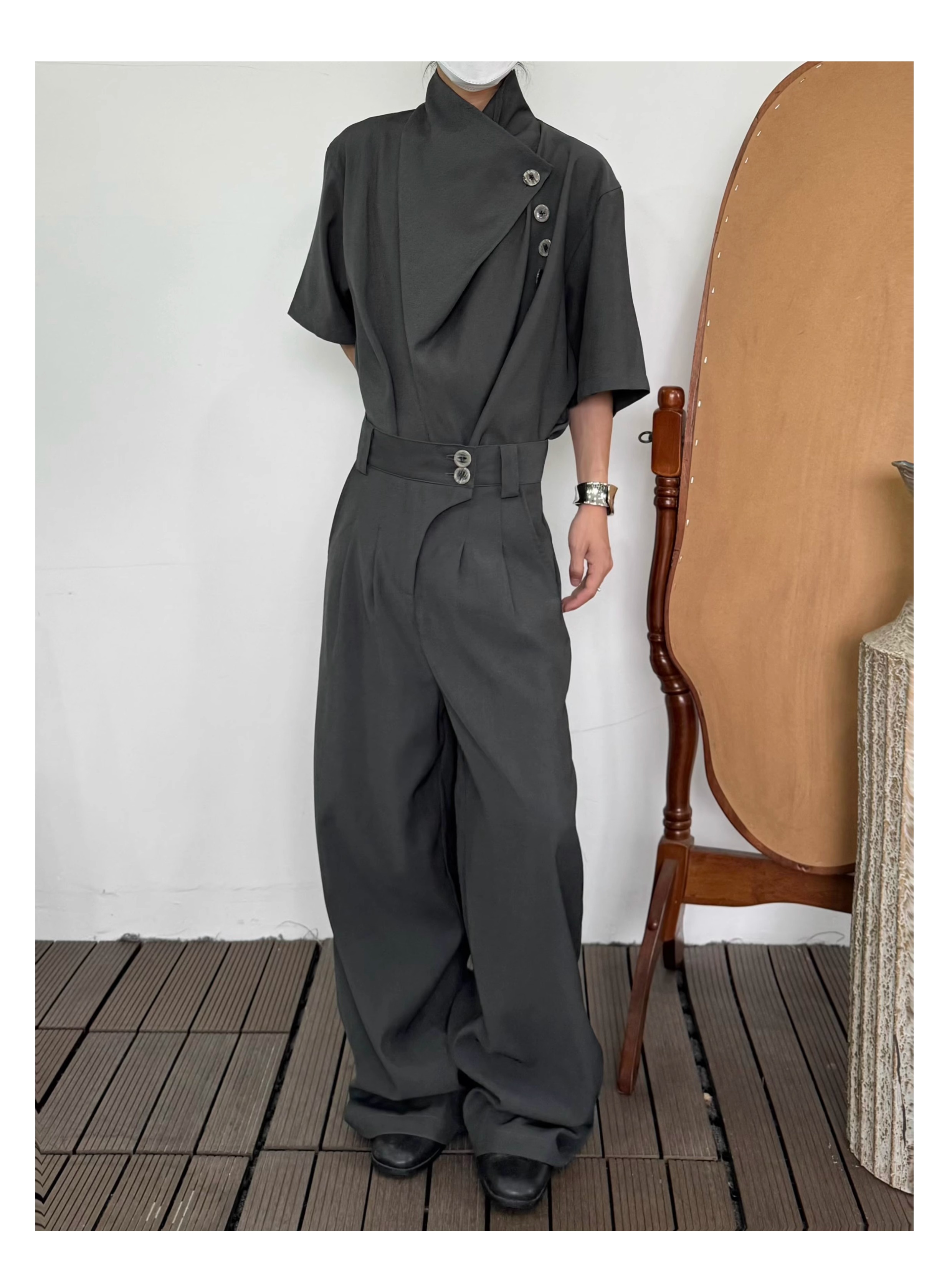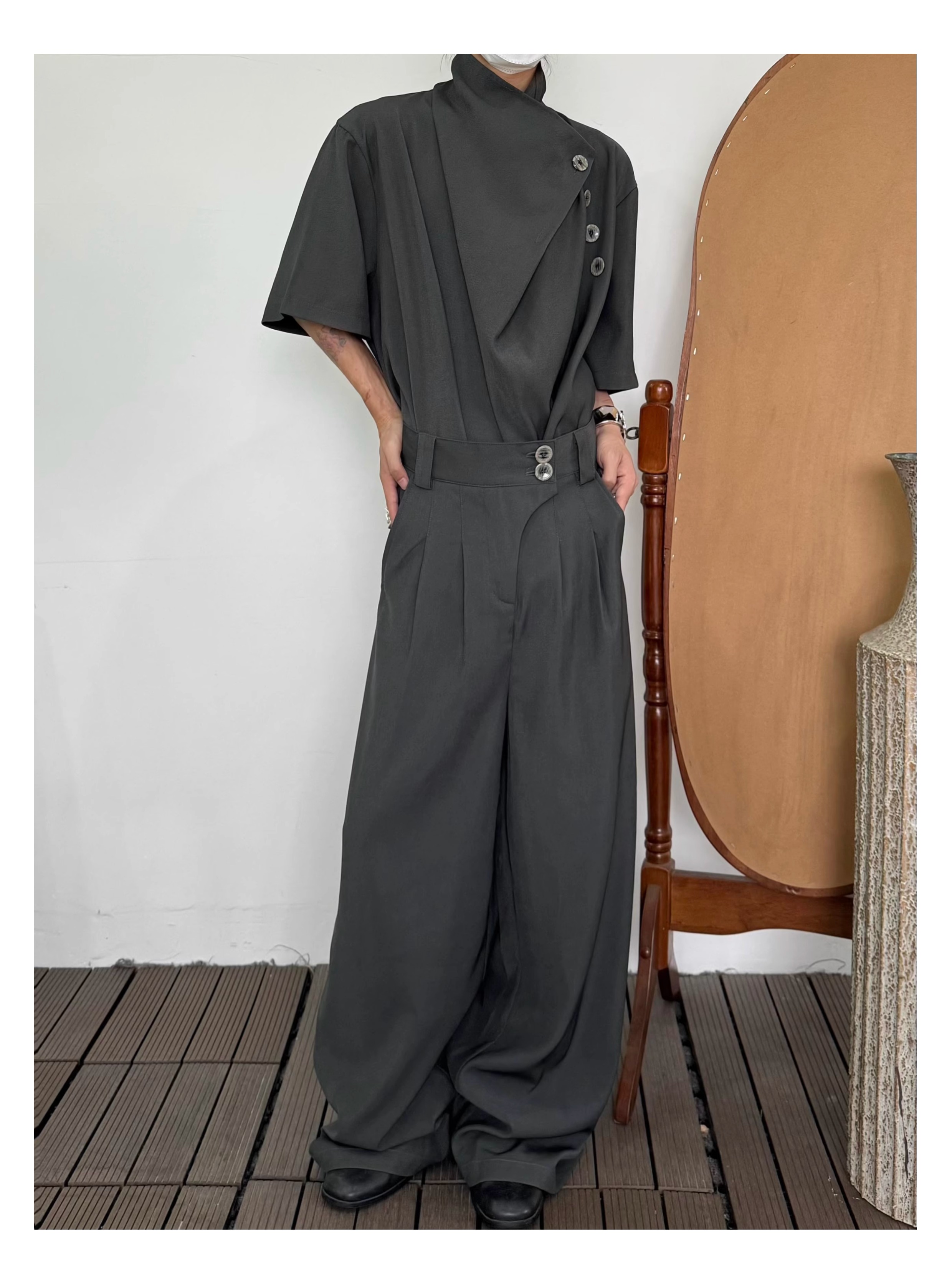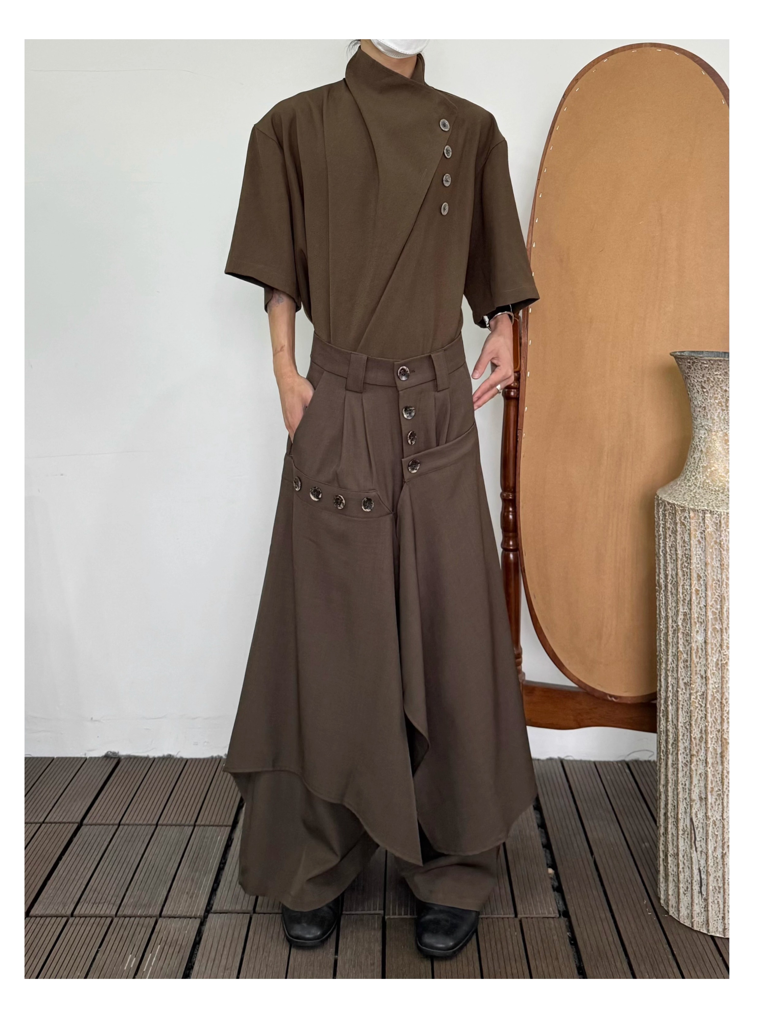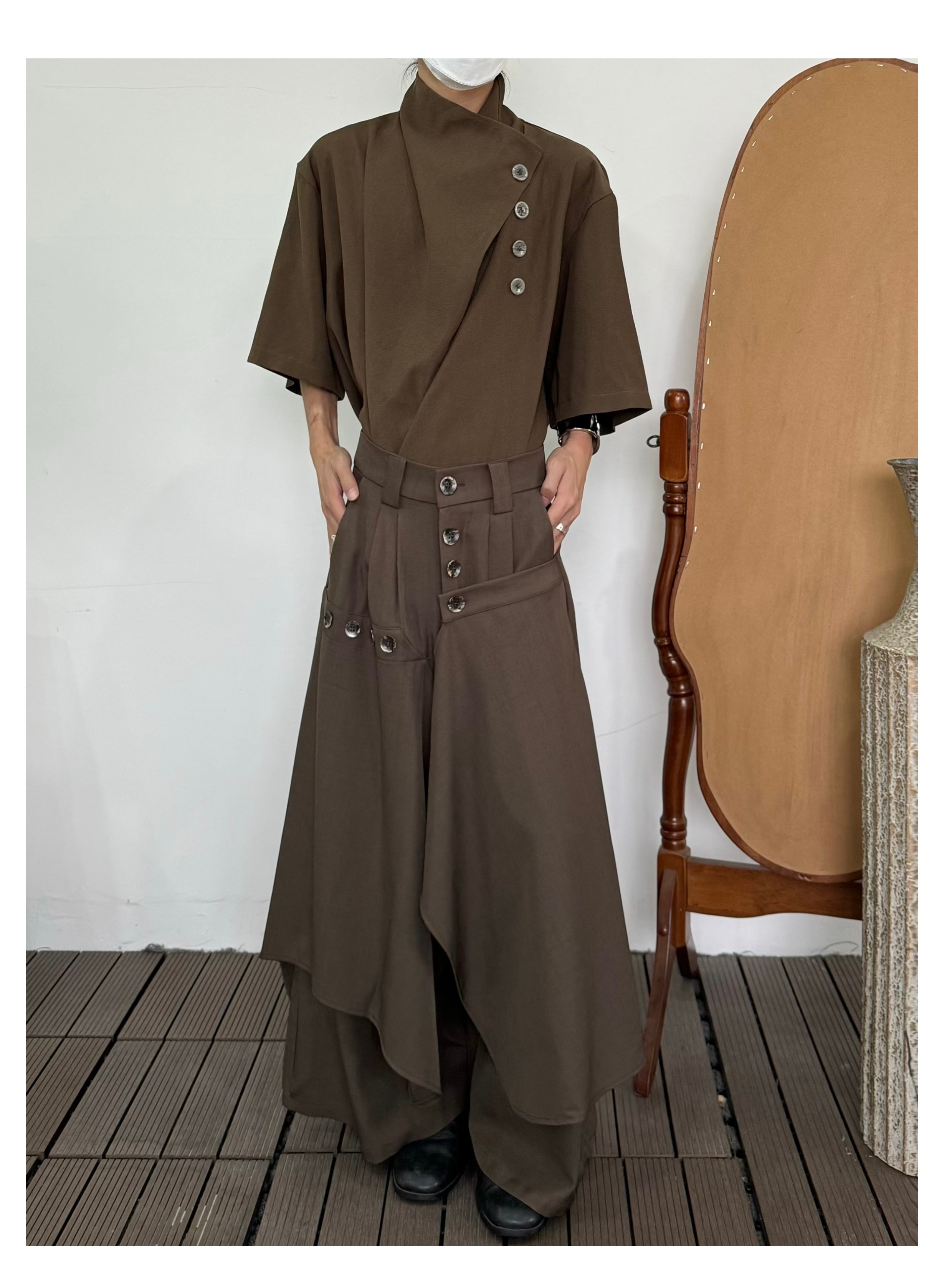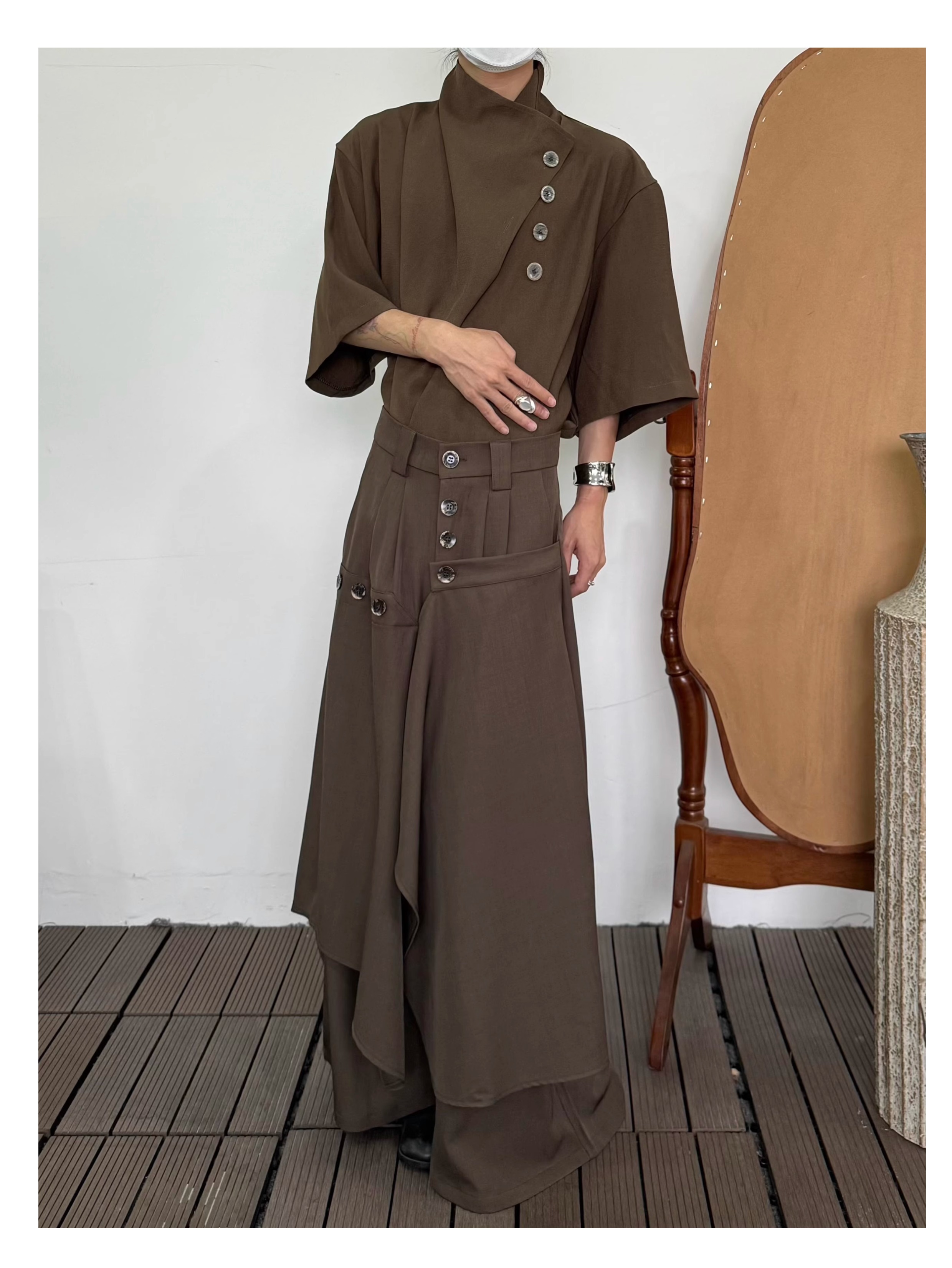 Asymmetry Button Design Short Sleeve Shirt WN19952