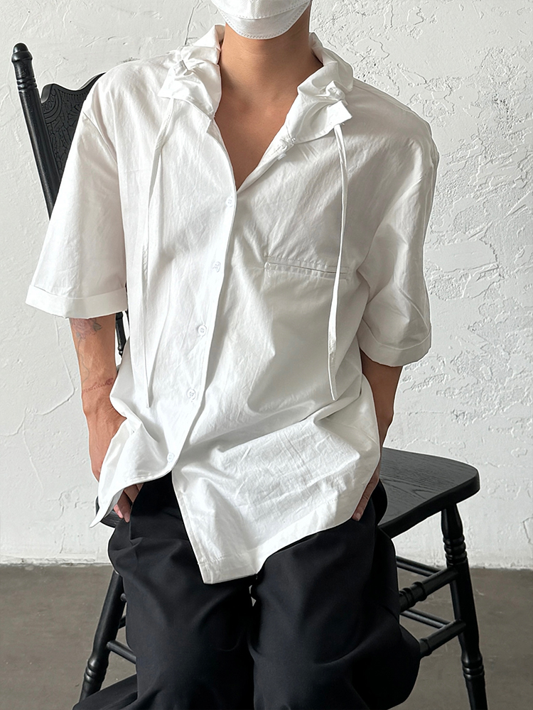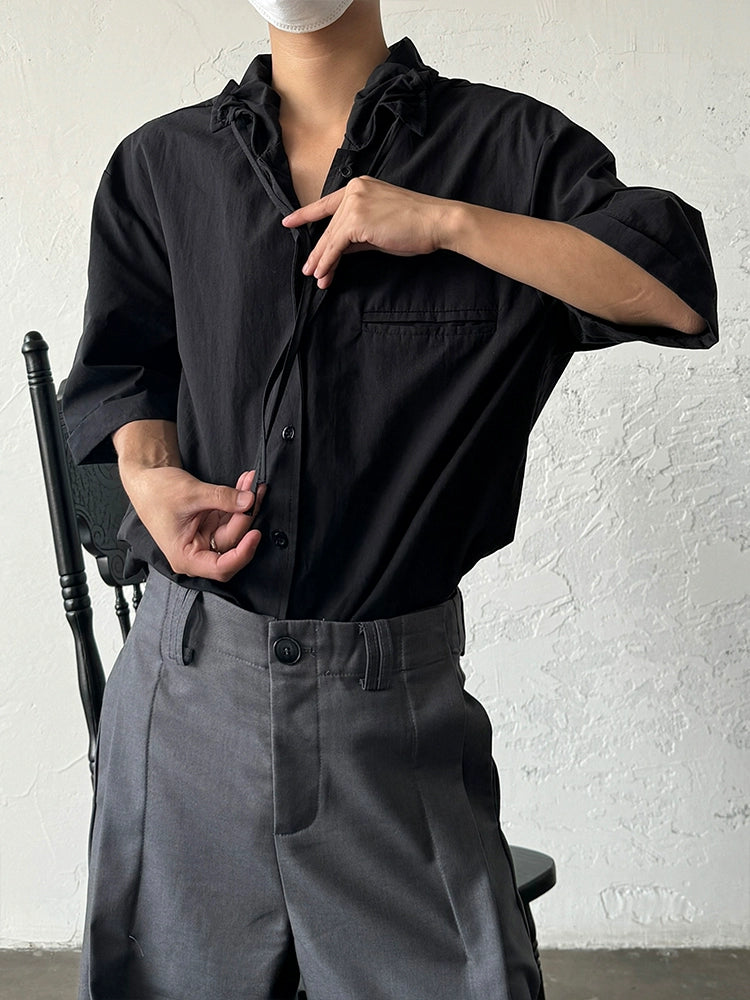 French Design Style Ribbon Oversize Short Sleeve Shirt WN20002