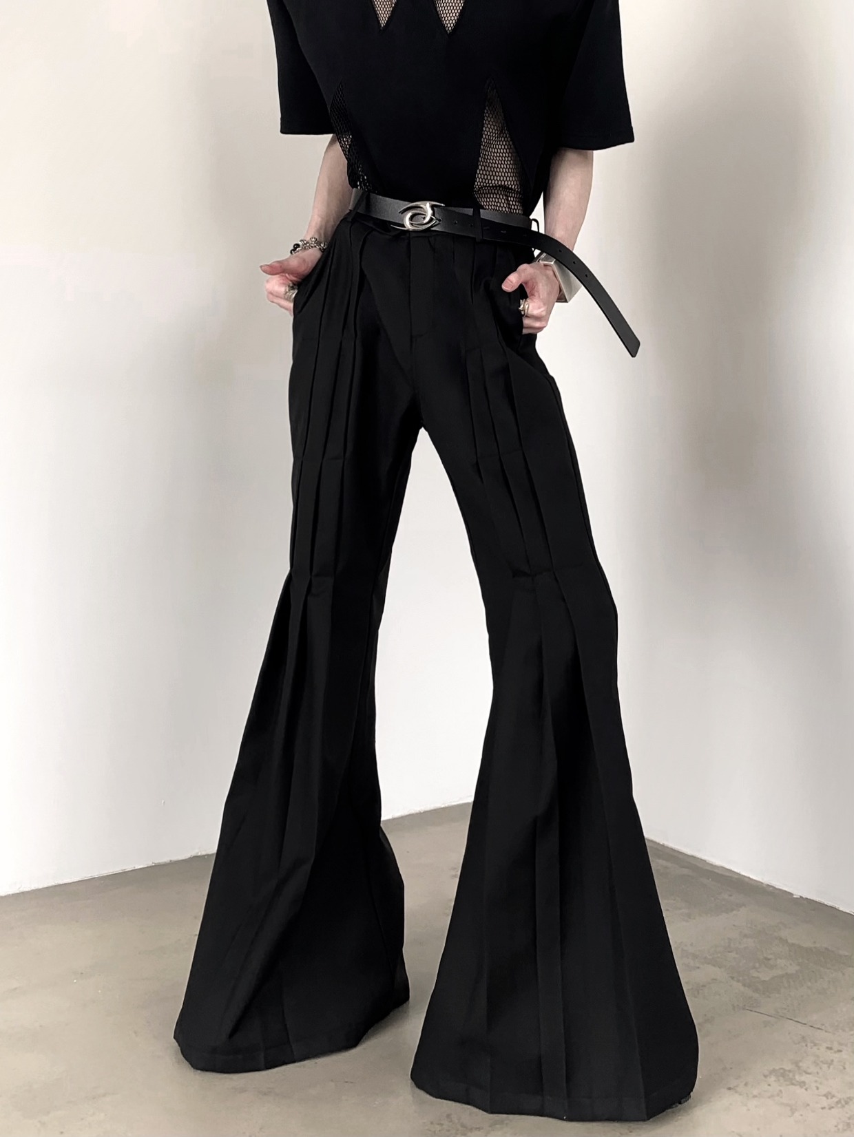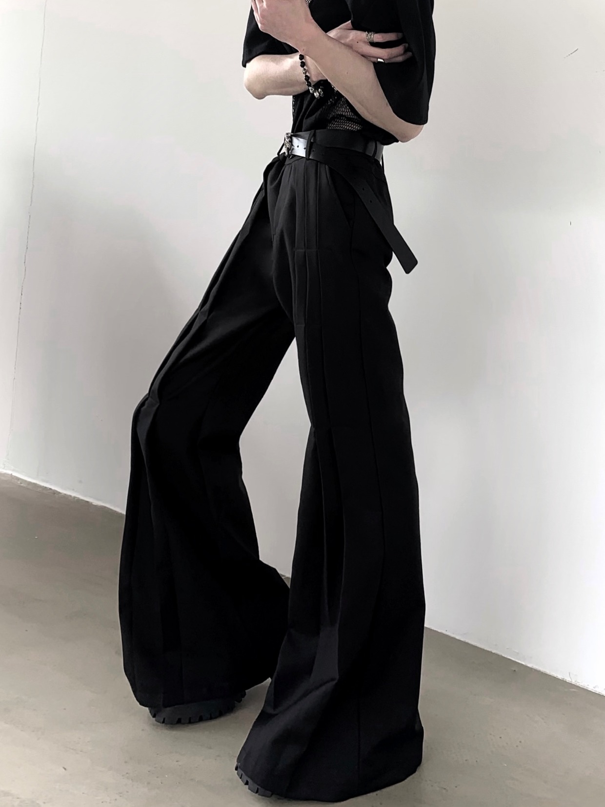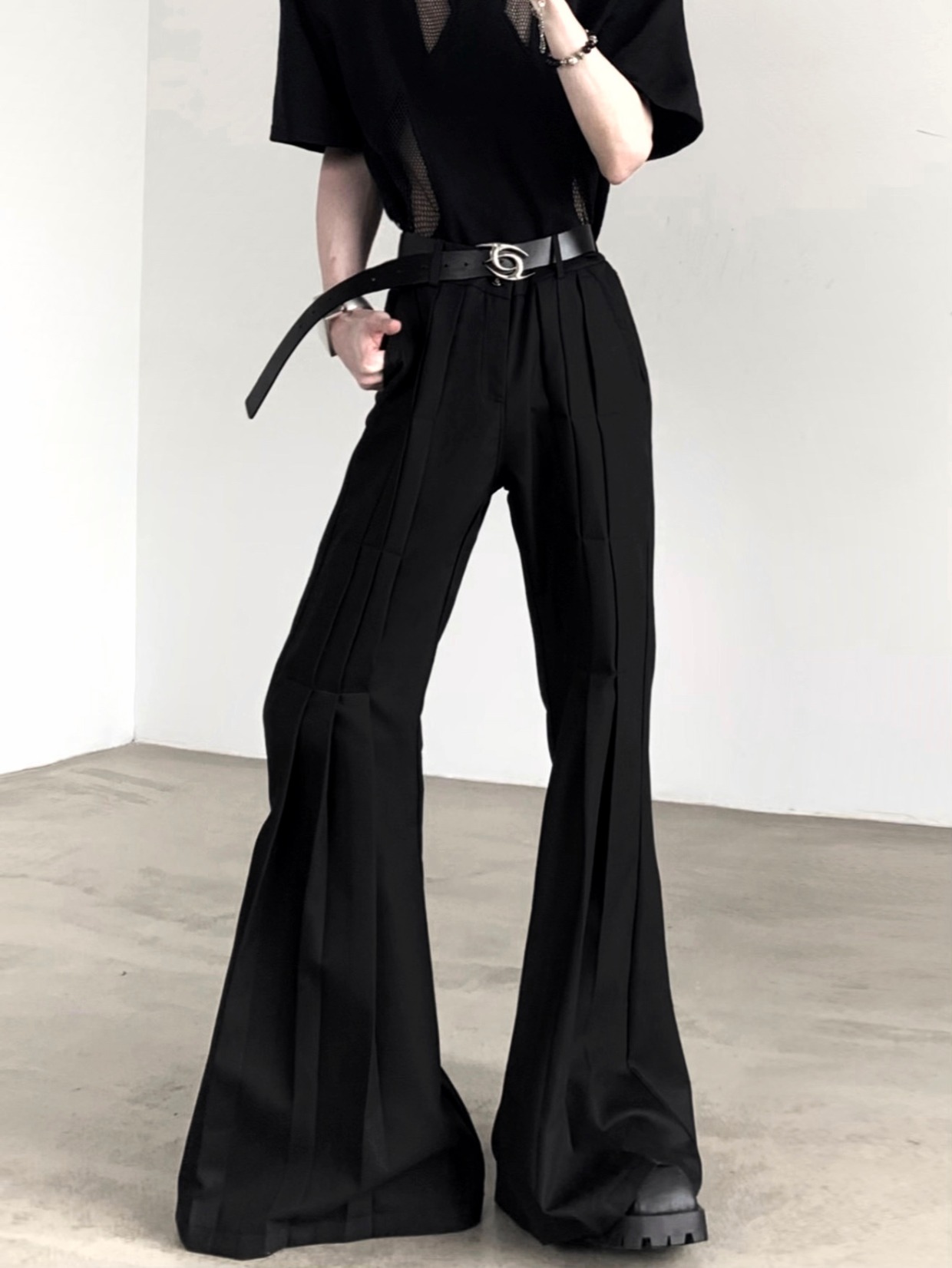 Pleats Design Extended Length Flare Trousers WN20338