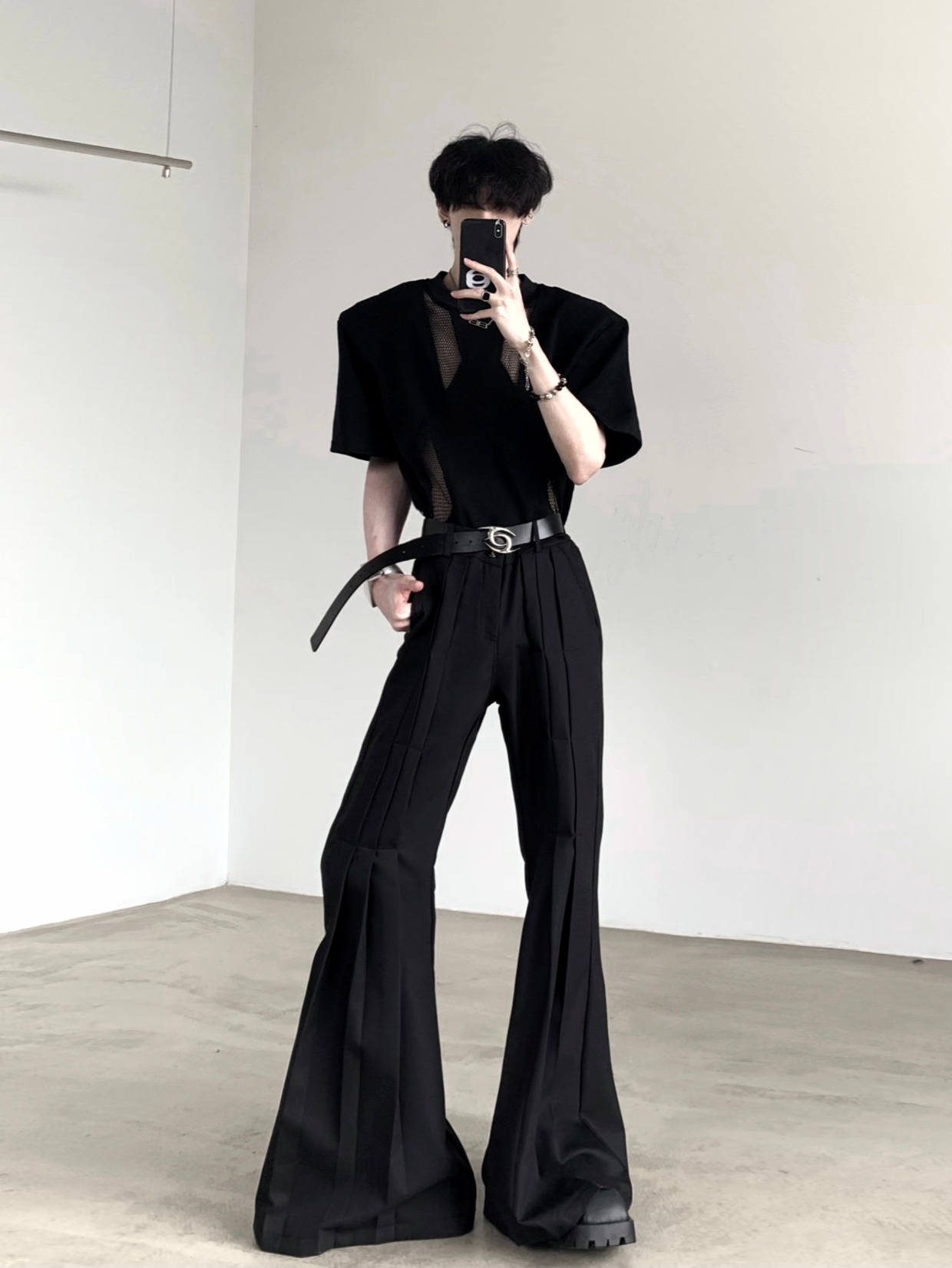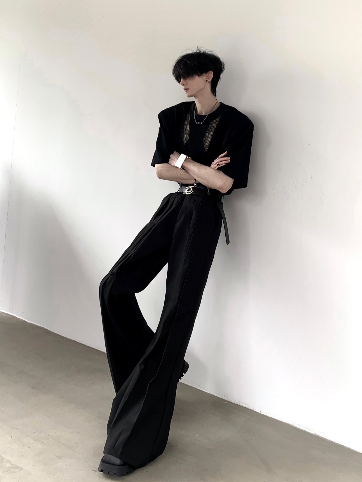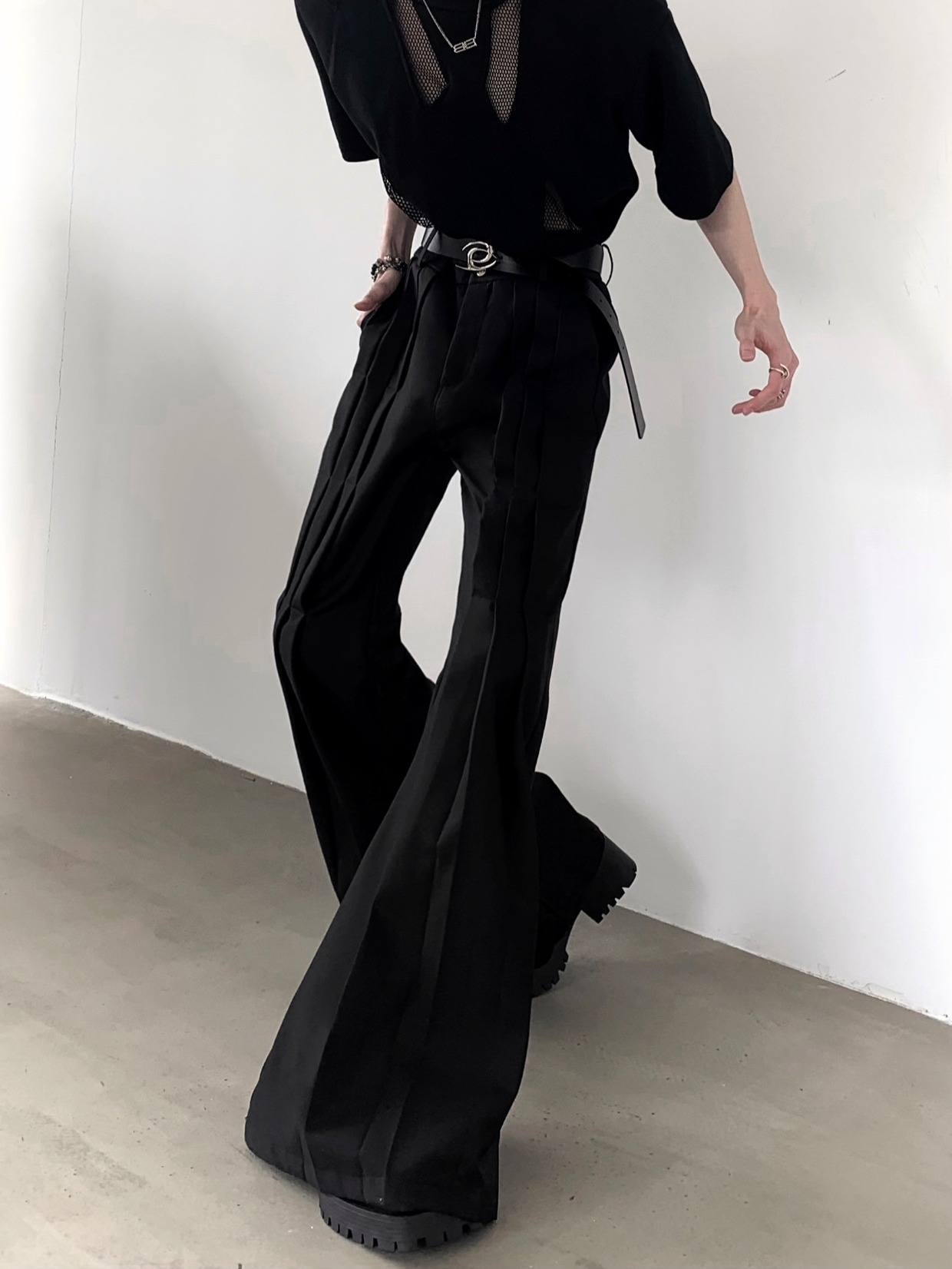 Pleats Design Extended Length Flare Trousers WN20338
