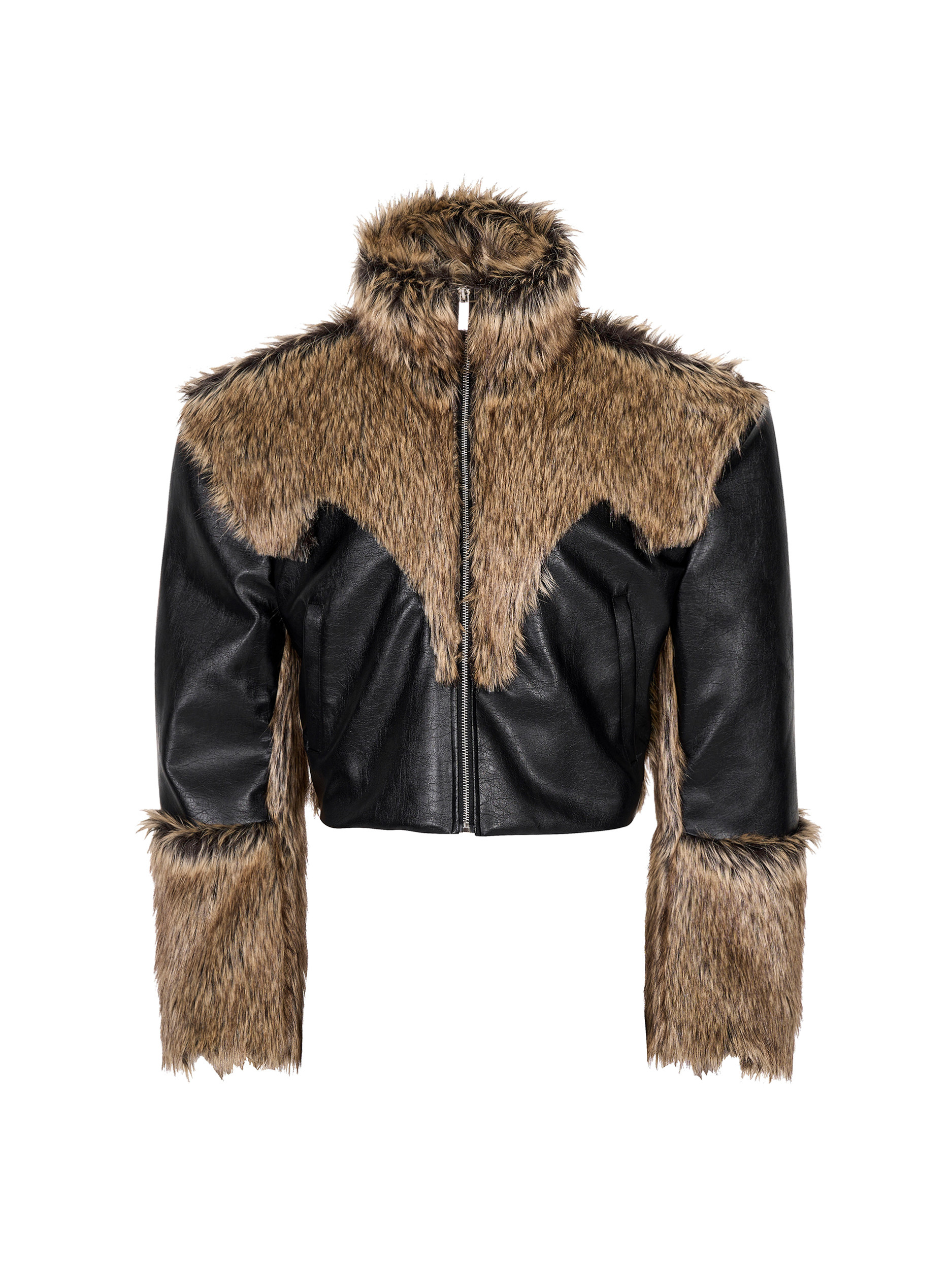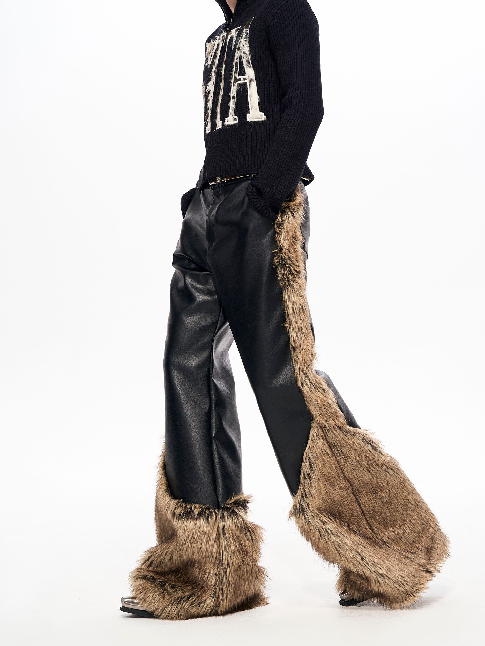 PU Leather Fake Fur Jacket & PU Leather Pants Setup WN22163
