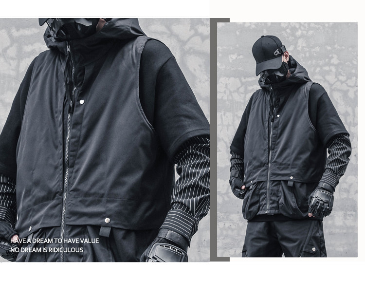 Functional Hooded Fleece Lining Sleeveless Vest WN22544