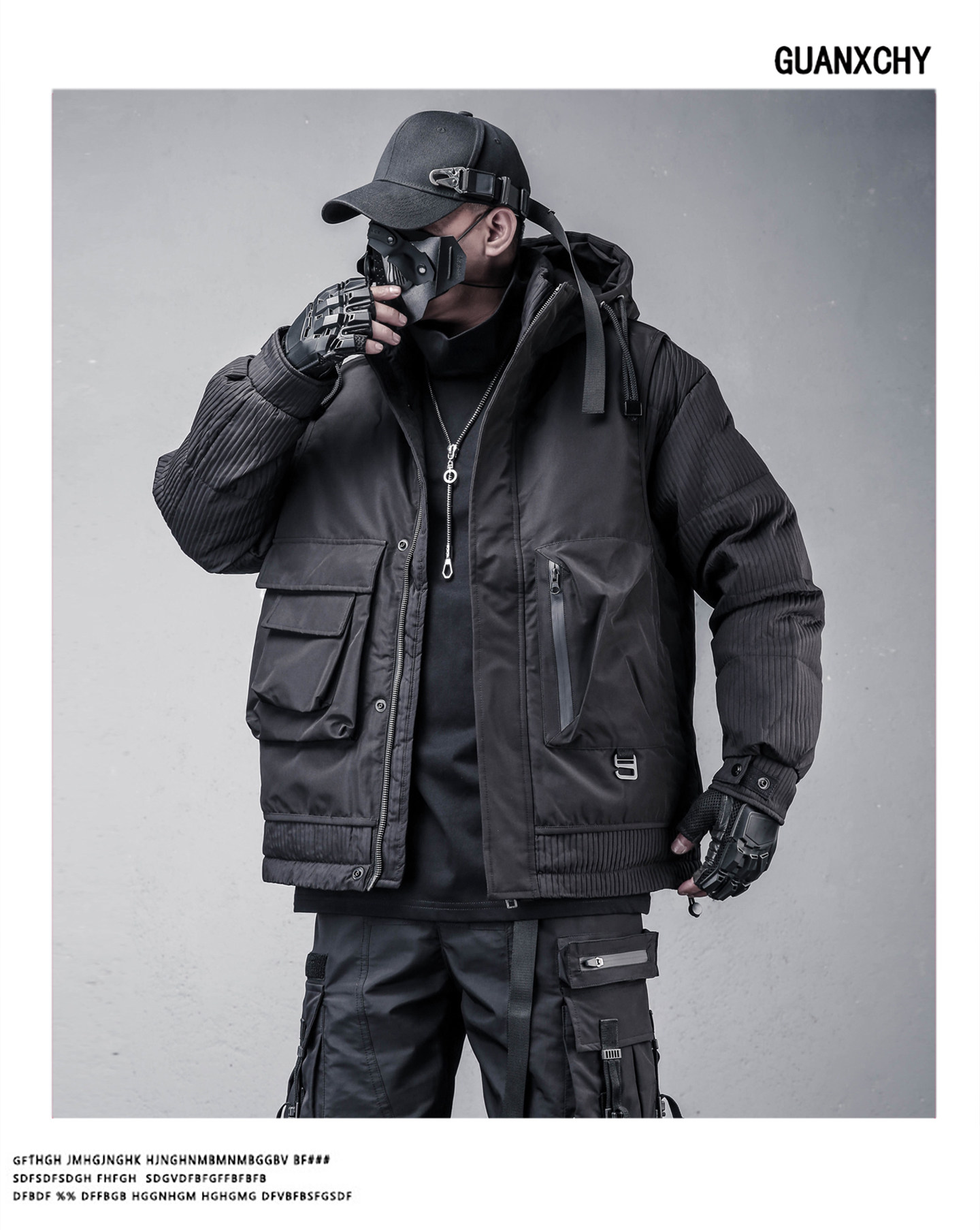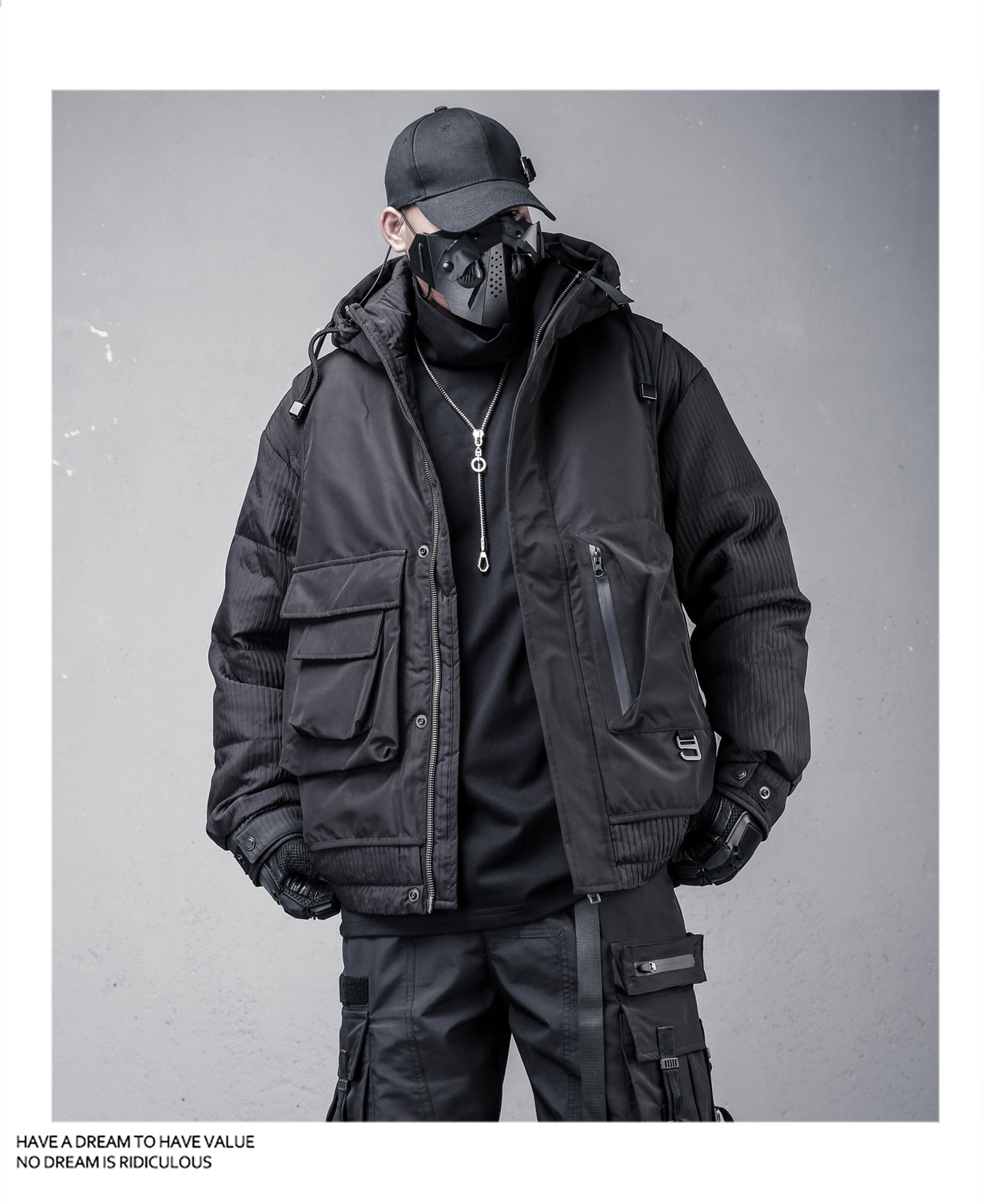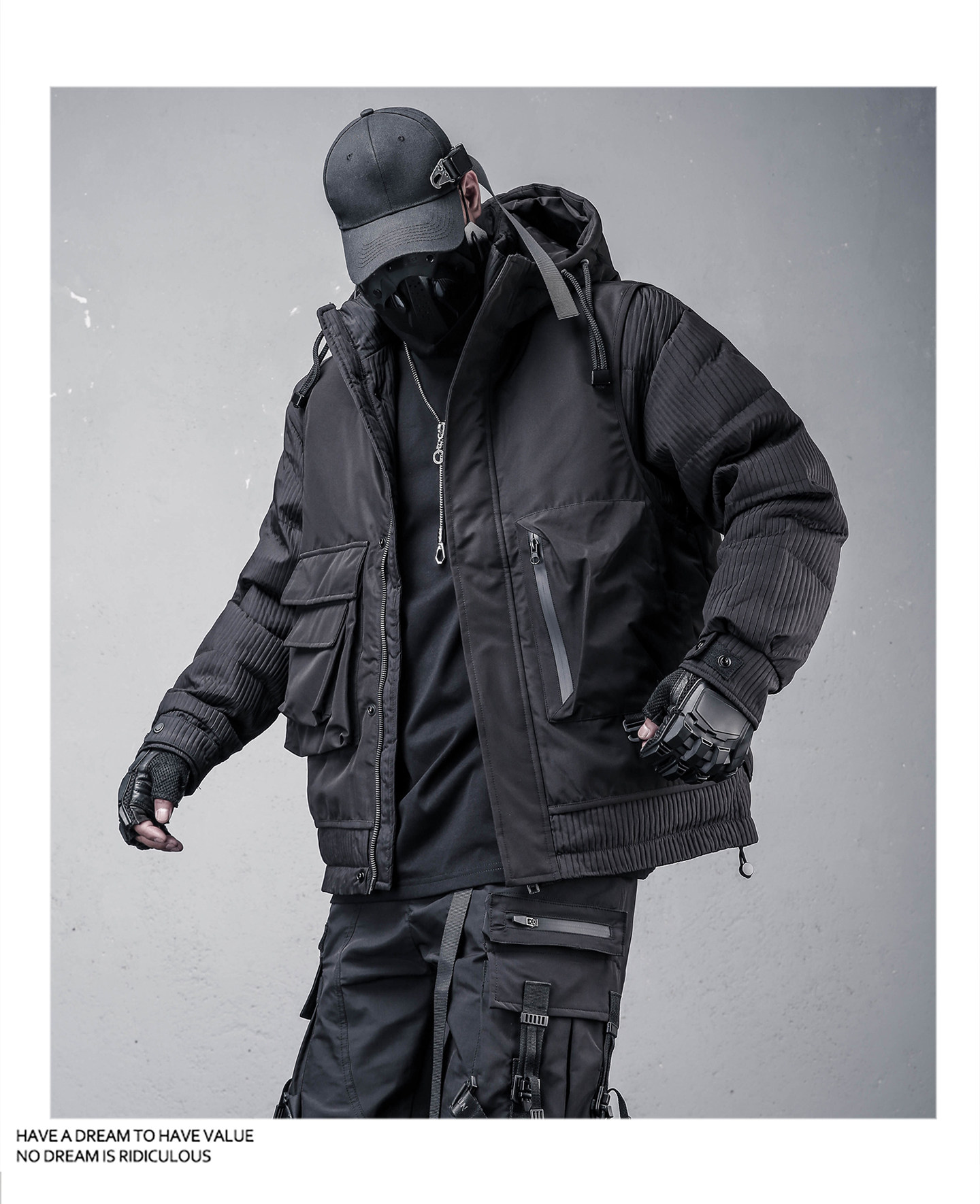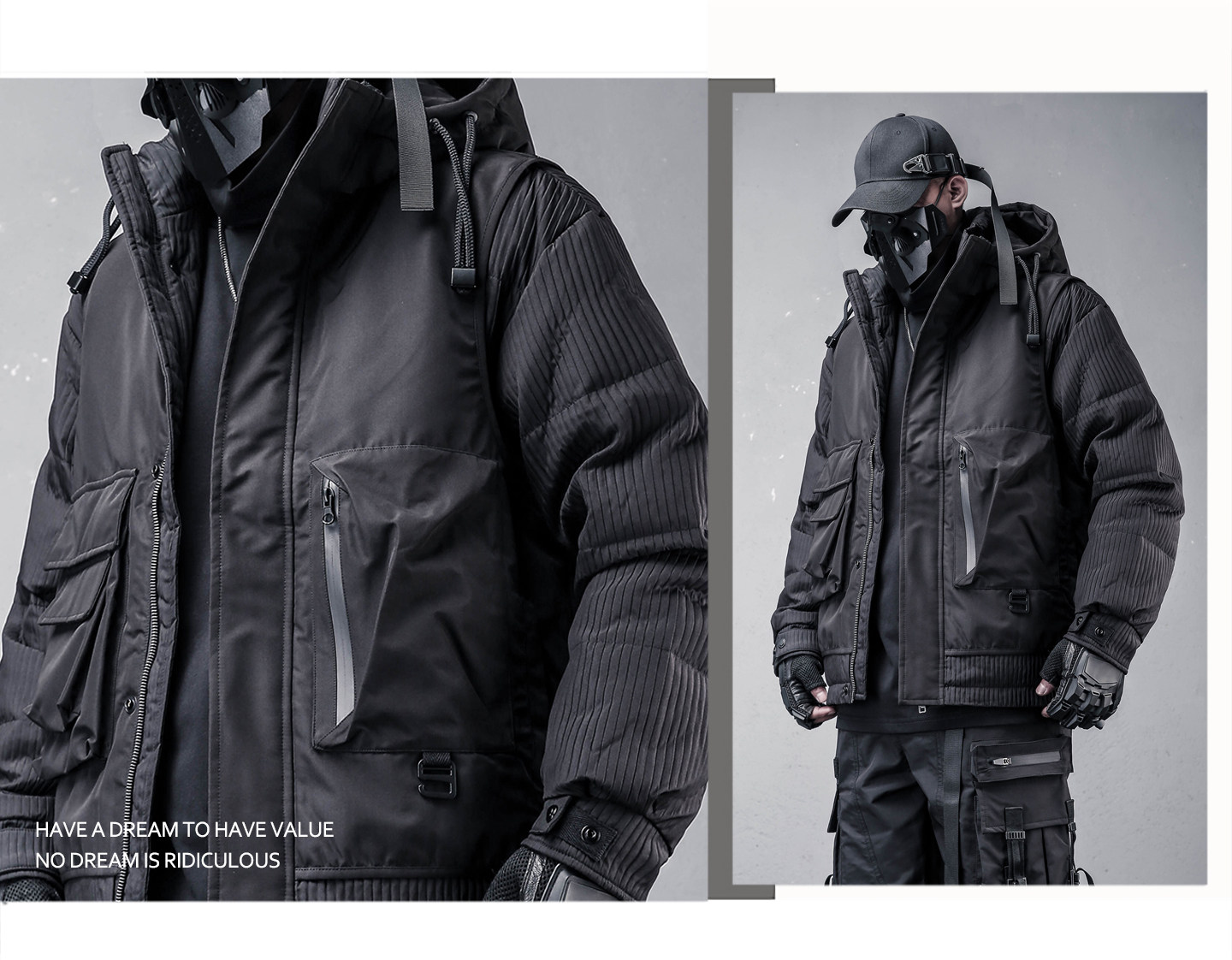Fake Layered Hooded Tactical White Duck Down Jacket WN22545