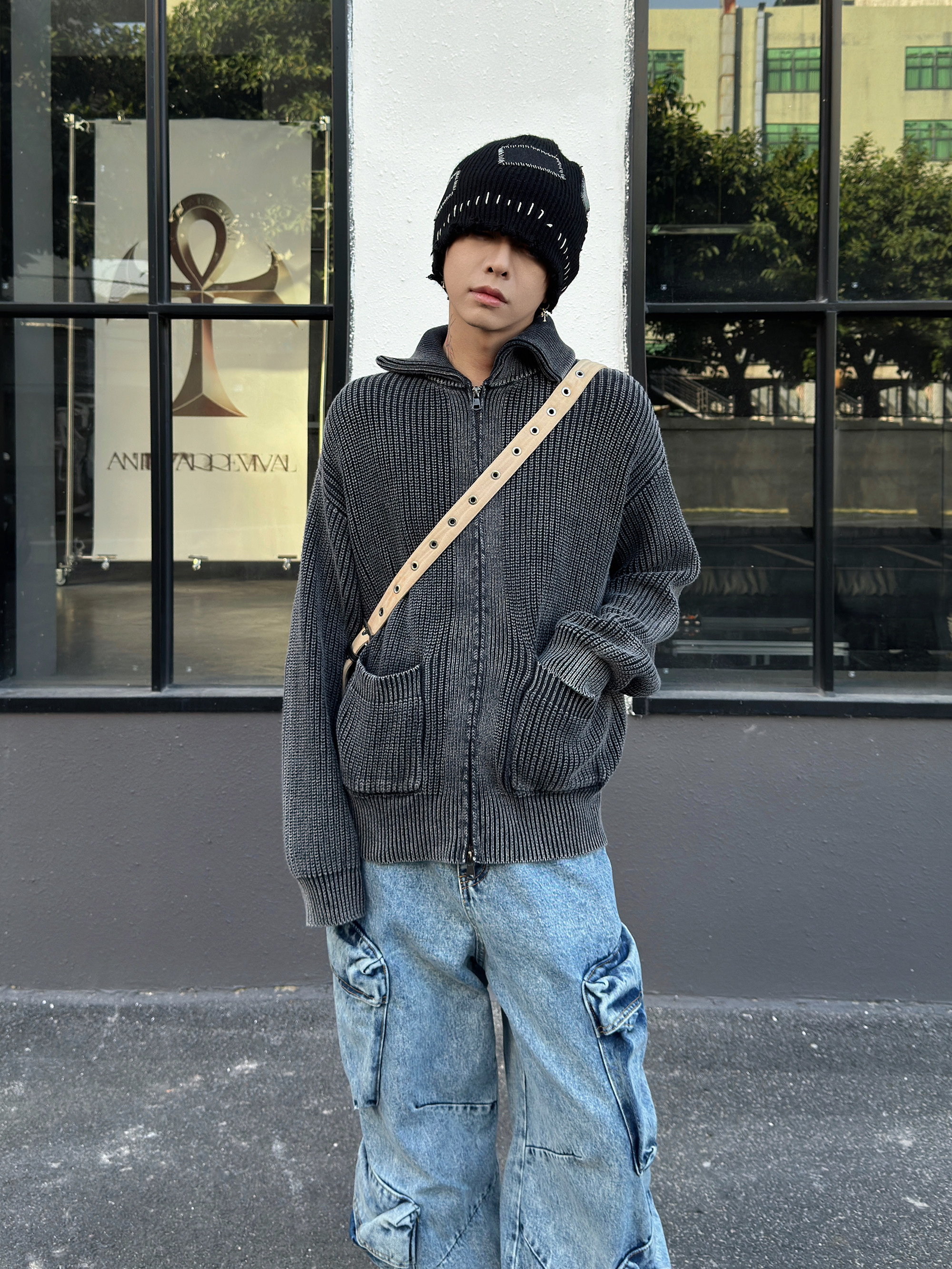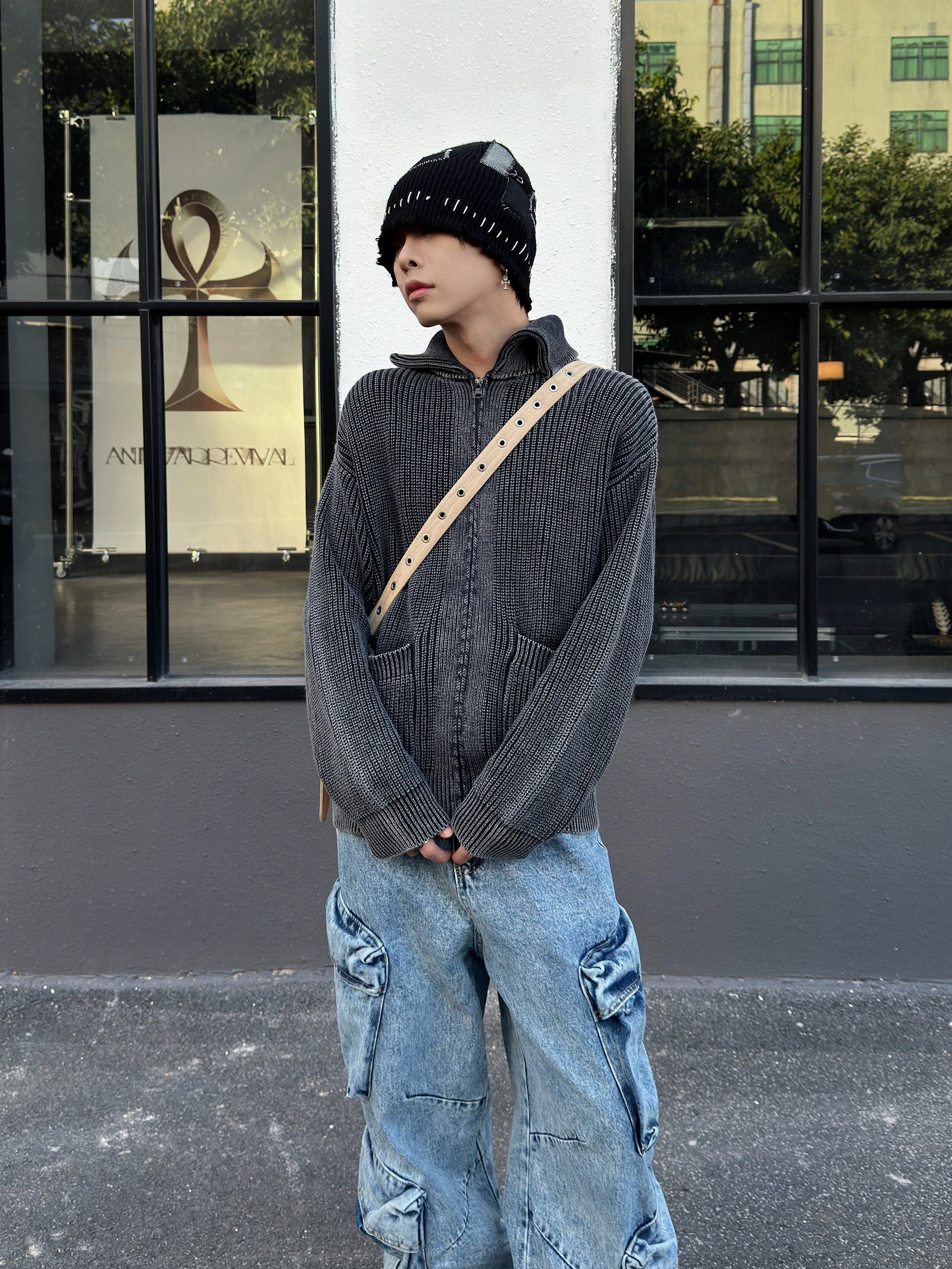 Lapel Minimal Zipper Knit Cardigan WN22998