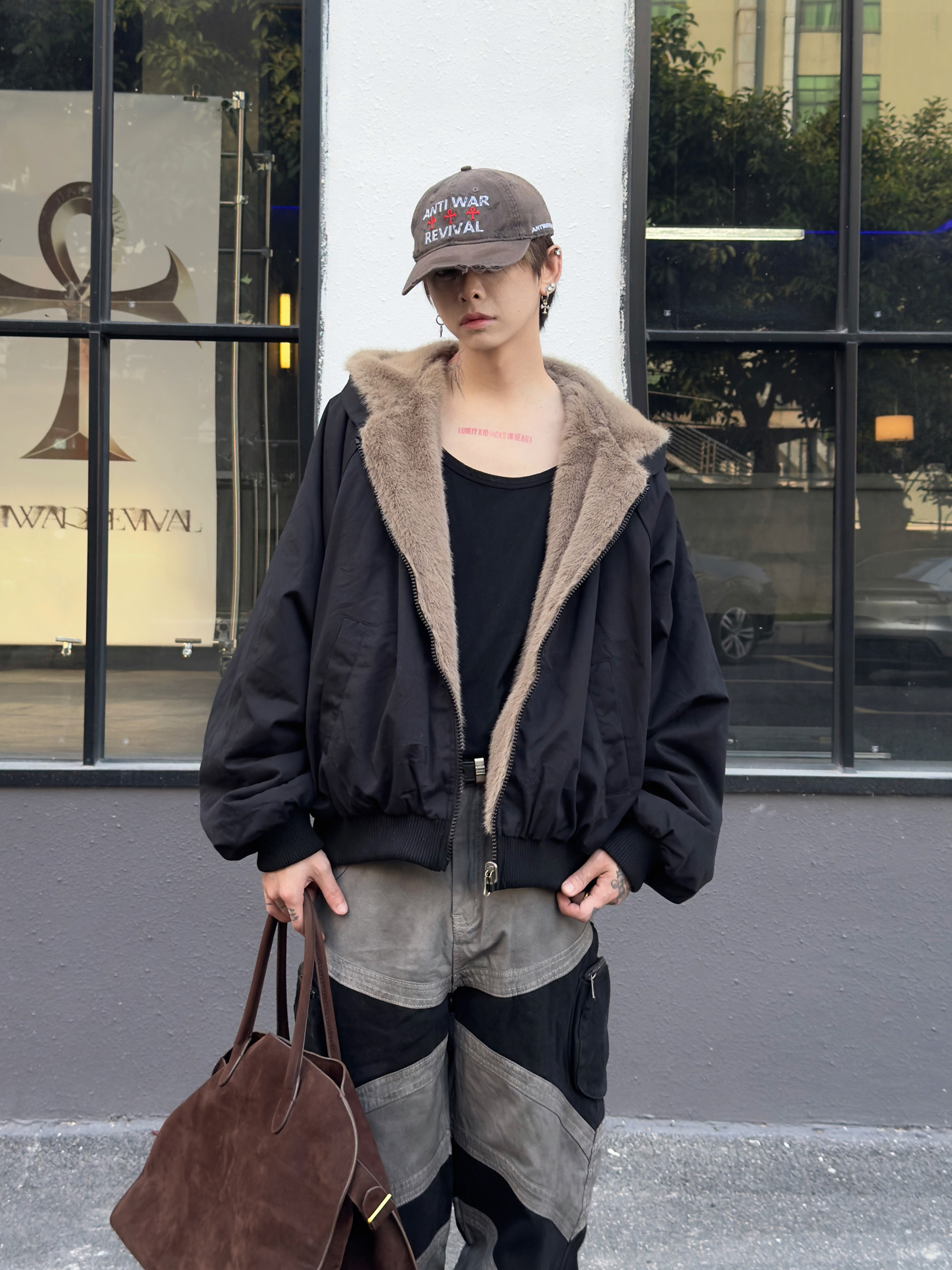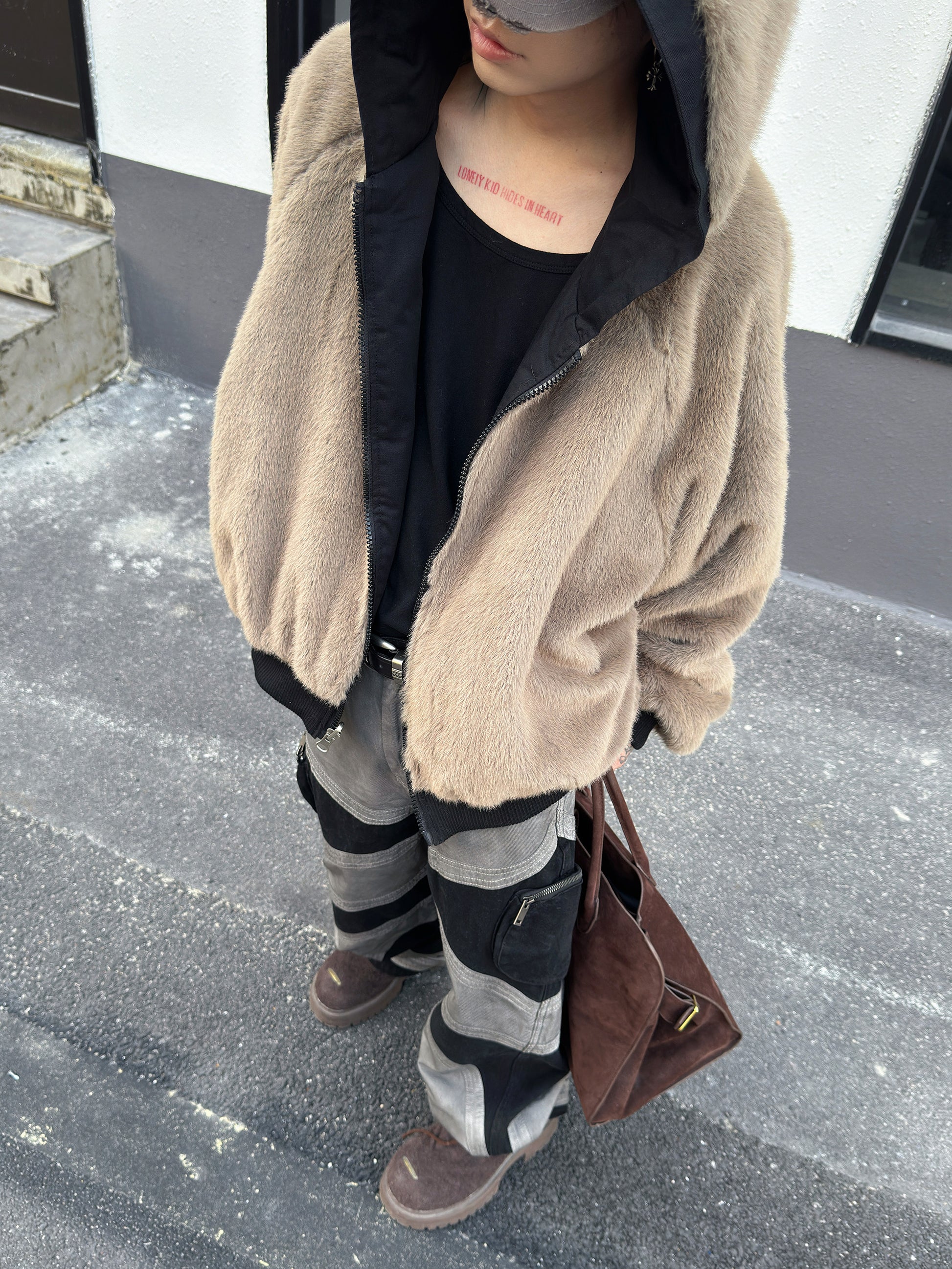 Reversible Fake Fur Hooded Padded Jacket WN23004