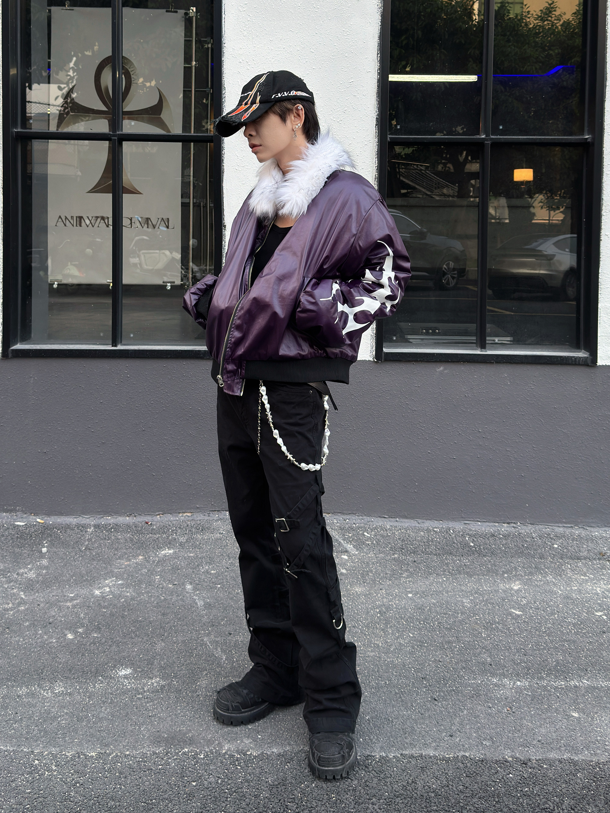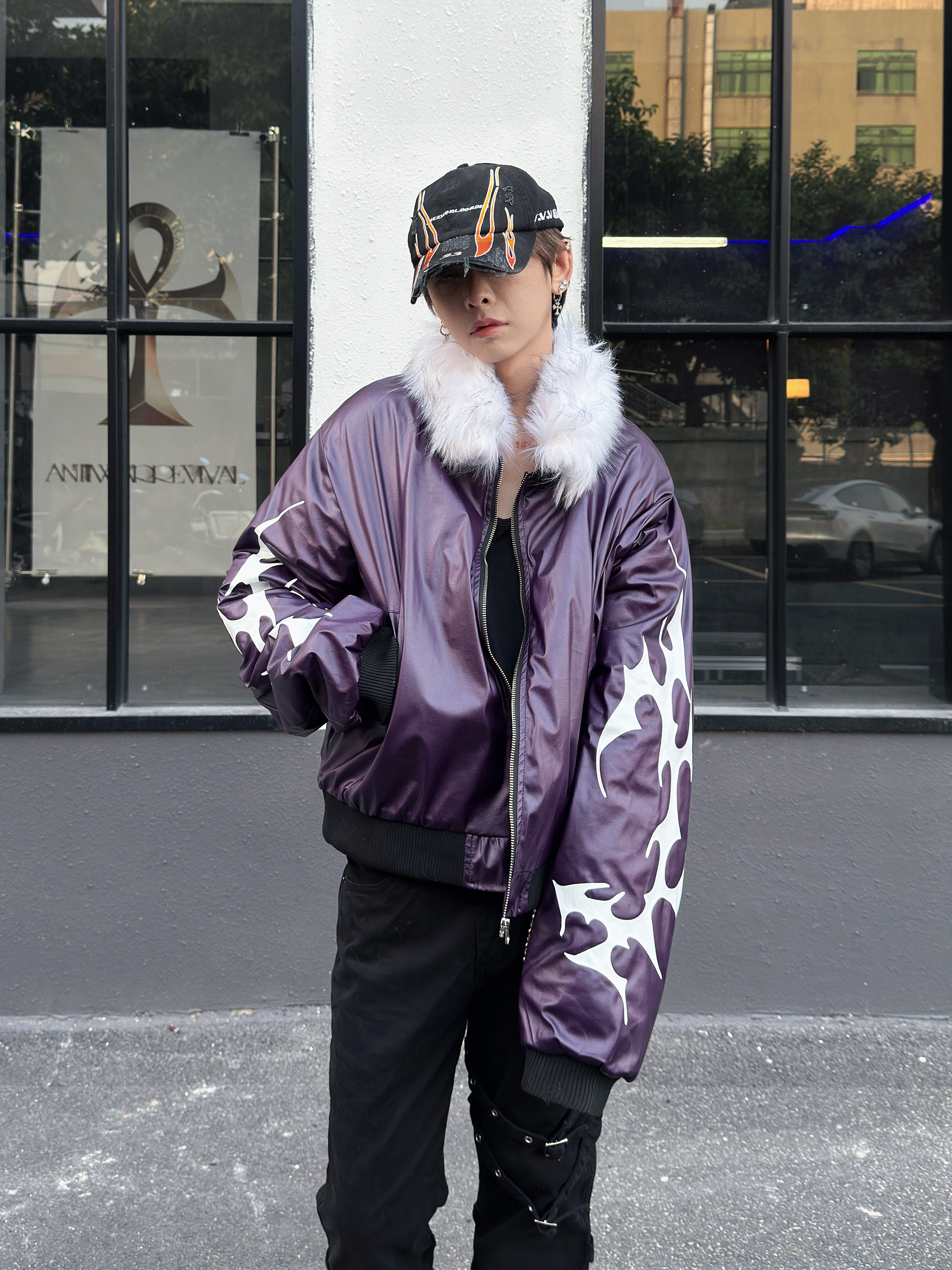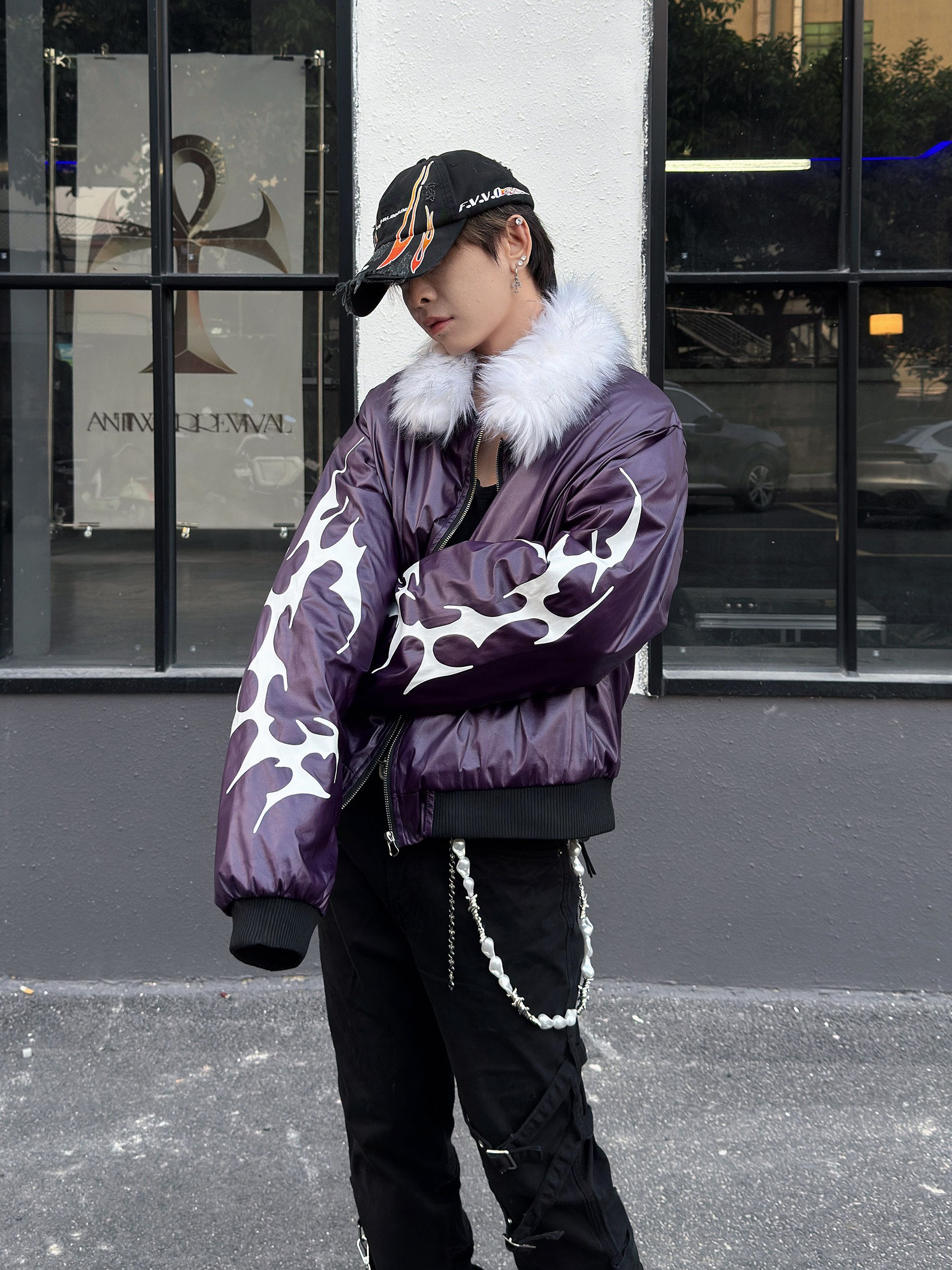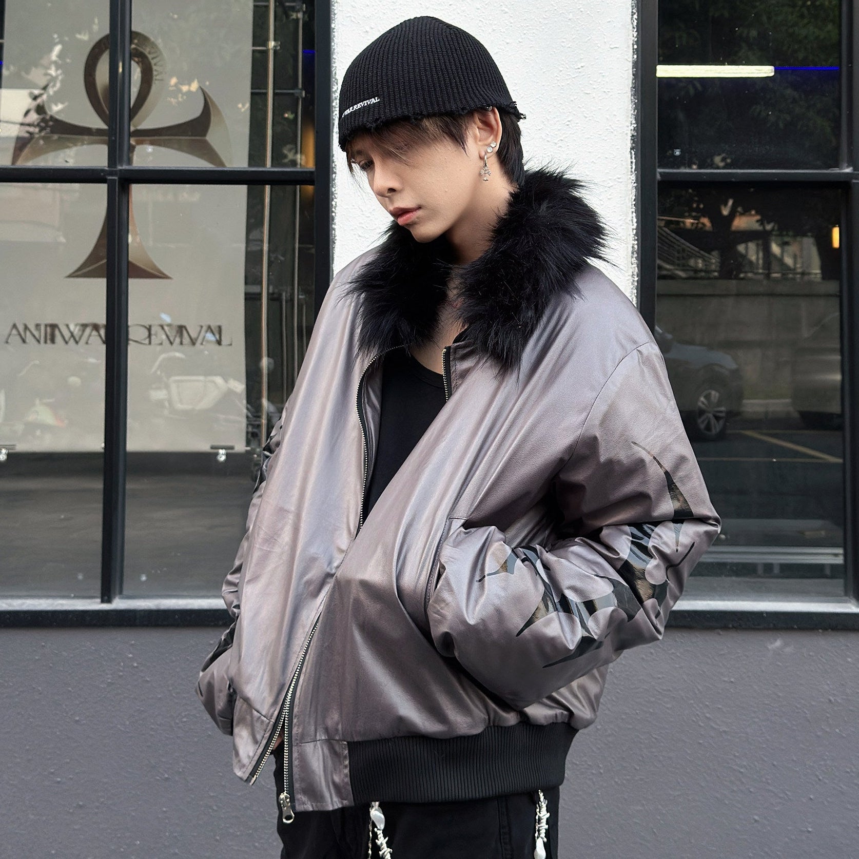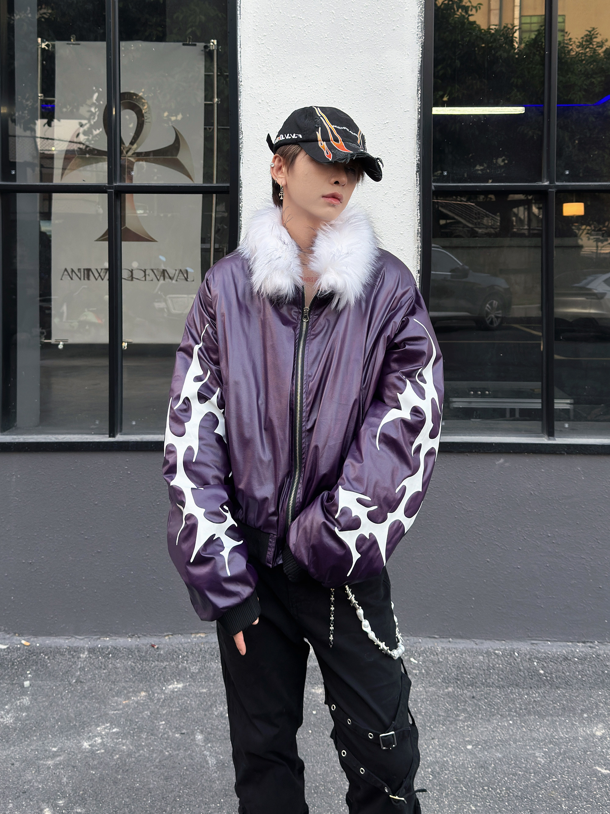Glossy Fur Collar Oversize Puffer Jacket WN23007